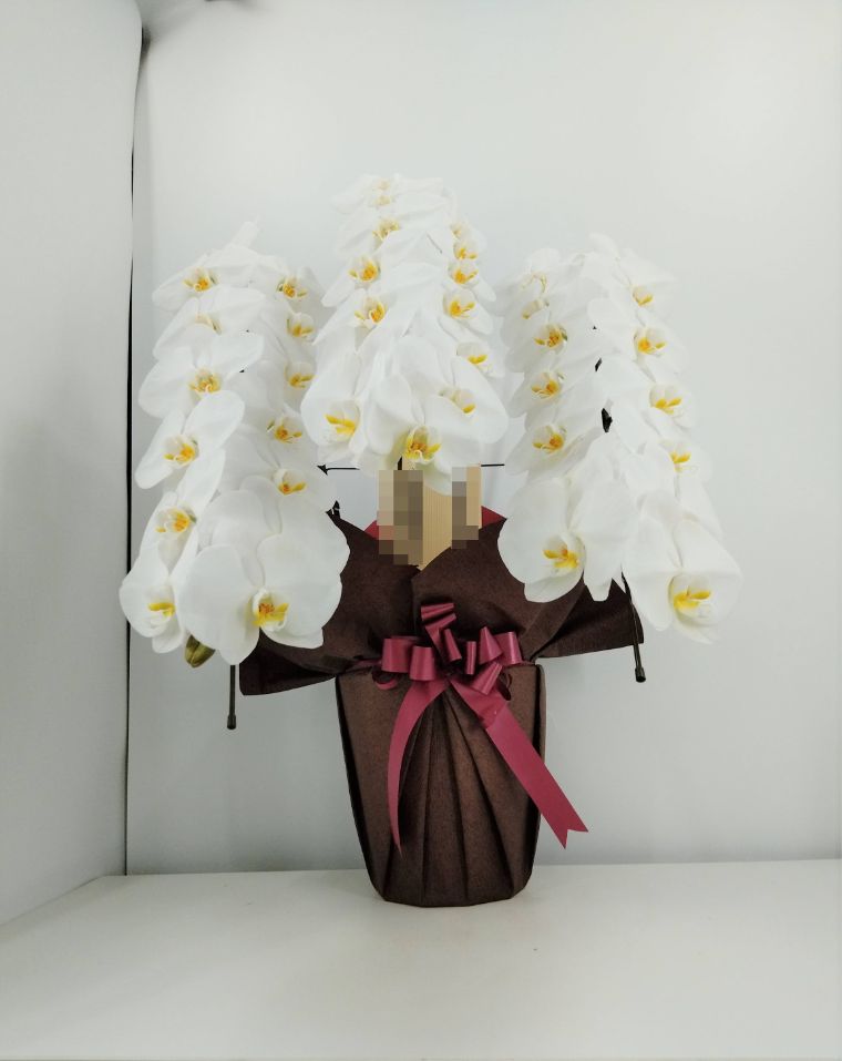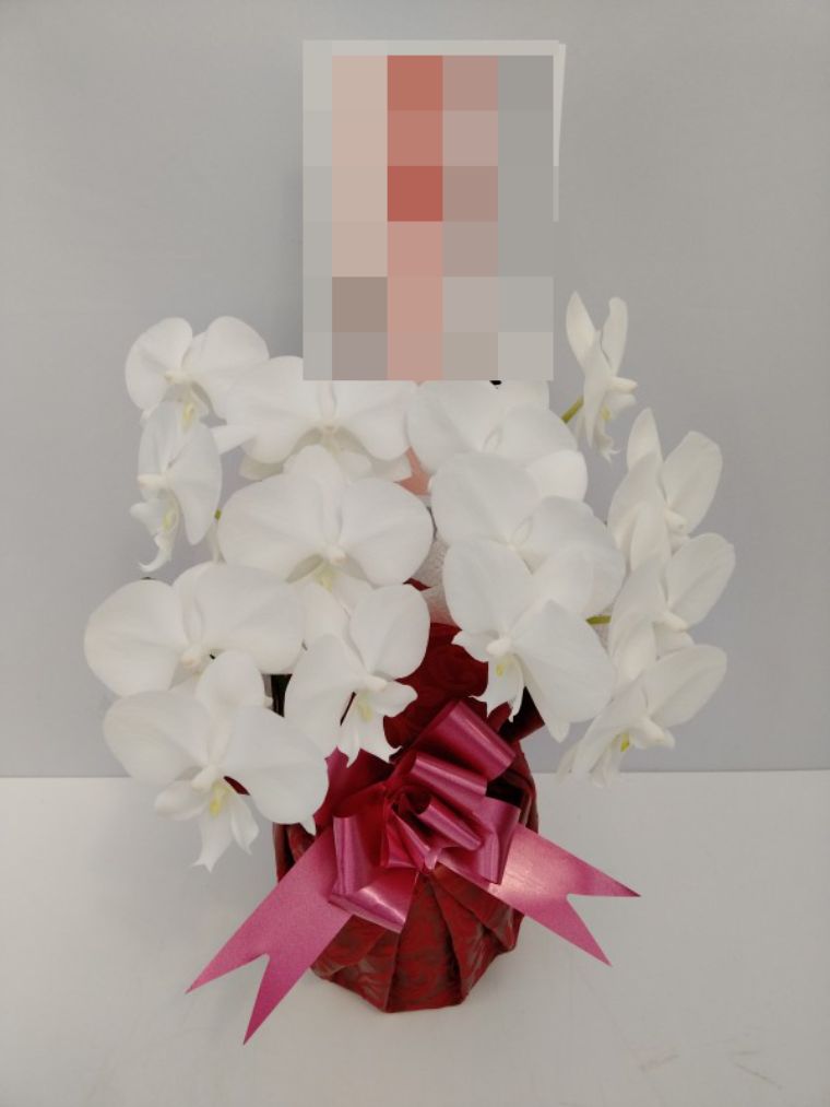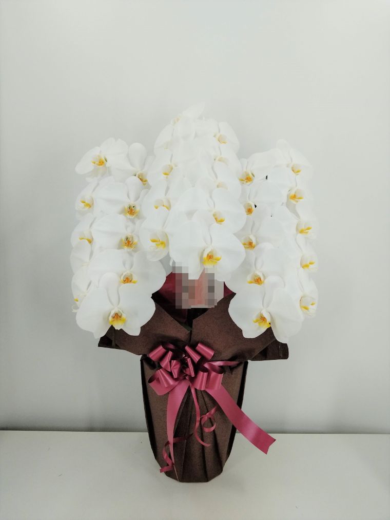 胡蝶蘭の実際にお届けした写真です。花秘書では発送前に写真をメールで送信致しますので安心して大切な顧客や取引様へのギフトにご利用頂けます。