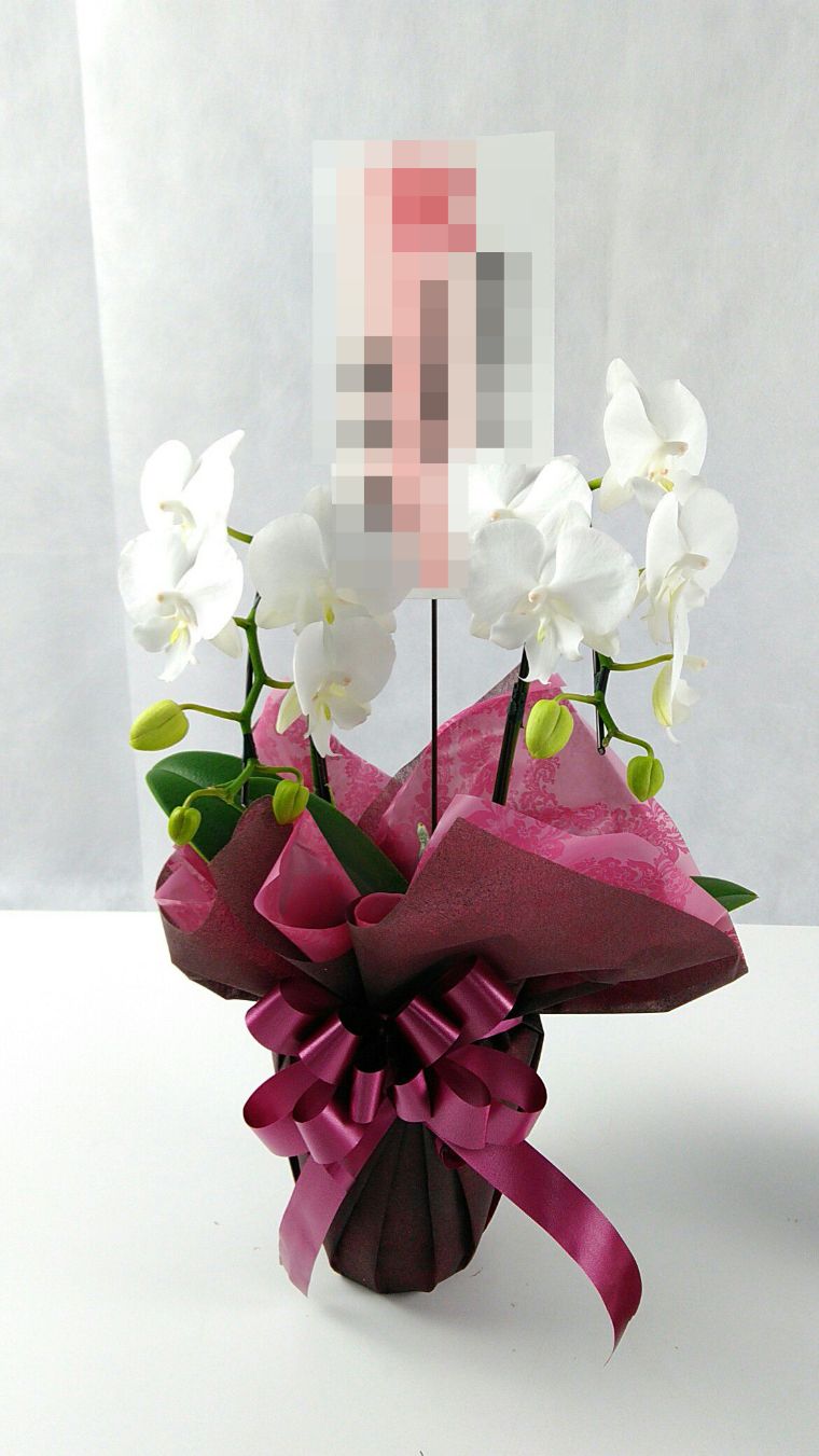 胡蝶蘭の実際にお届けした写真です。花秘書では発送前に写真をメールで送信致しますので安心して大切な顧客や取引様へのギフトにご利用頂けます。