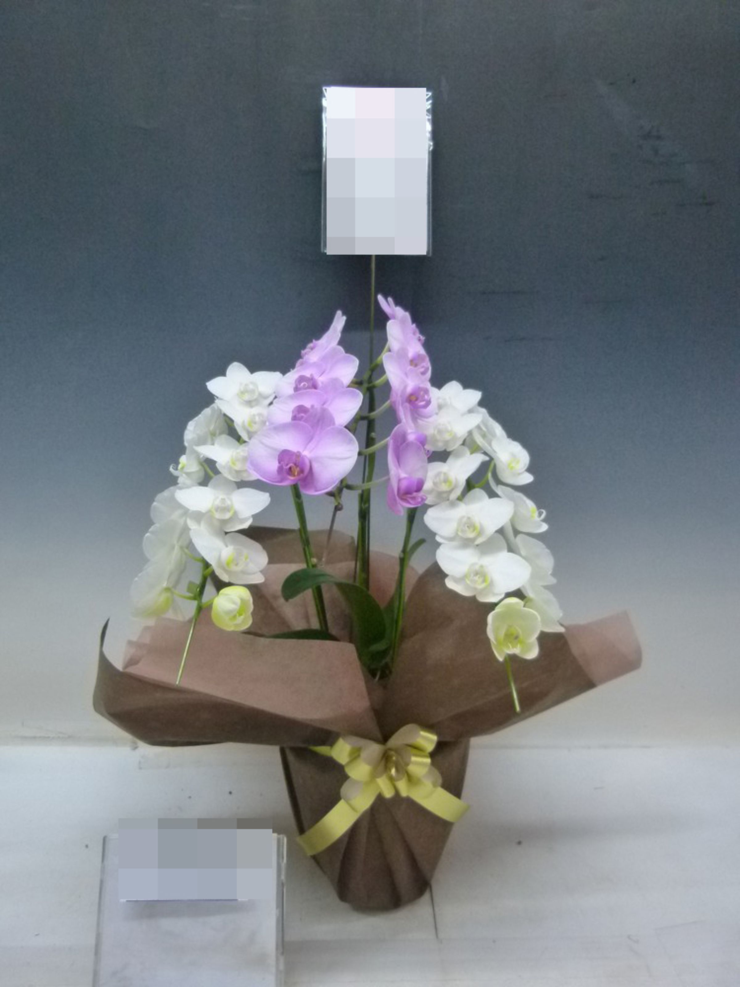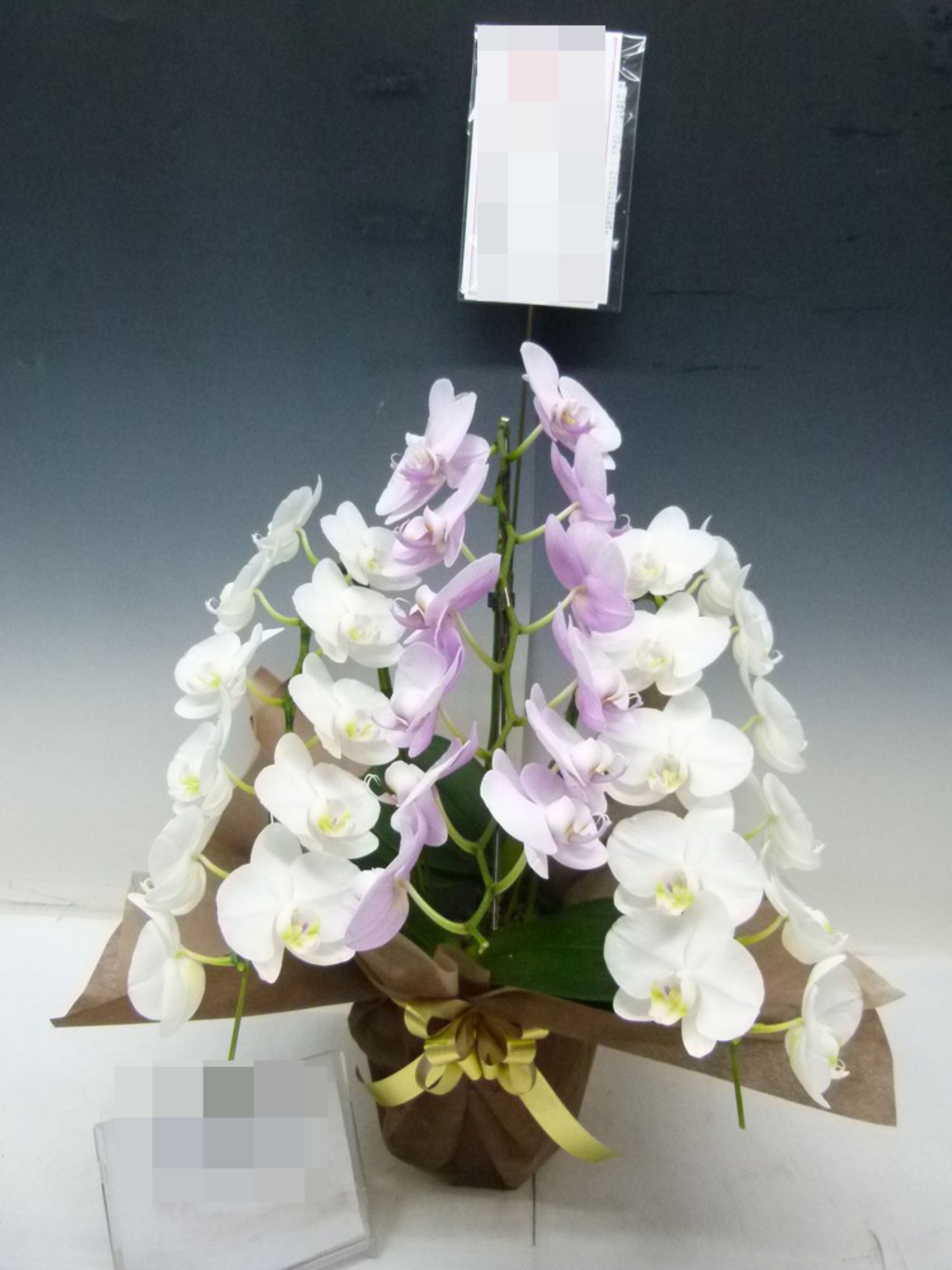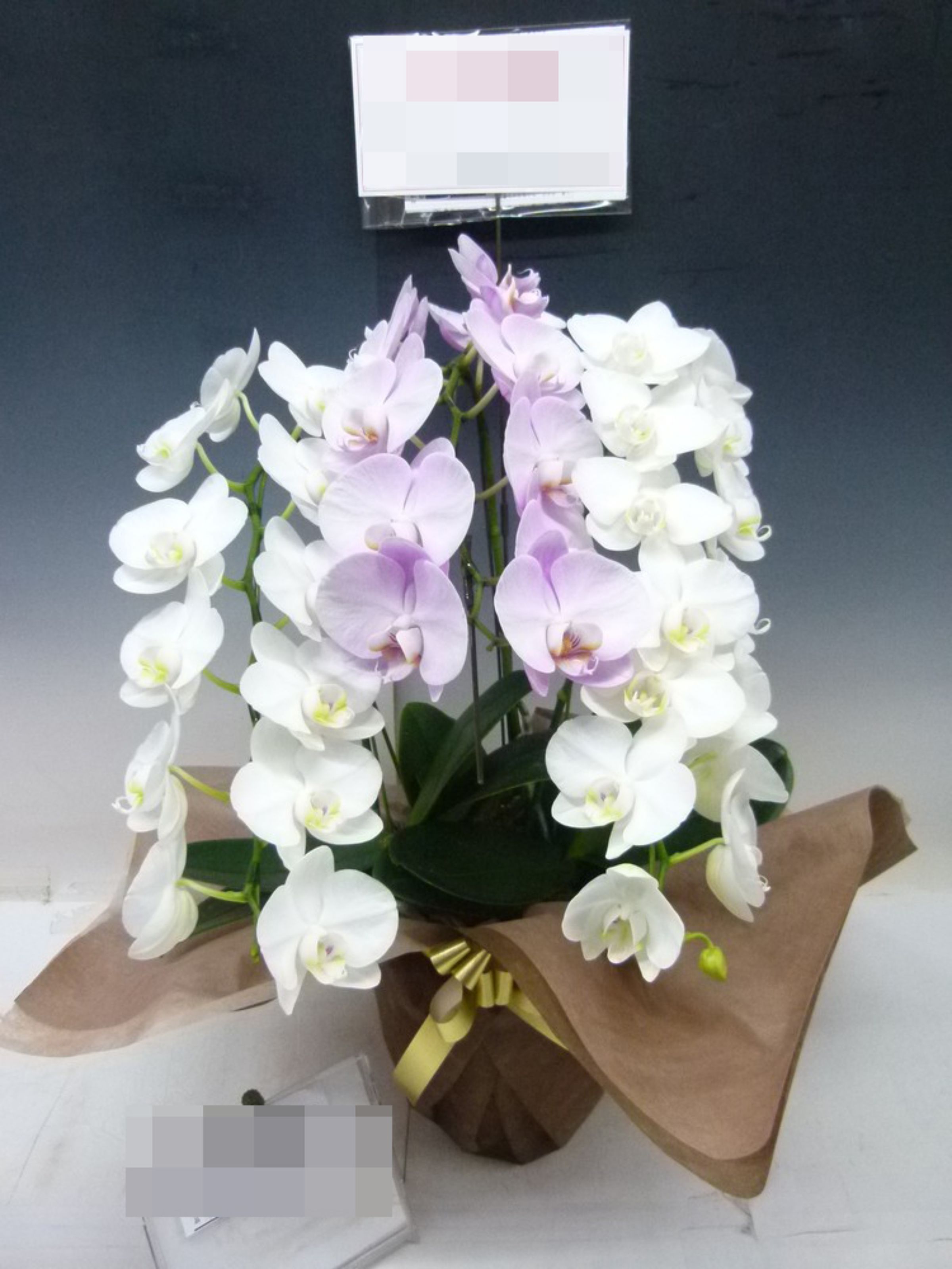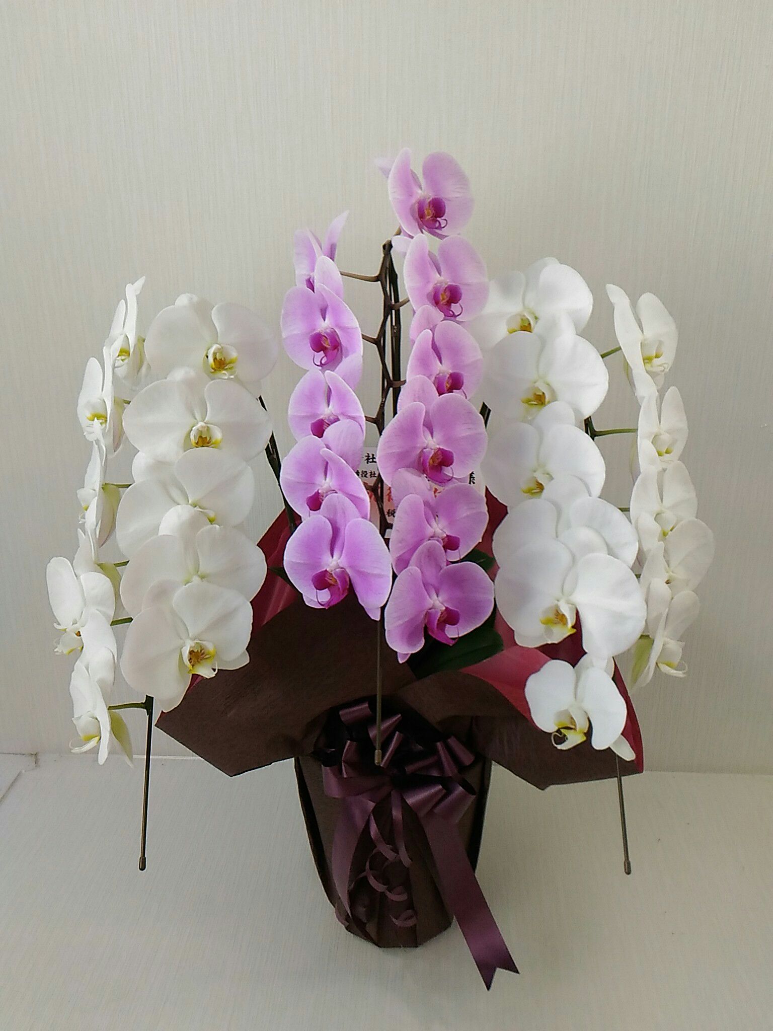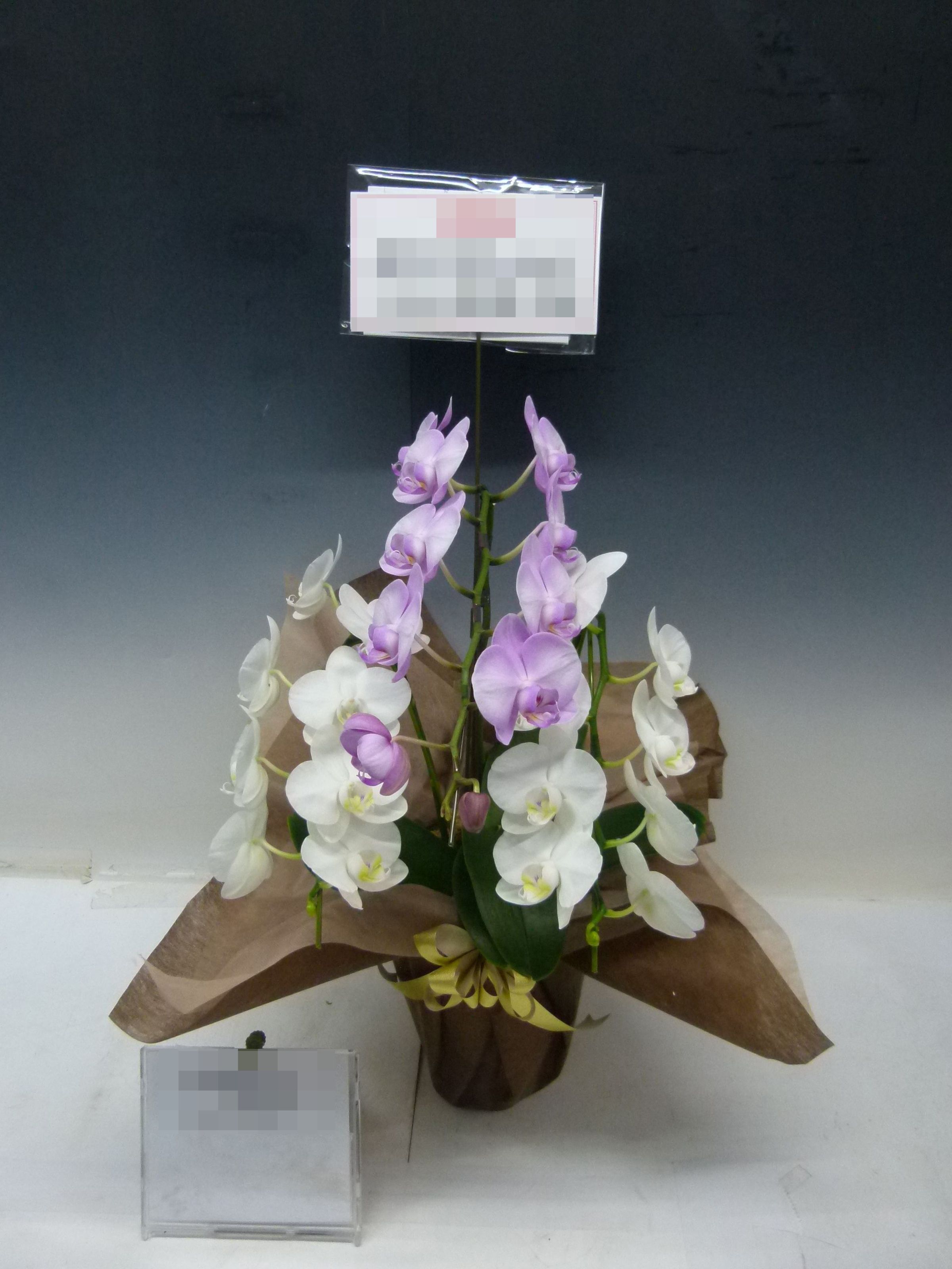 胡蝶蘭の実際にお届けした写真です。花秘書では発送前に写真をメールで送信致しますので安心して大切な顧客や取引様へのギフトにご利用頂けます。