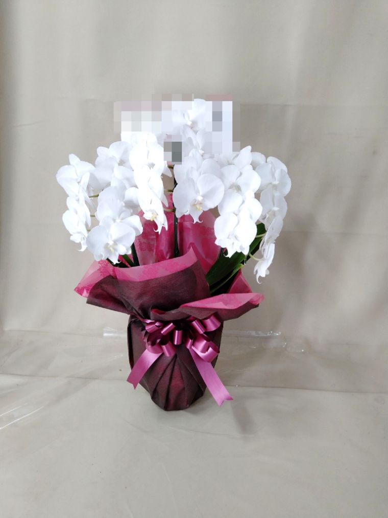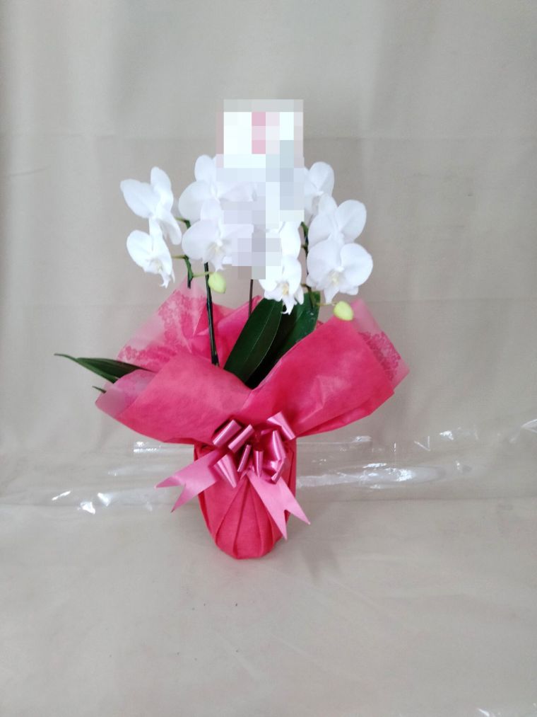 胡蝶蘭の実際にお届けした写真です。花秘書では発送前に写真をメールで送信致しますので安心して大切な顧客や取引様へのギフトにご利用頂けます。