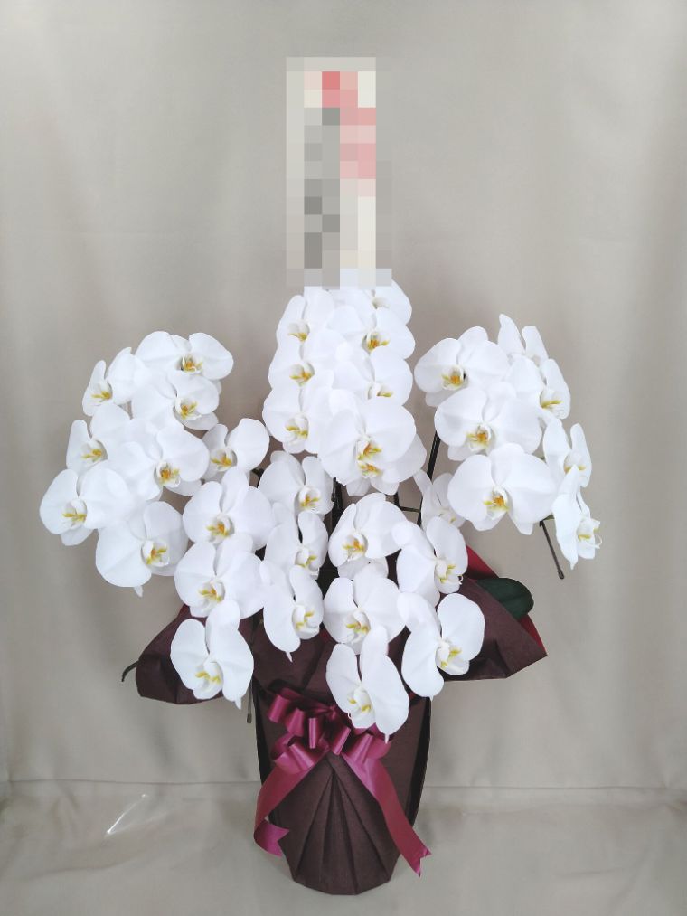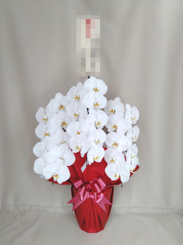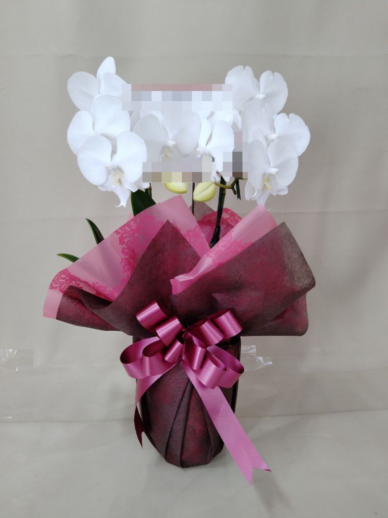 胡蝶蘭の実際にお届けした写真です。花秘書では発送前に写真をメールで送信致しますので安心して大切な顧客や取引様へのギフトにご利用頂けます。
