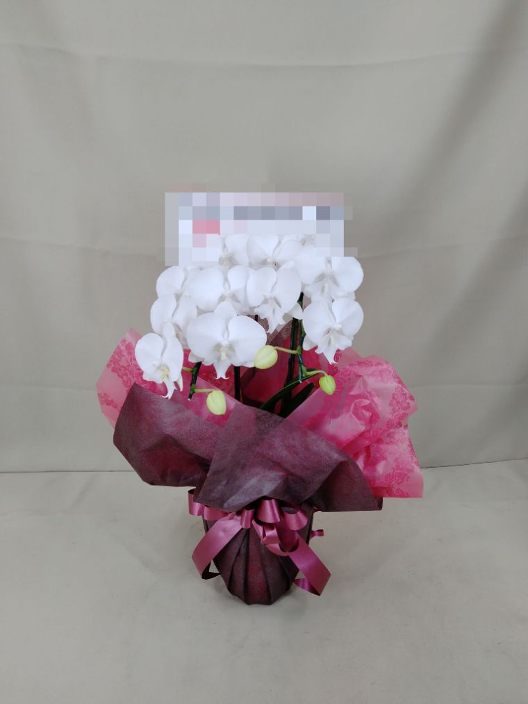 胡蝶蘭の実際にお届けした写真です。花秘書では発送前に写真をメールで送信致しますので安心して大切な顧客や取引様へのギフトにご利用頂けます。