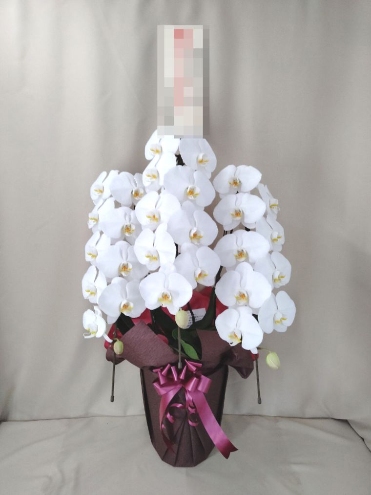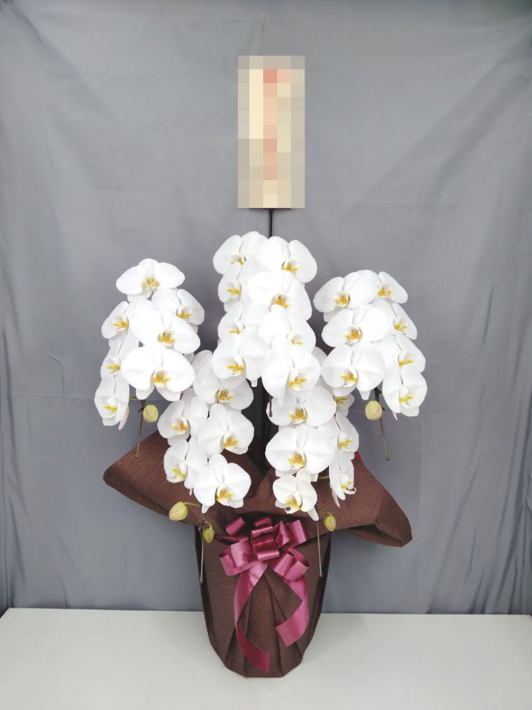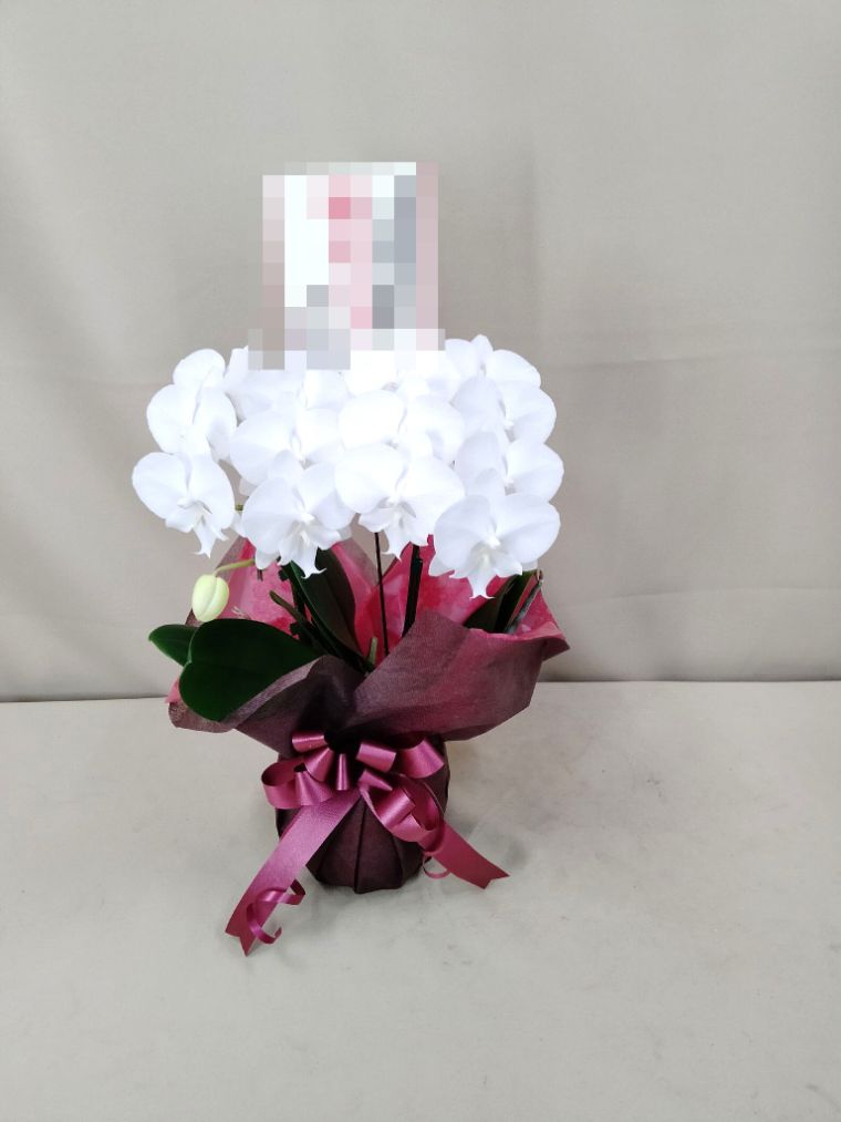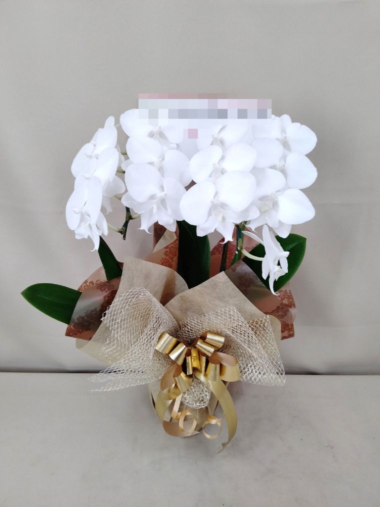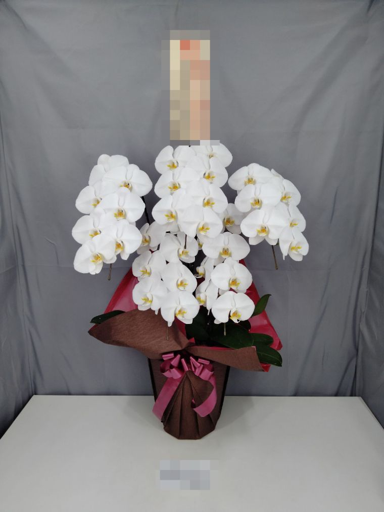 胡蝶蘭の実際にお届けした写真です。花秘書では発送前に写真をメールで送信致しますので安心して大切な顧客や取引様へのギフトにご利用頂けます。