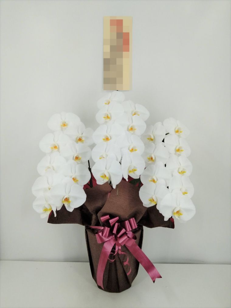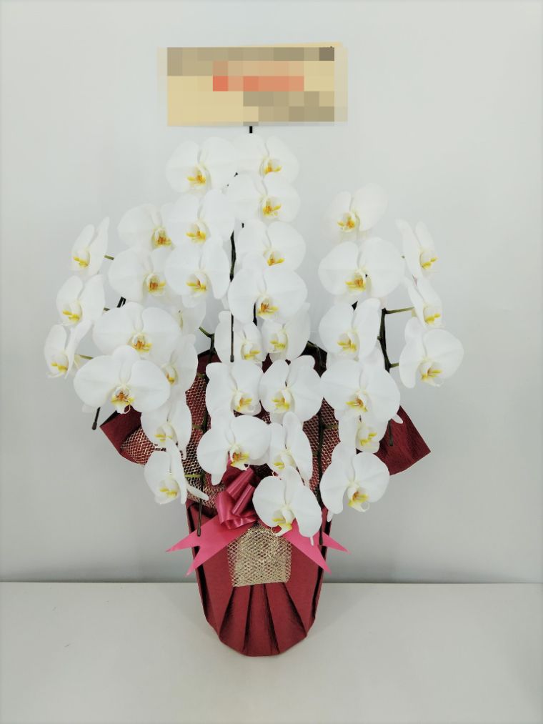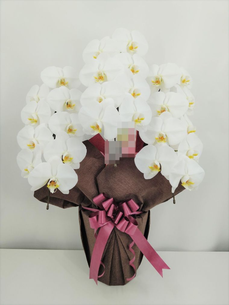 胡蝶蘭の実際にお届けした写真です。花秘書では発送前に写真をメールで送信致しますので安心して大切な顧客や取引様へのギフトにご利用頂けます。