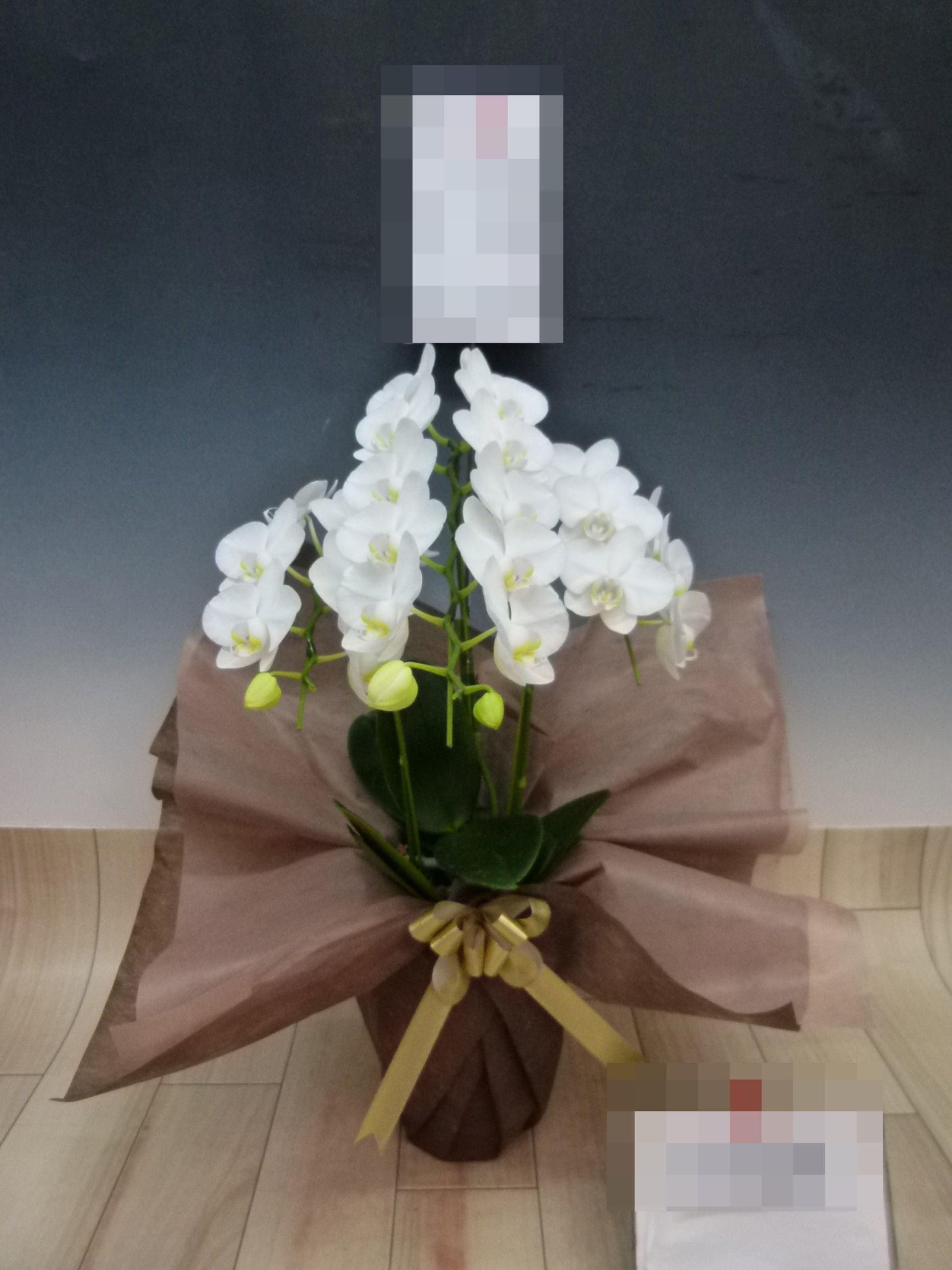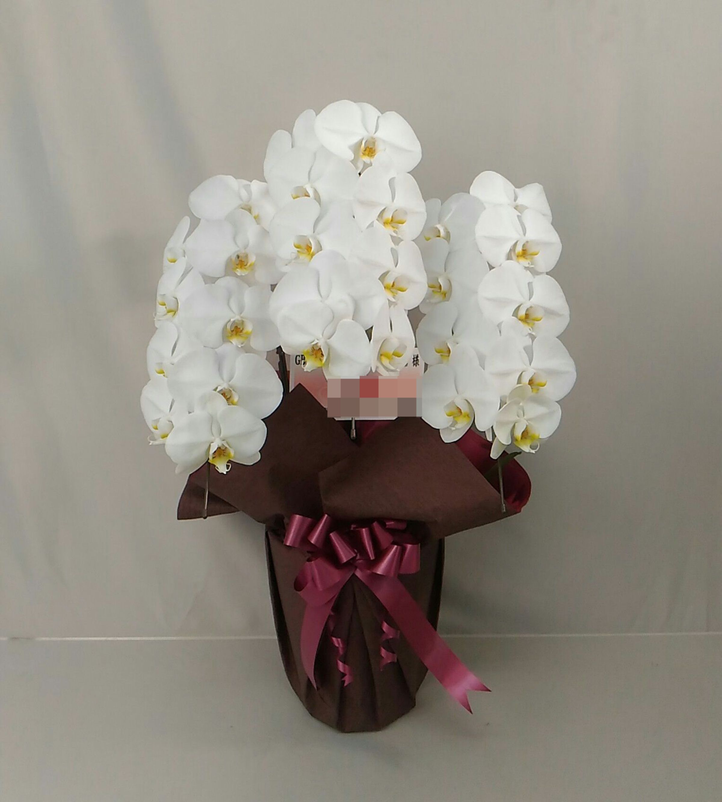 胡蝶蘭の実際にお届けした写真です。花秘書では発送前に写真をメールで送信致しますので安心して大切な顧客や取引様へのギフトにご利用頂けます。