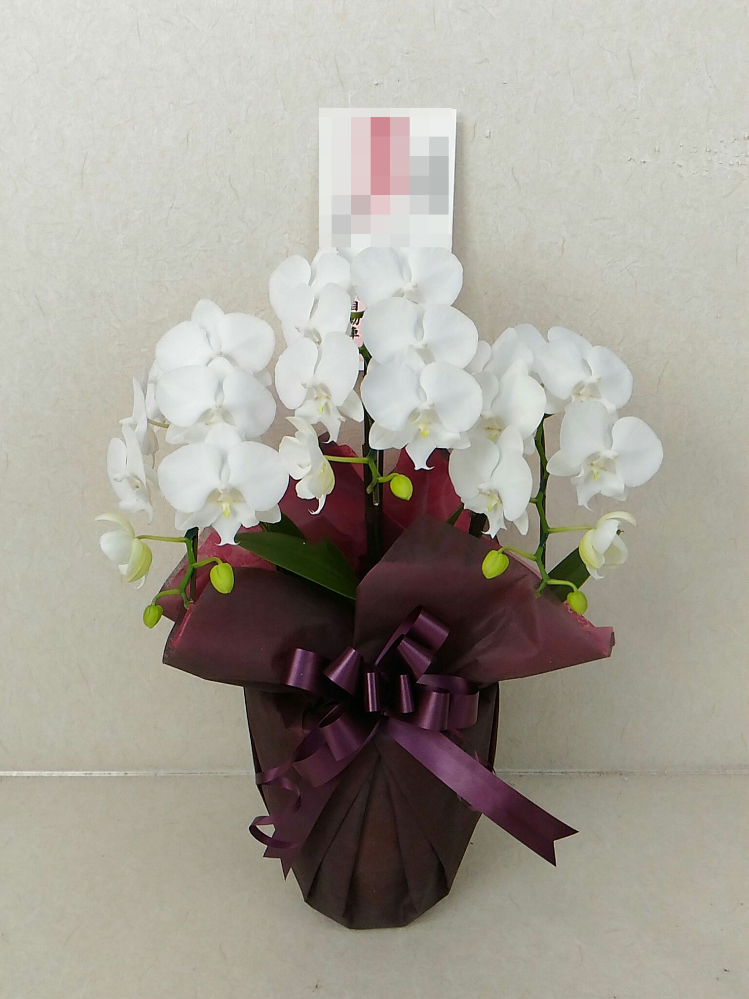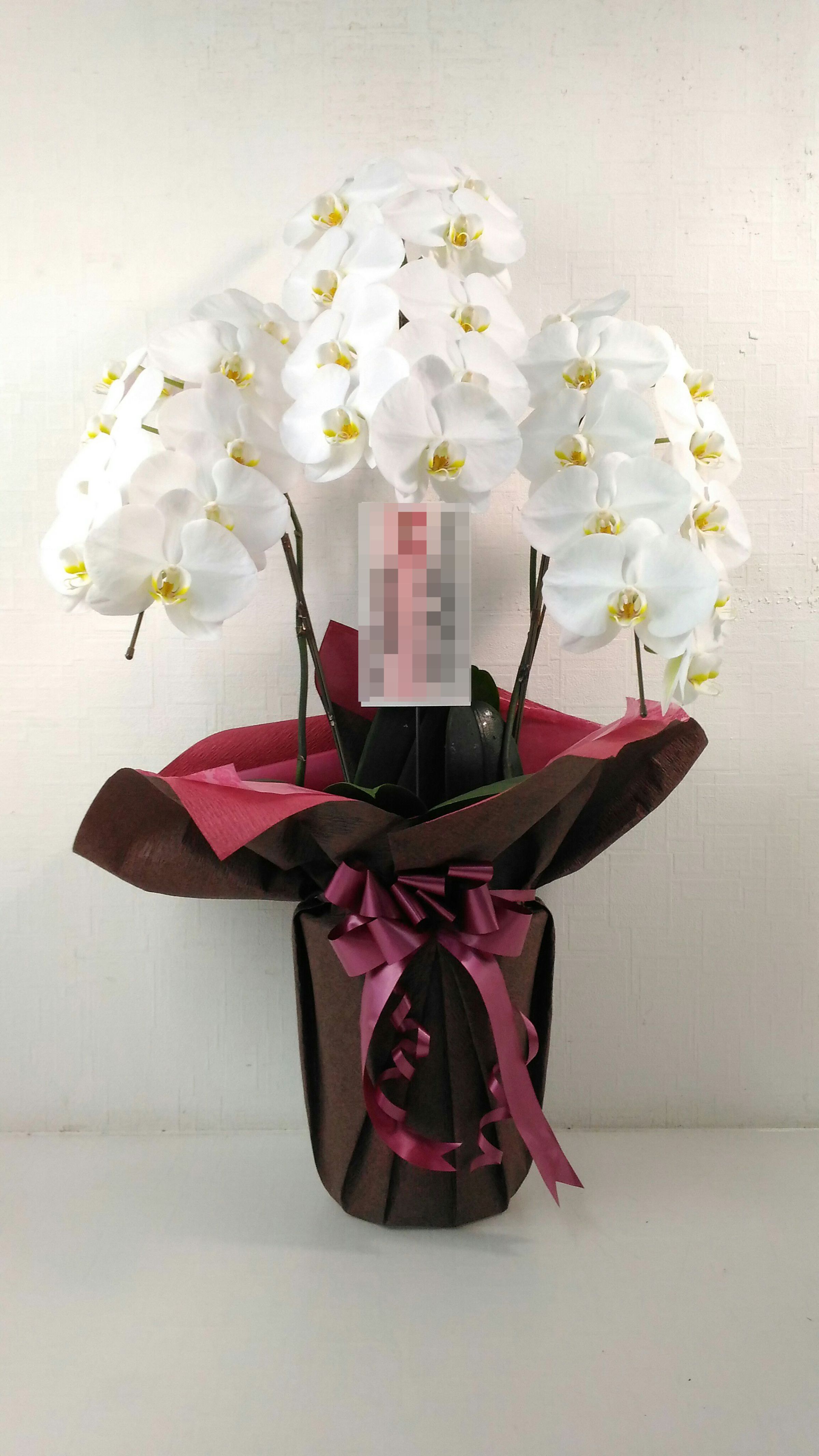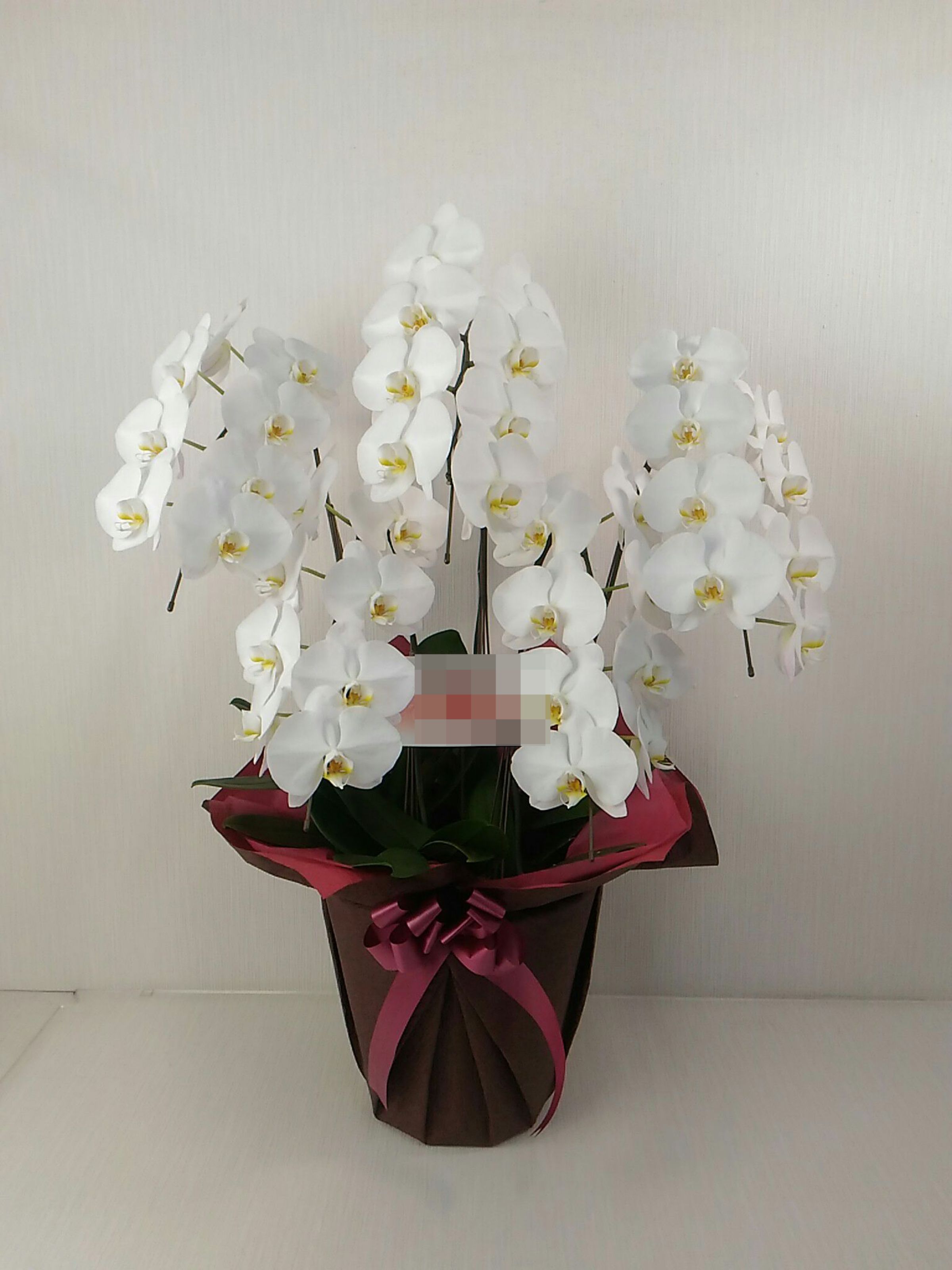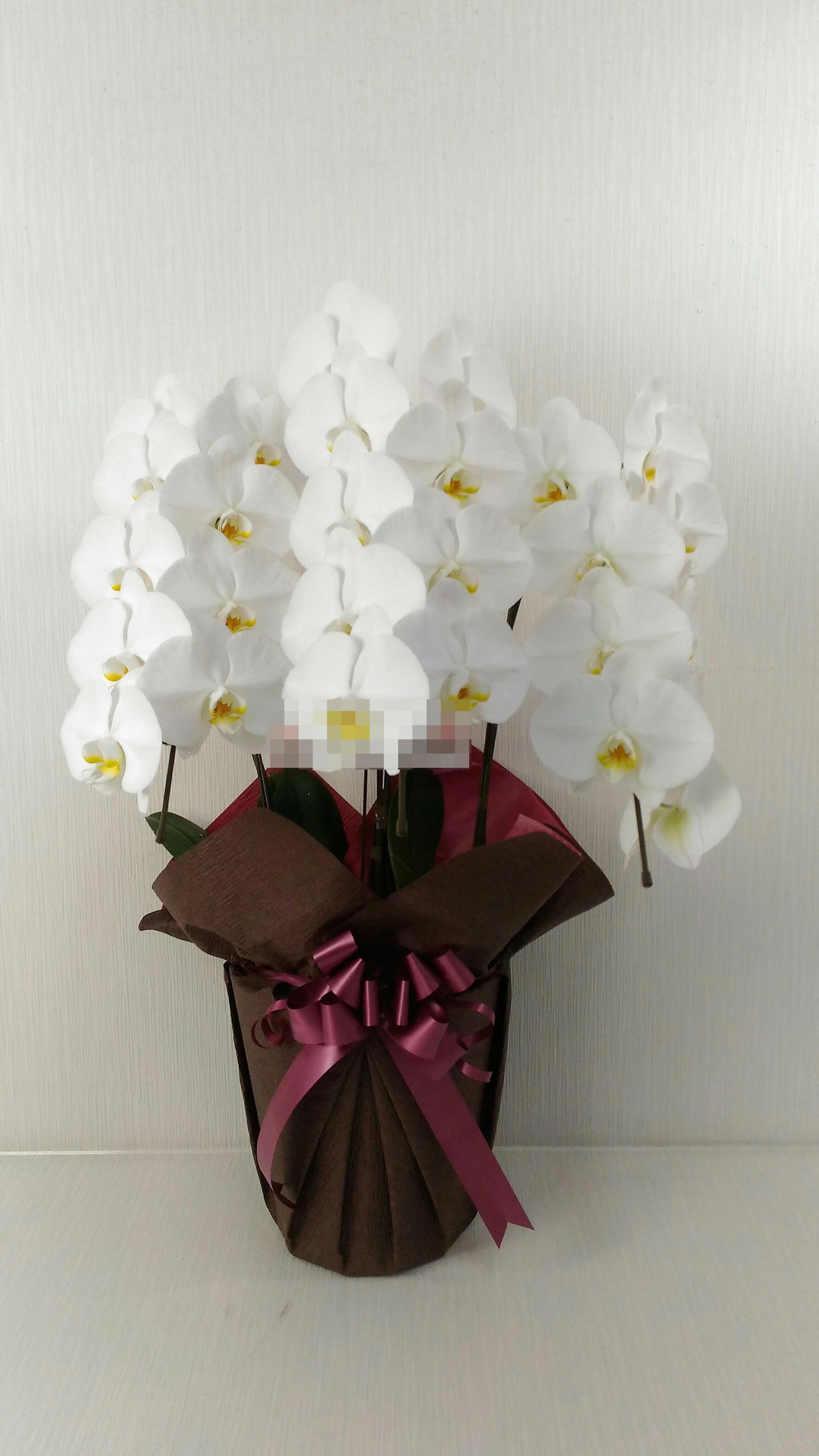 胡蝶蘭の実際にお届けした写真です。花秘書では発送前に写真をメールで送信致しますので安心して大切な顧客や取引様へのギフトにご利用頂けます。