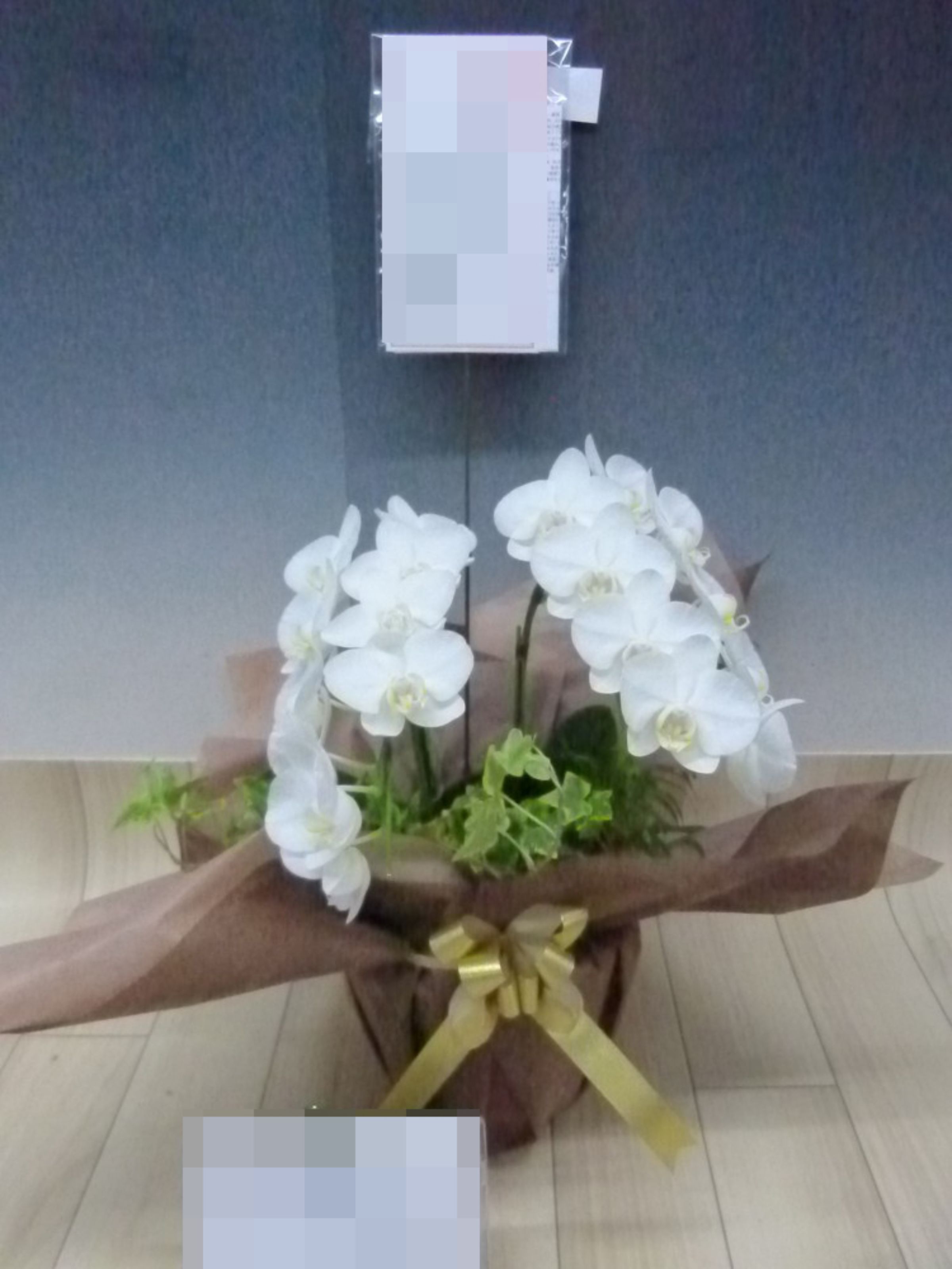 胡蝶蘭の実際にお届けした写真です。花秘書では発送前に写真をメールで送信致しますので安心して大切な顧客や取引様へのギフトにご利用頂けます。