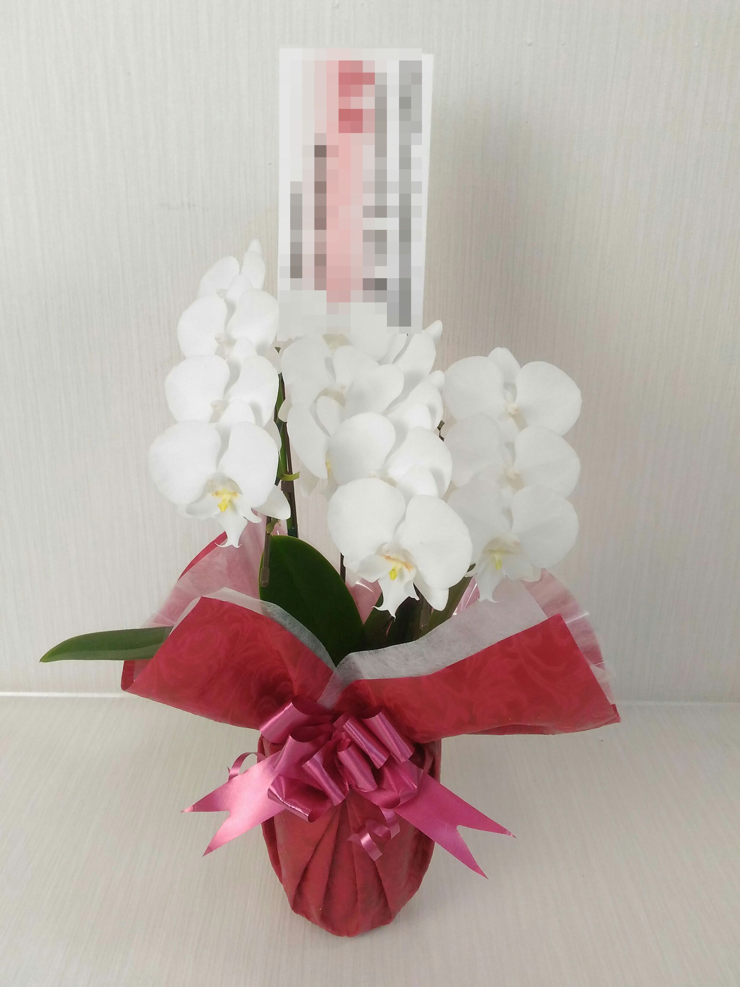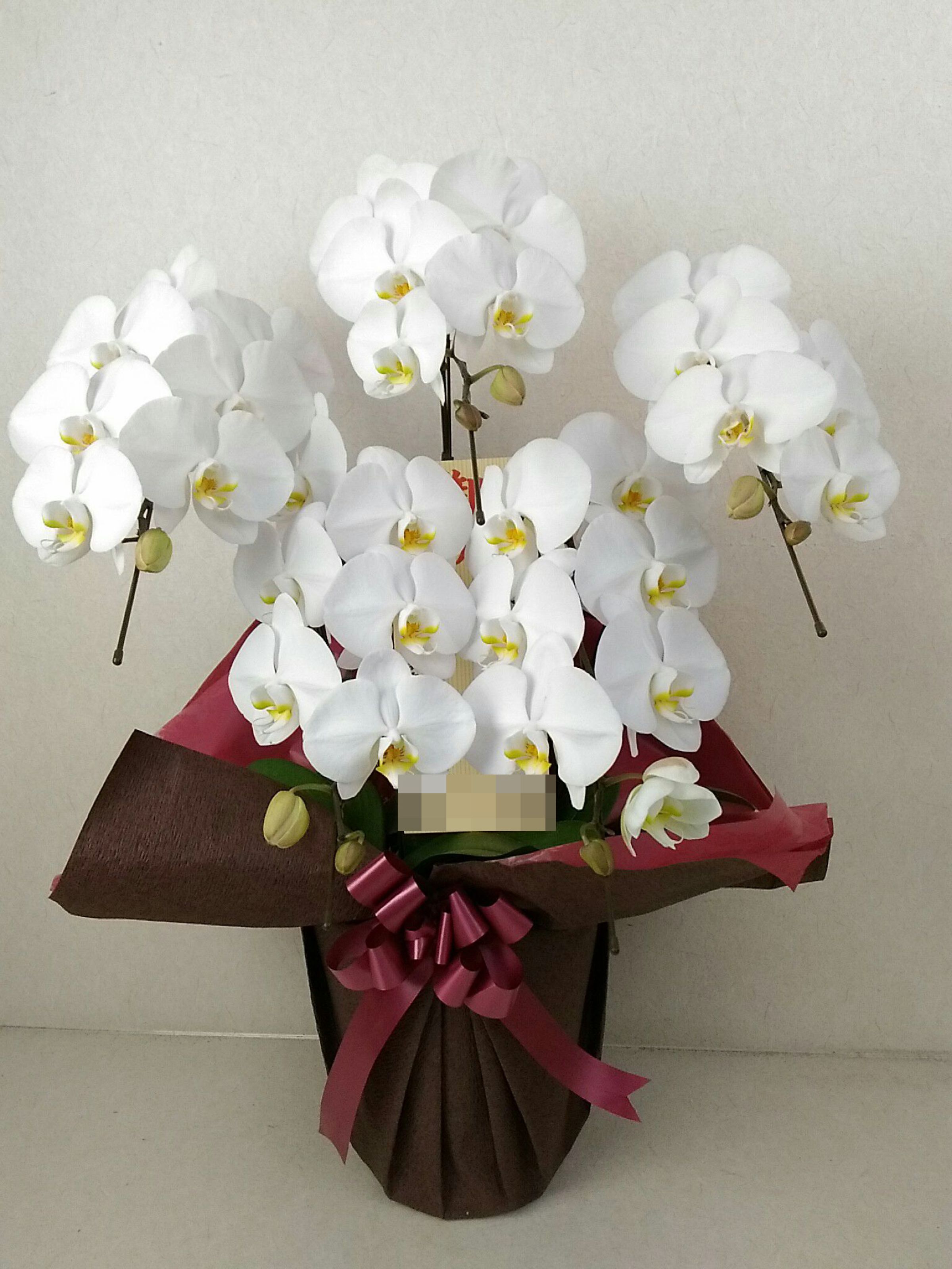 胡蝶蘭の実際にお届けした写真です。花秘書では発送前に写真をメールで送信致しますので安心して大切な顧客や取引様へのギフトにご利用頂けます。