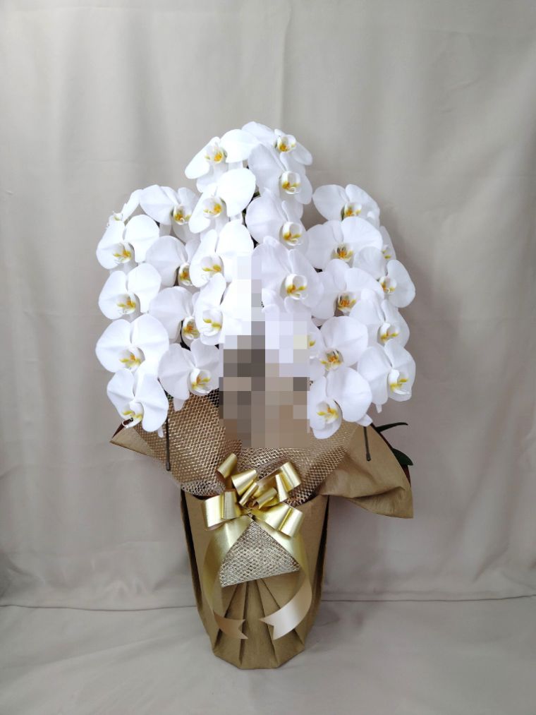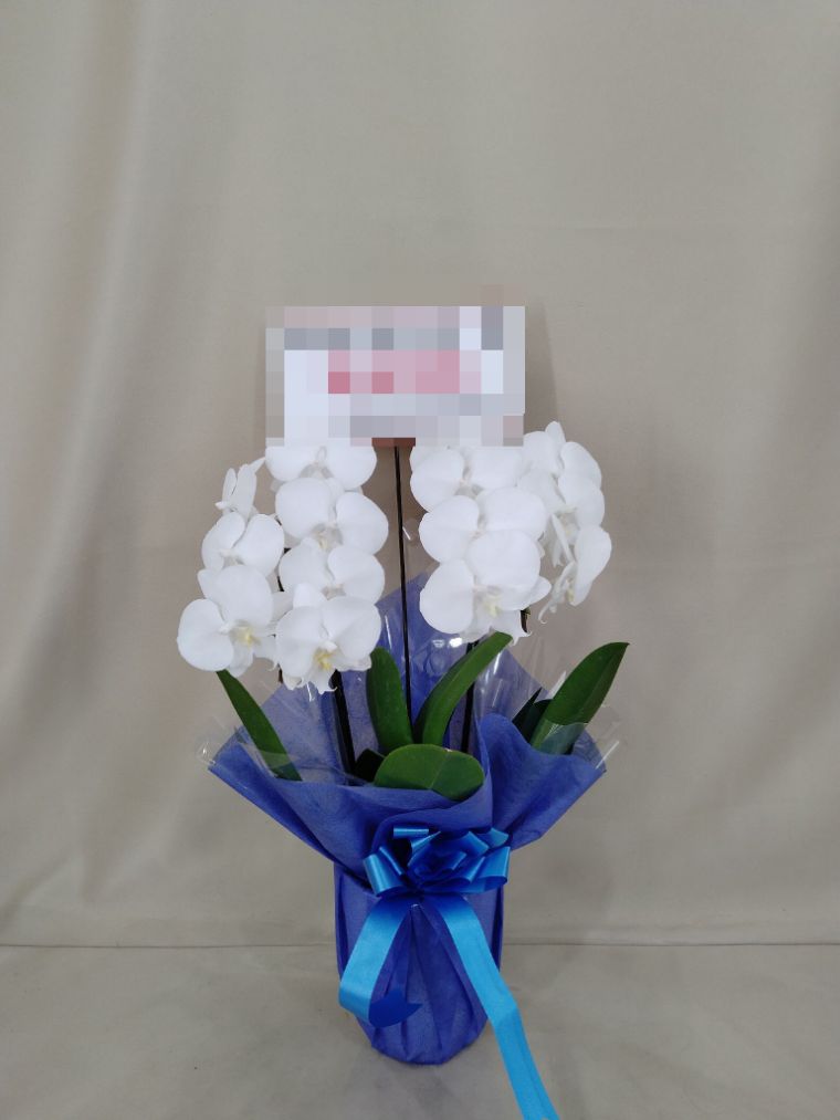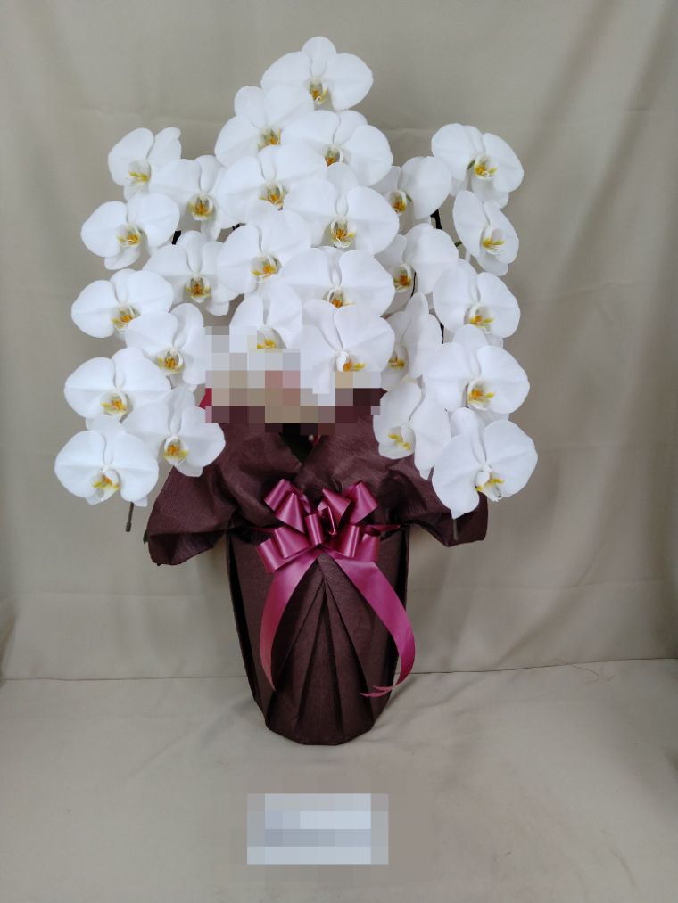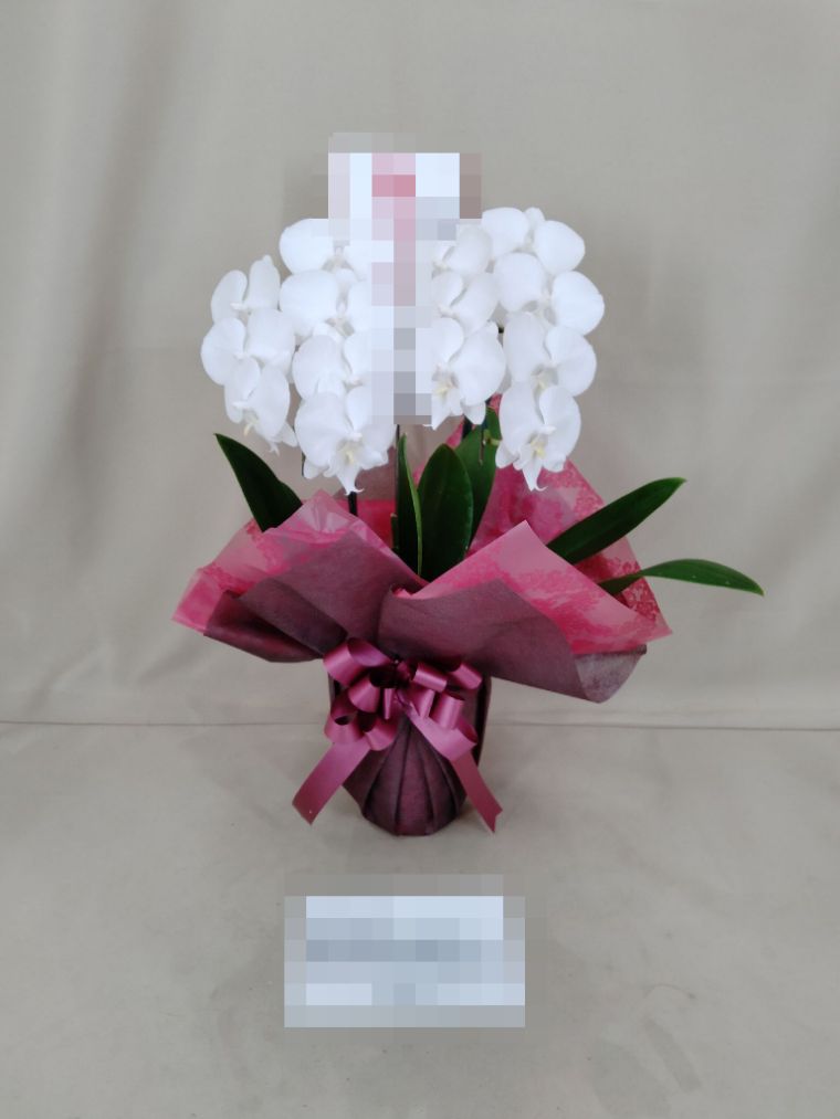 胡蝶蘭の実際にお届けした写真です。花秘書では発送前に写真をメールで送信致しますので安心して大切な顧客や取引様へのギフトにご利用頂けます。