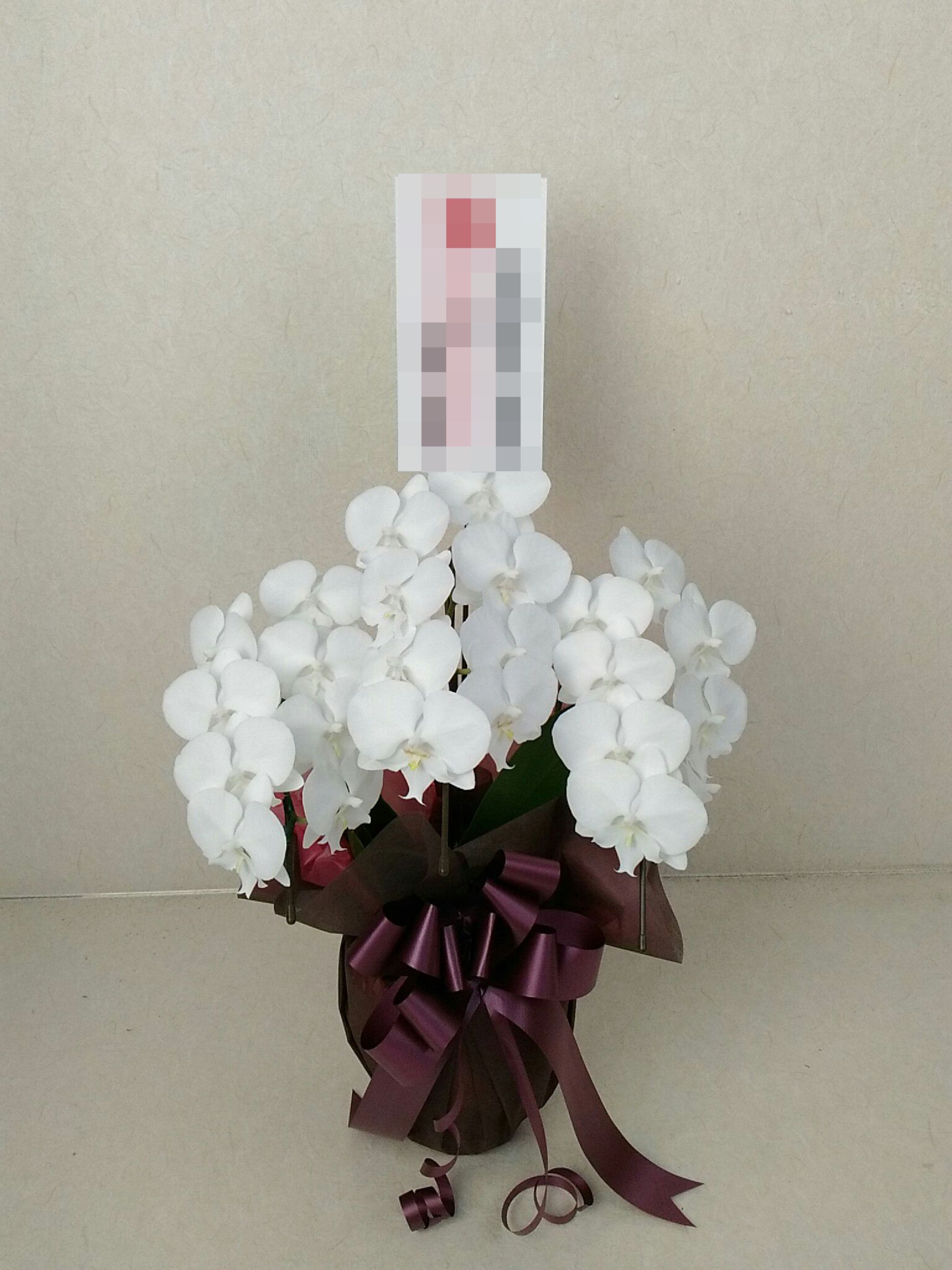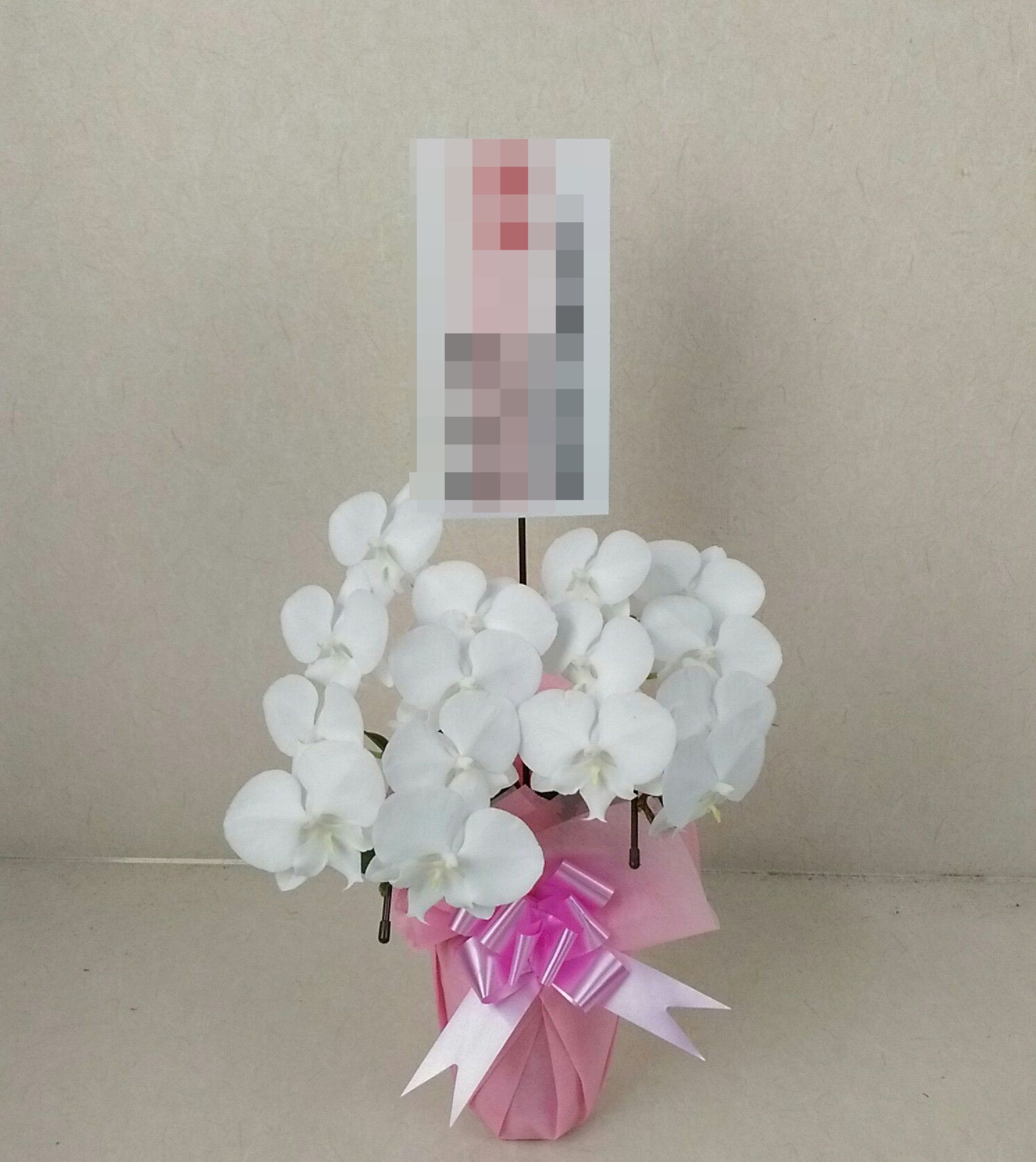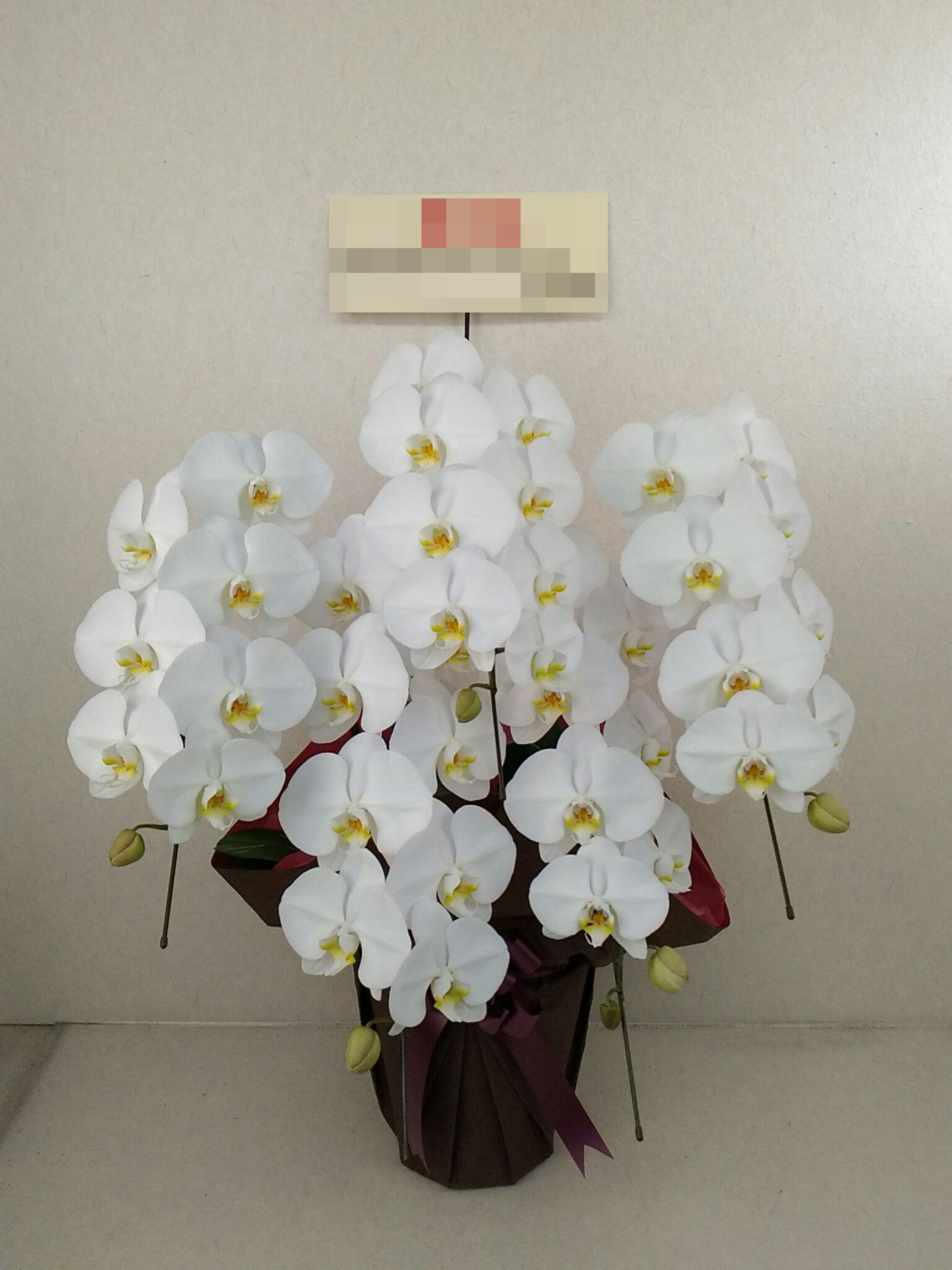 胡蝶蘭の実際にお届けした写真です。花秘書では発送前に写真をメールで送信致しますので安心して大切な顧客や取引様へのギフトにご利用頂けます。