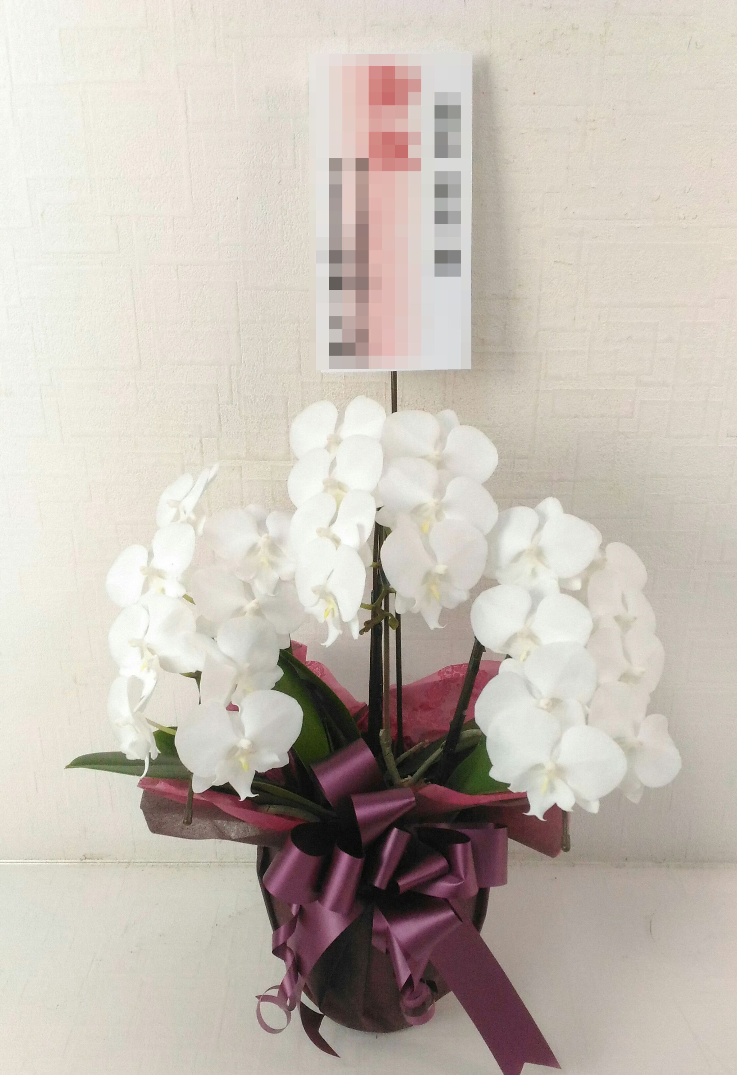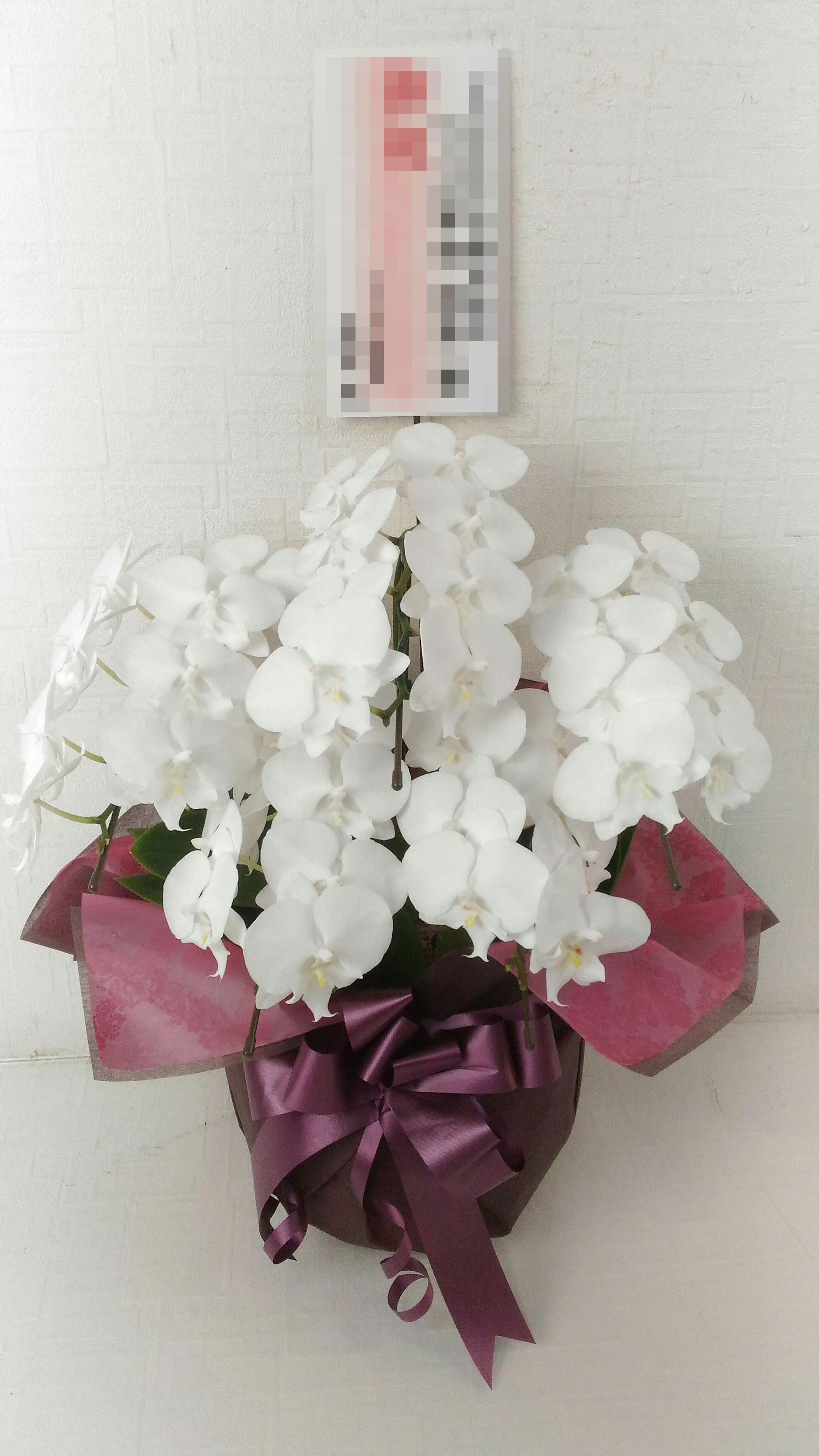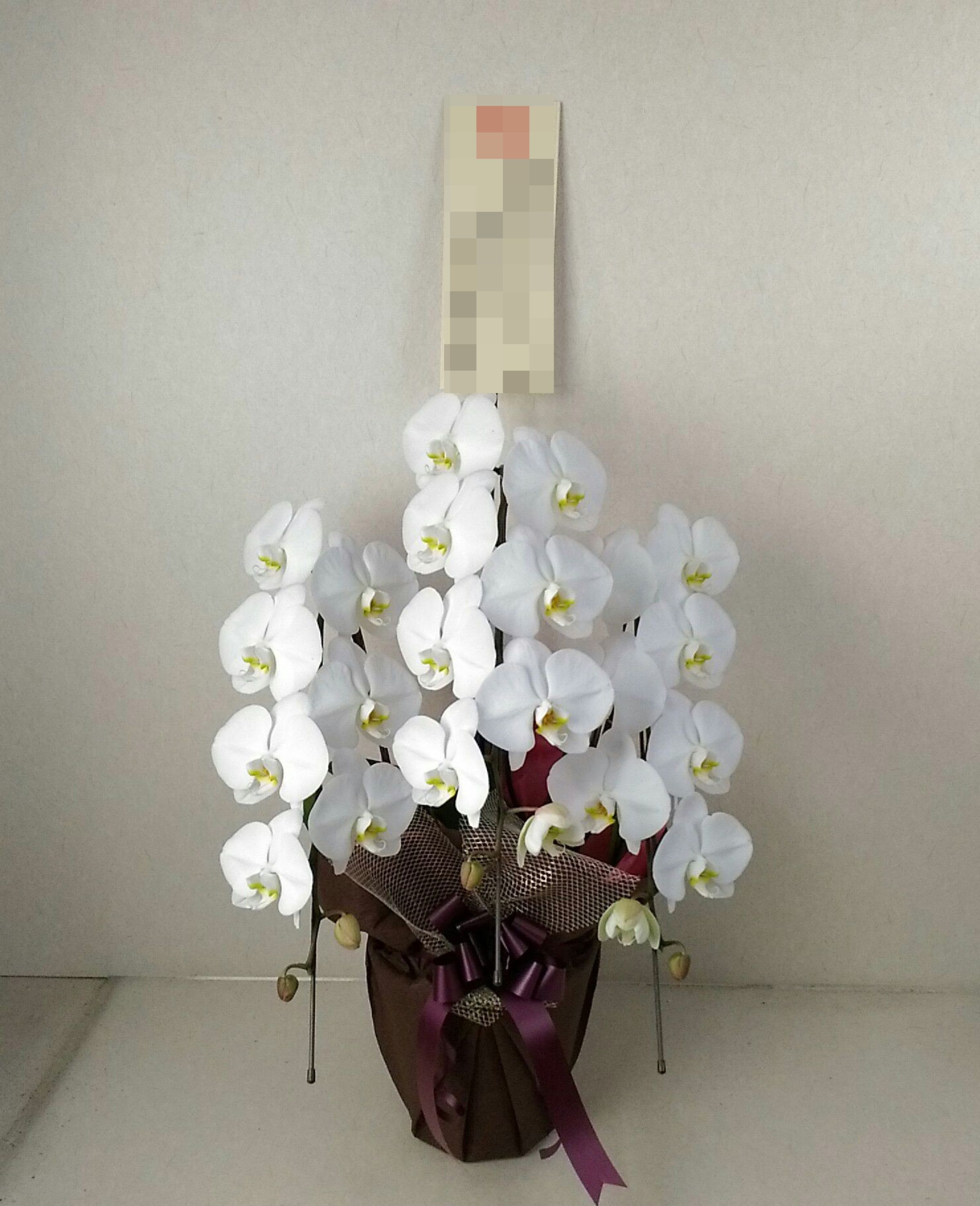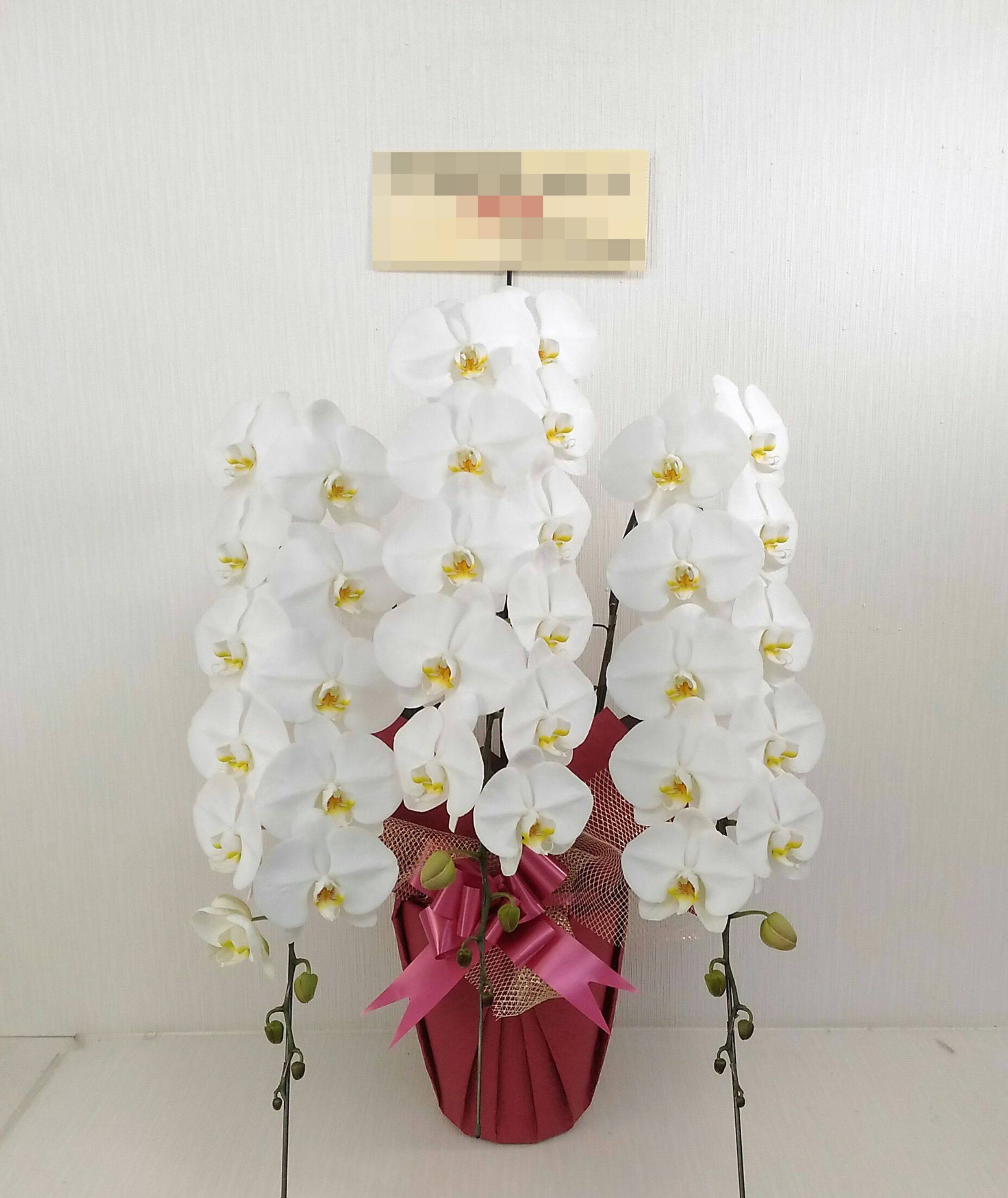 胡蝶蘭の実際にお届けした写真です。花秘書では発送前に写真をメールで送信致しますので安心して大切な顧客や取引様へのギフトにご利用頂けます。