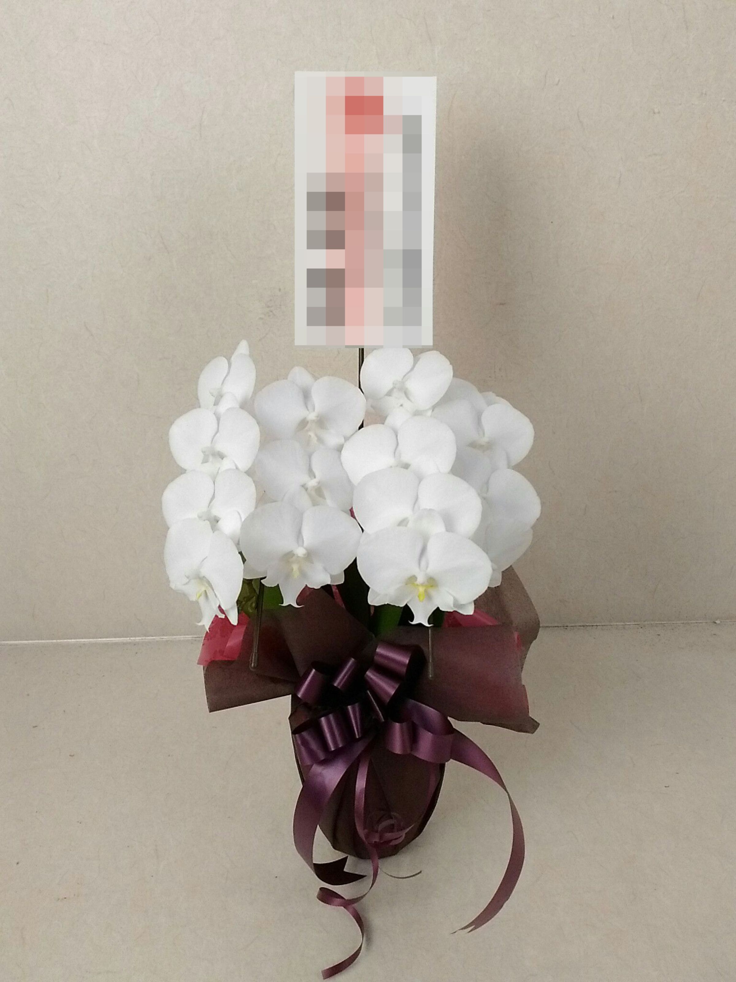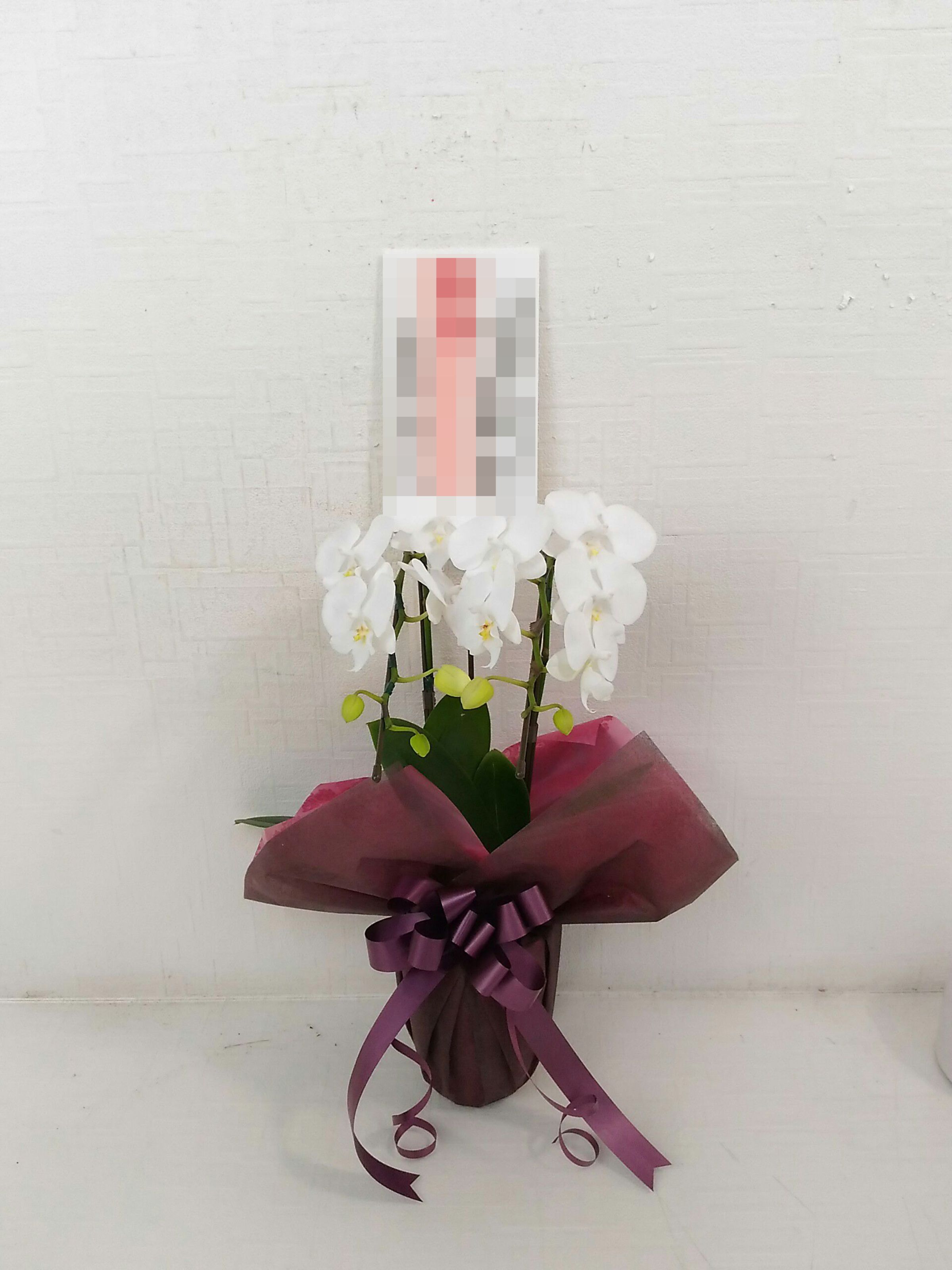 胡蝶蘭の実際にお届けした写真です。花秘書では発送前に写真をメールで送信致しますので安心して大切な顧客や取引様へのギフトにご利用頂けます。