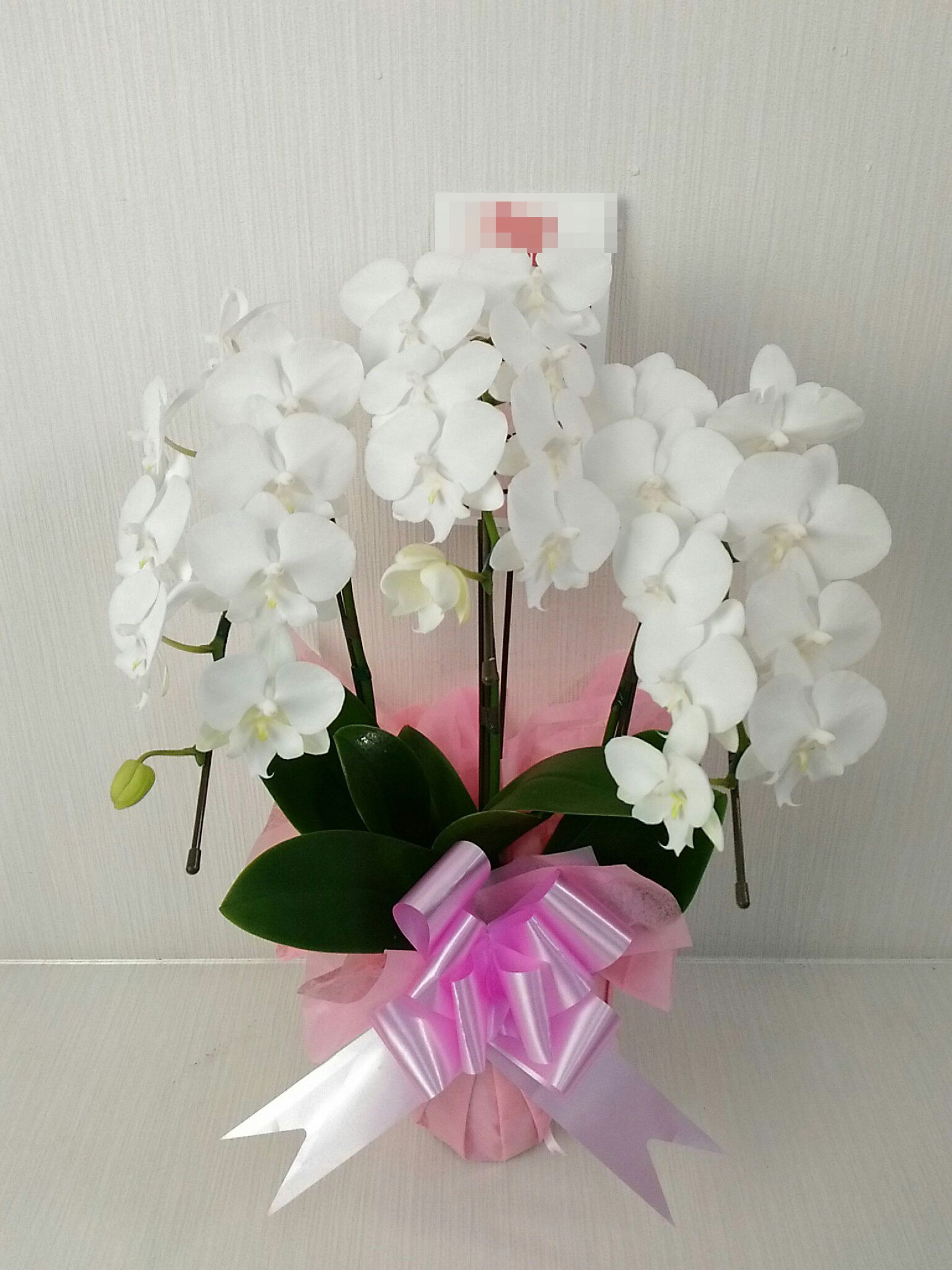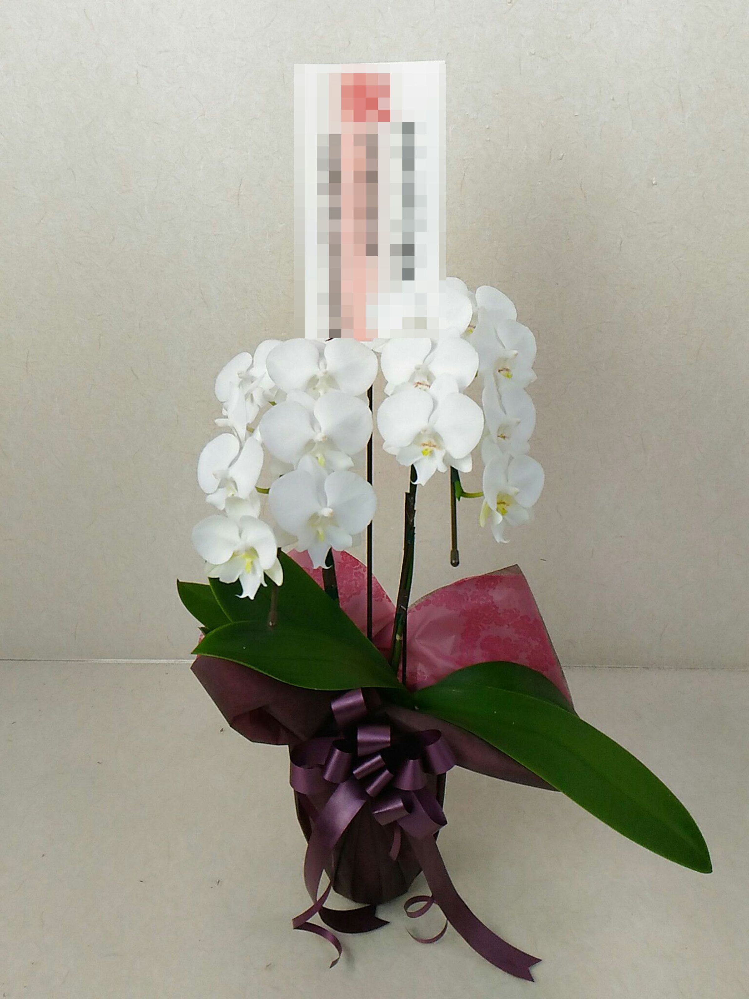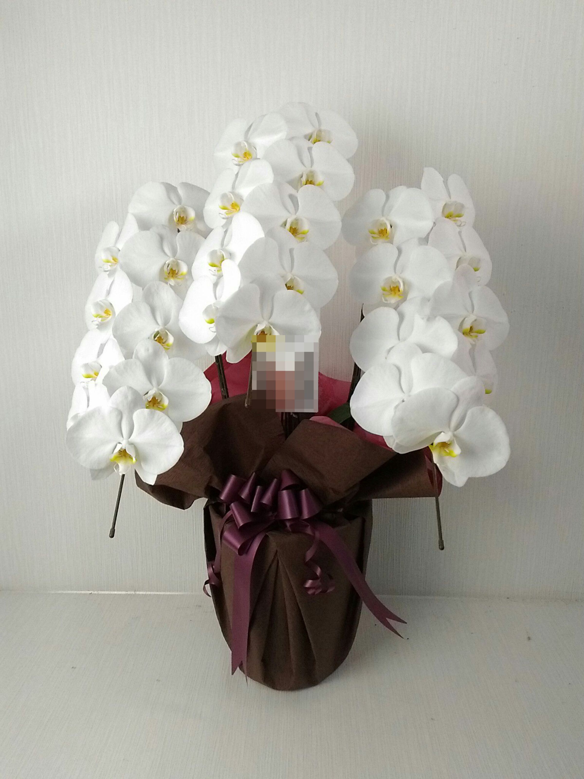 胡蝶蘭の実際にお届けした写真です。花秘書では発送前に写真をメールで送信致しますので安心して大切な顧客や取引様へのギフトにご利用頂けます。