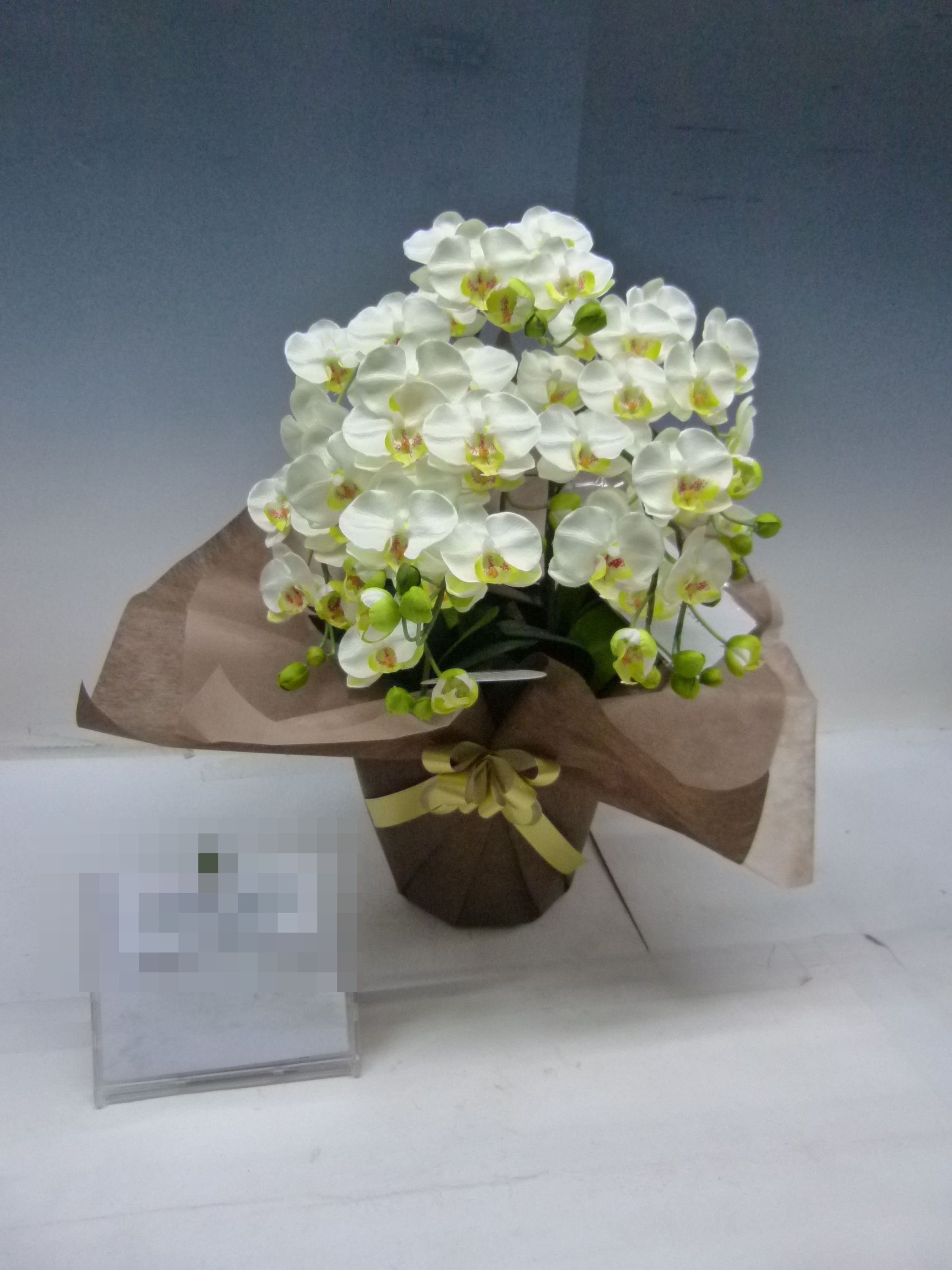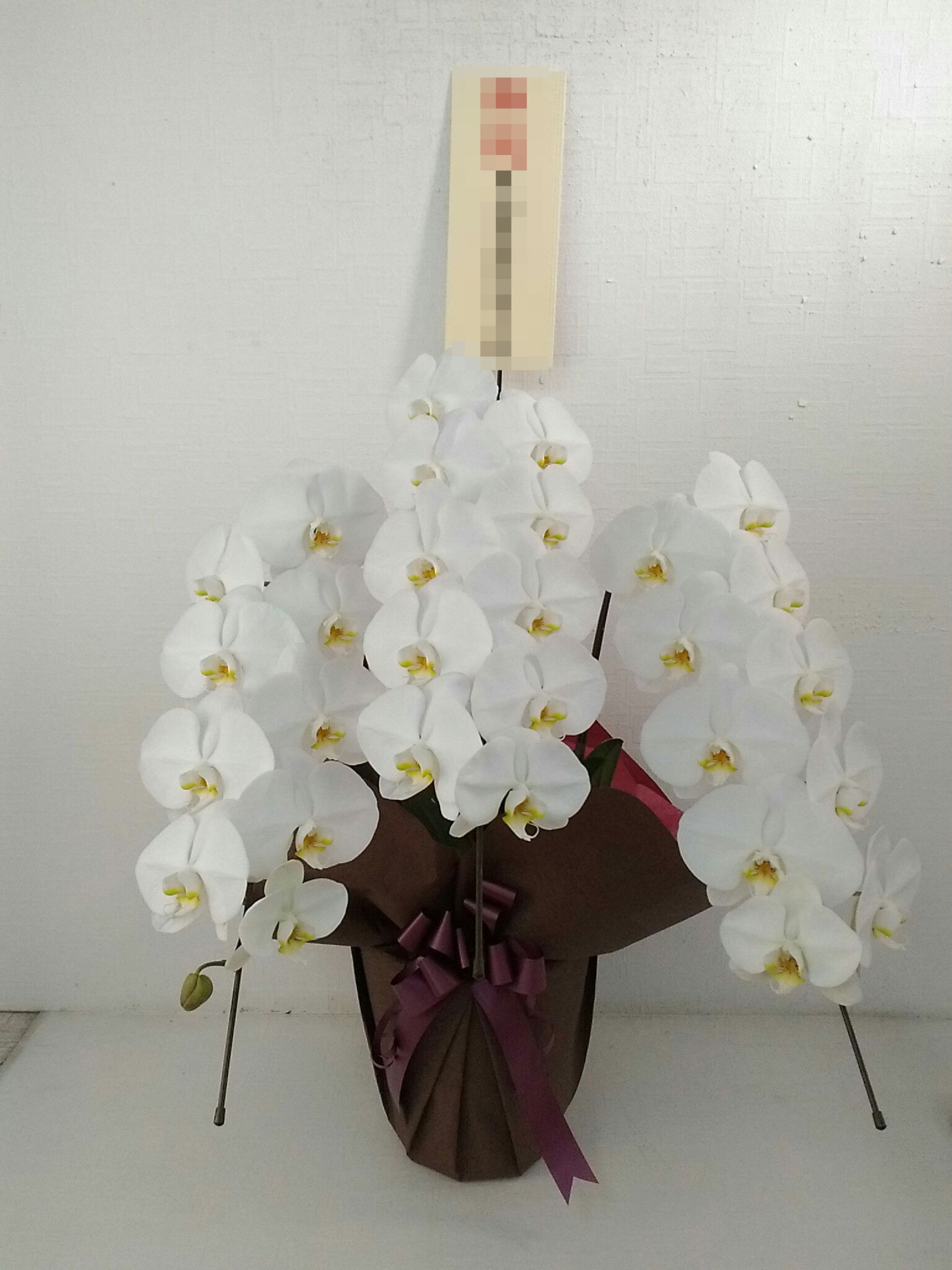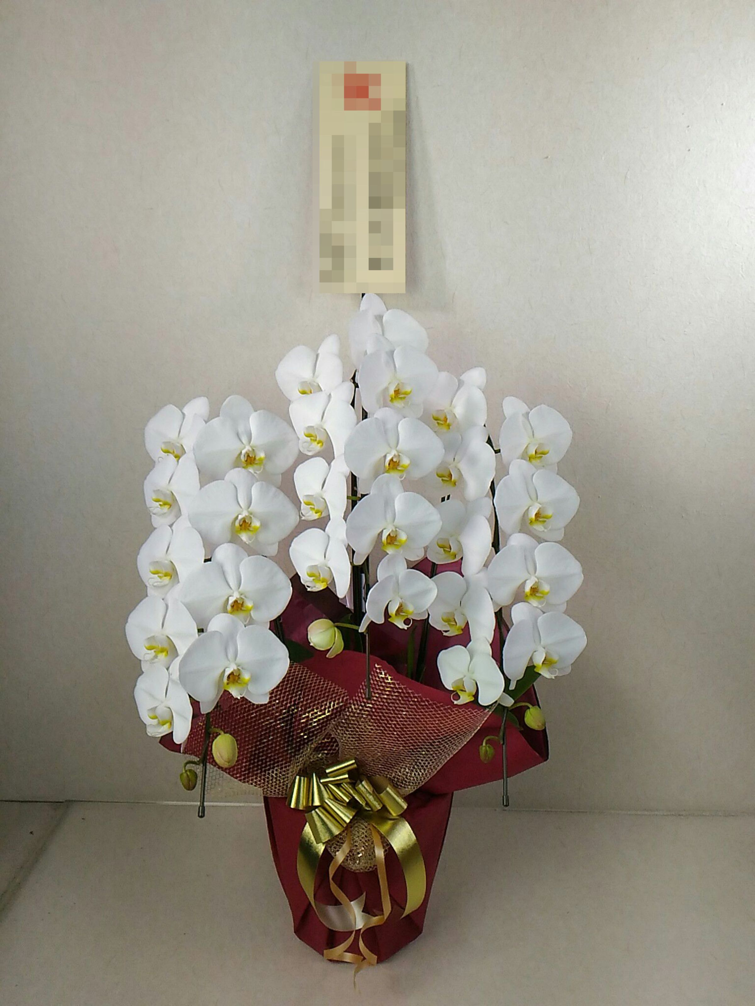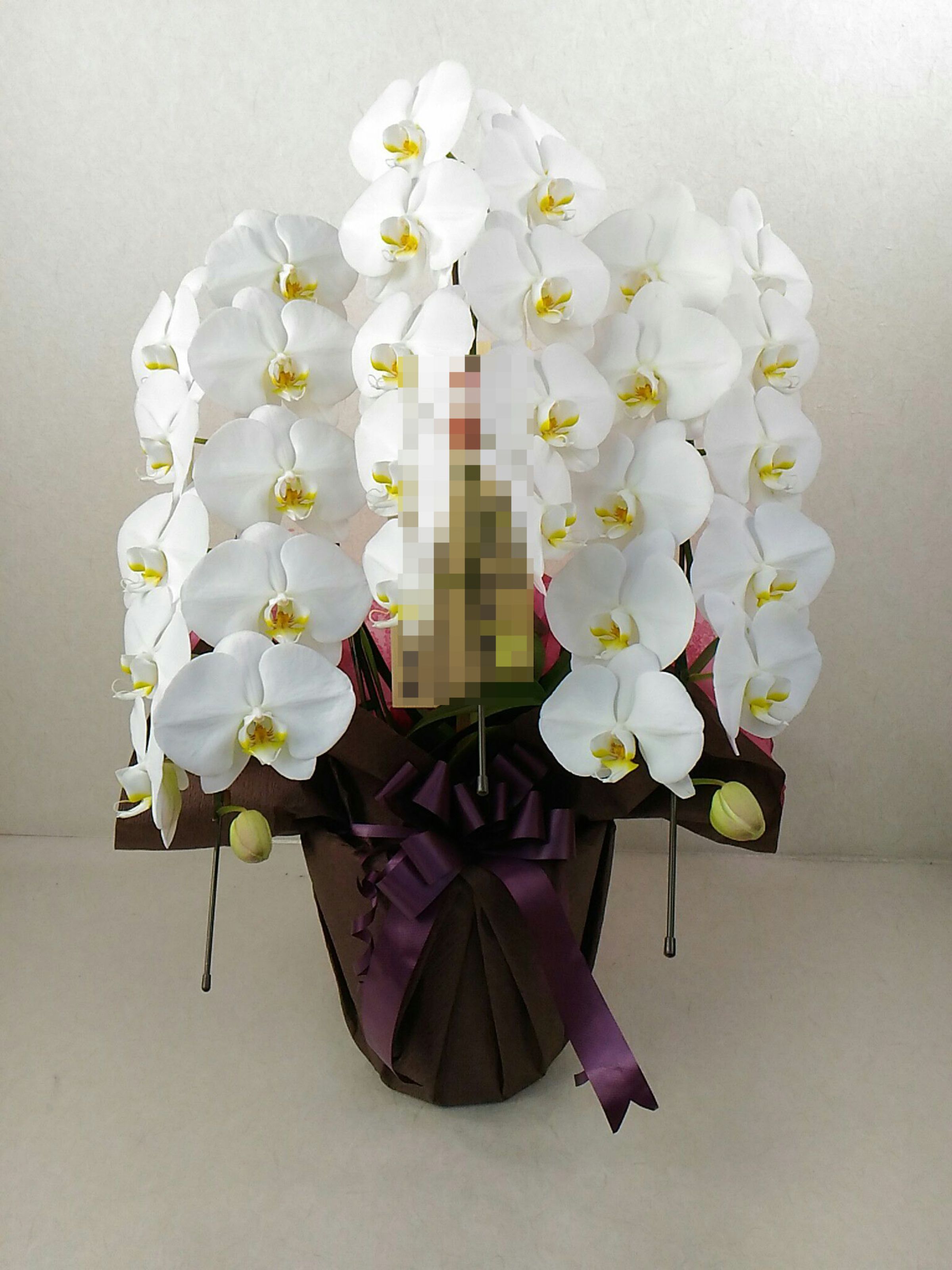 胡蝶蘭の実際にお届けした写真です。花秘書では発送前に写真をメールで送信致しますので安心して大切な顧客や取引様へのギフトにご利用頂けます。