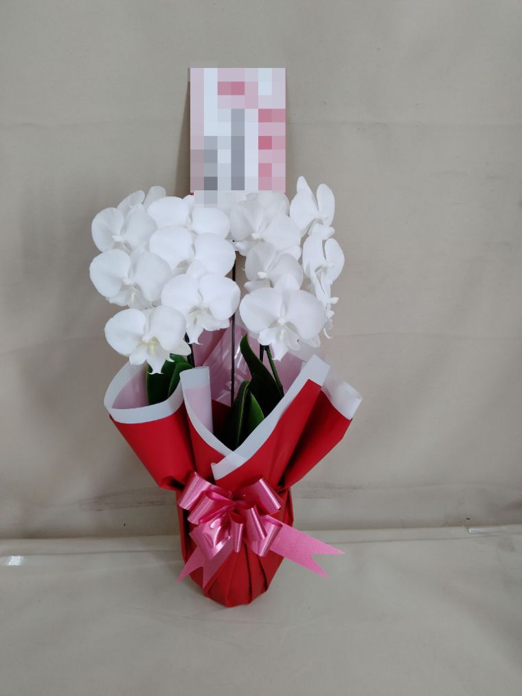 胡蝶蘭の実際にお届けした写真です。花秘書では発送前に写真をメールで送信致しますので安心して大切な顧客や取引様へのギフトにご利用頂けます。