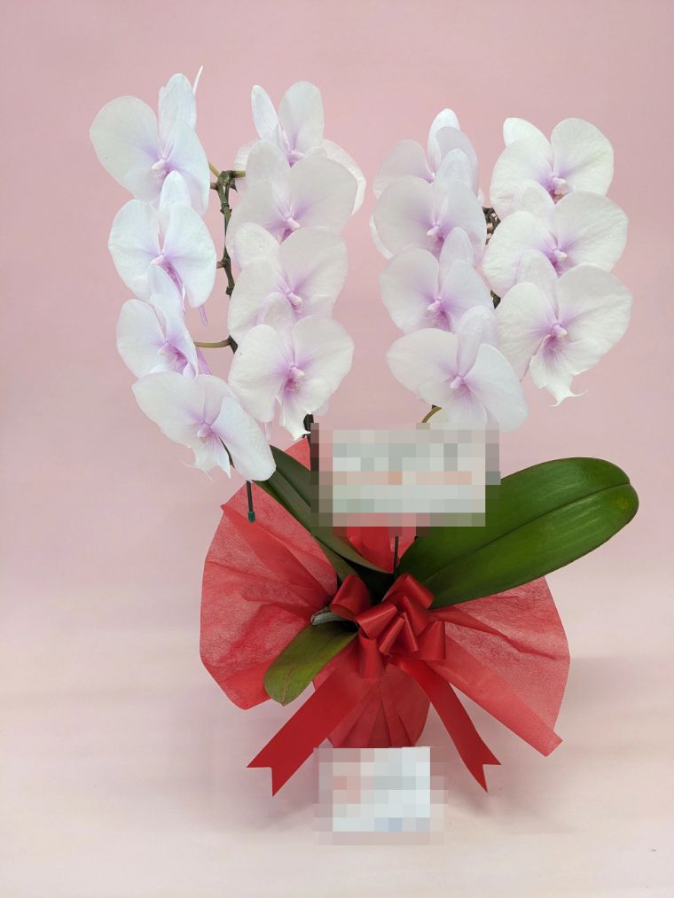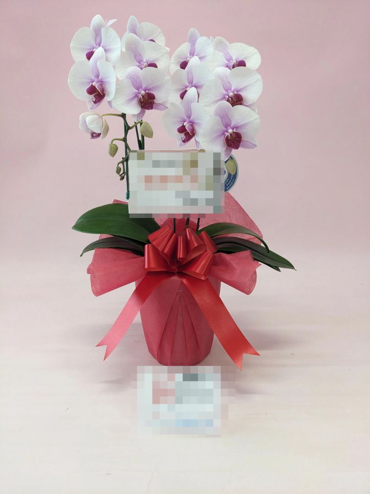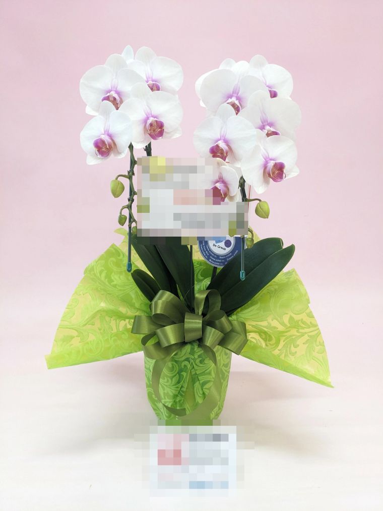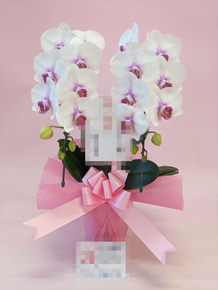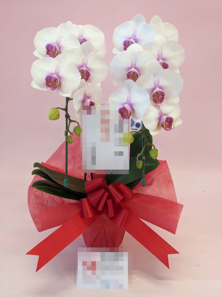 胡蝶蘭の実際にお届けした写真です。花秘書では発送前に写真をメールで送信致しますので安心して大切な顧客や取引様へのギフトにご利用頂けます。
