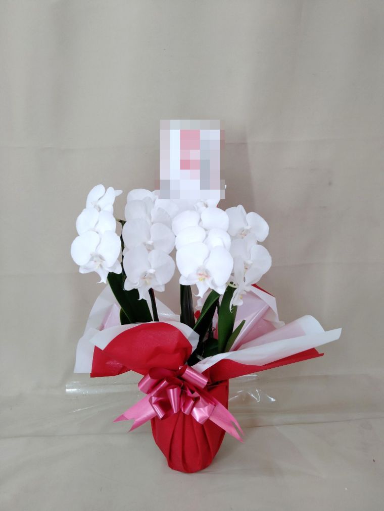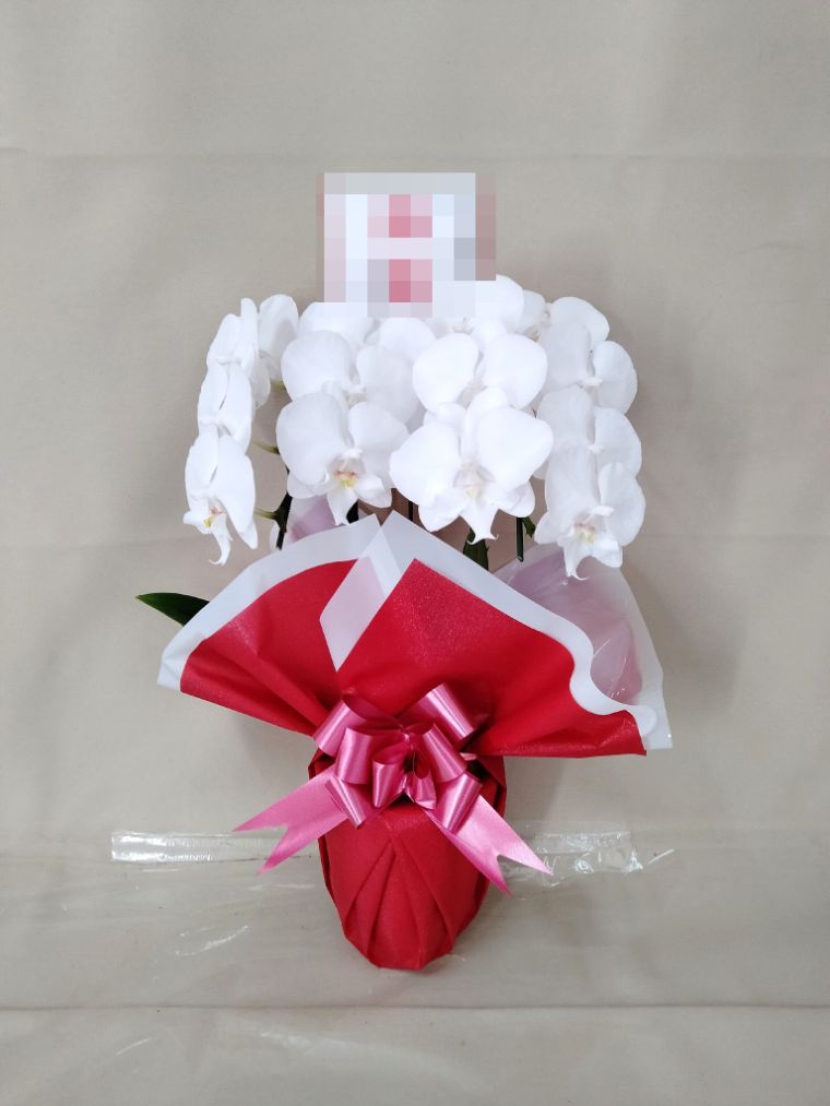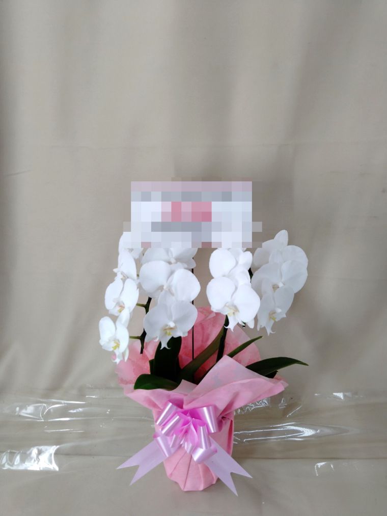 胡蝶蘭の実際にお届けした写真です。花秘書では発送前に写真をメールで送信致しますので安心して大切な顧客や取引様へのギフトにご利用頂けます。