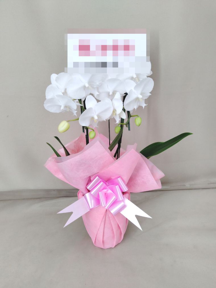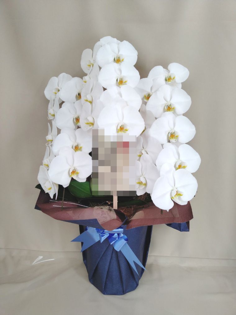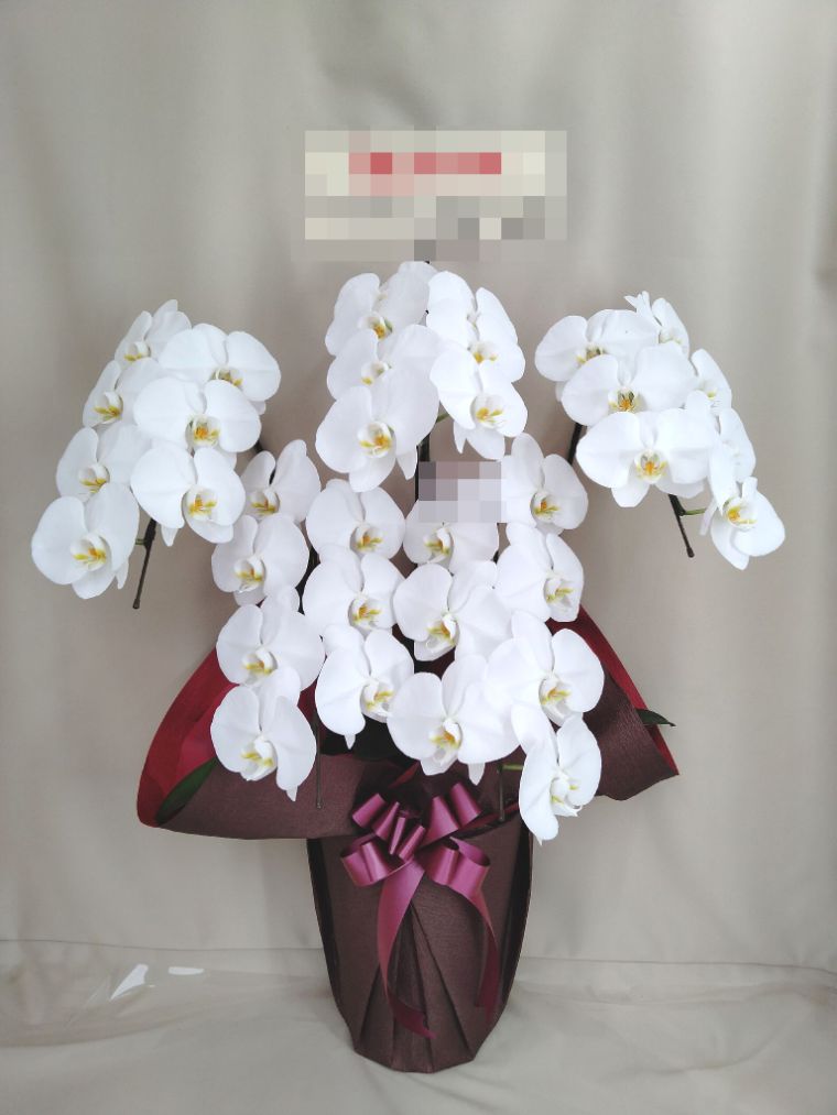 胡蝶蘭の実際にお届けした写真です。花秘書では発送前に写真をメールで送信致しますので安心して大切な顧客や取引様へのギフトにご利用頂けます。