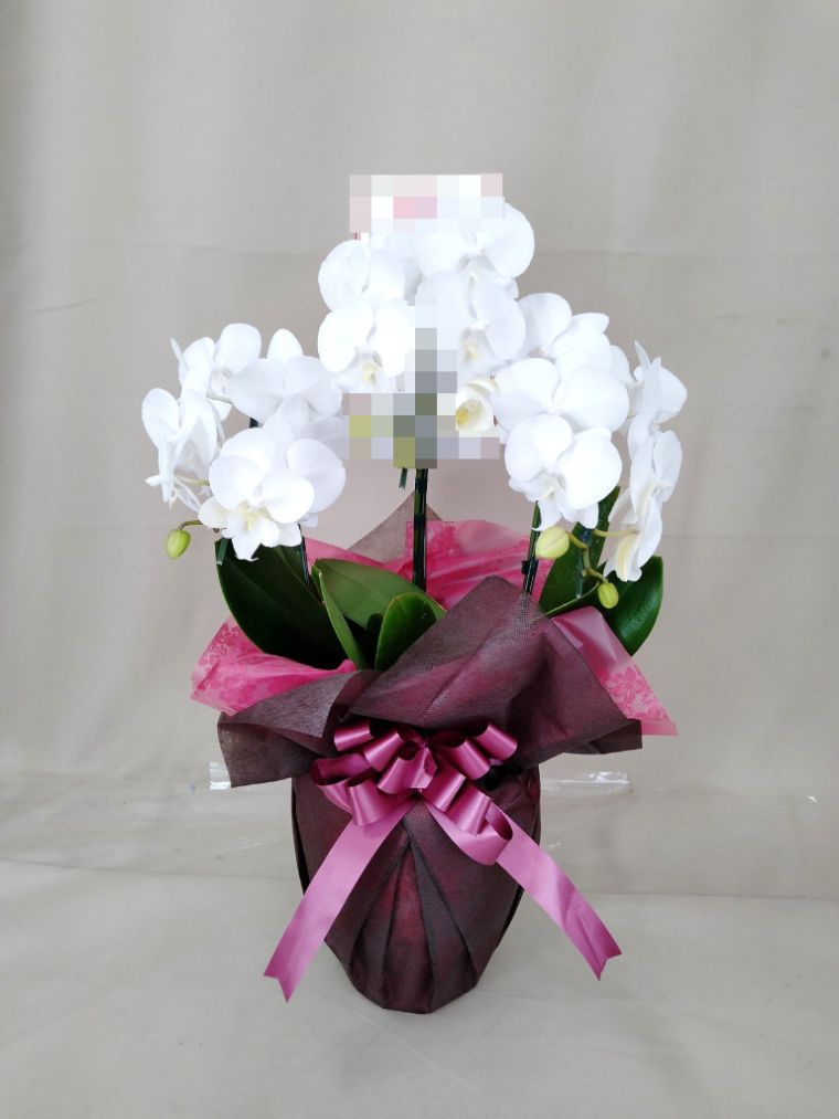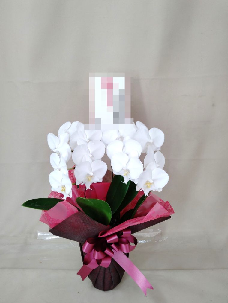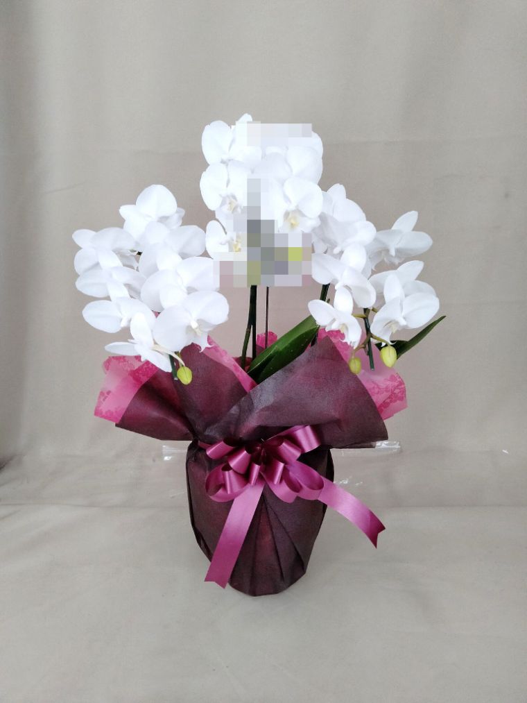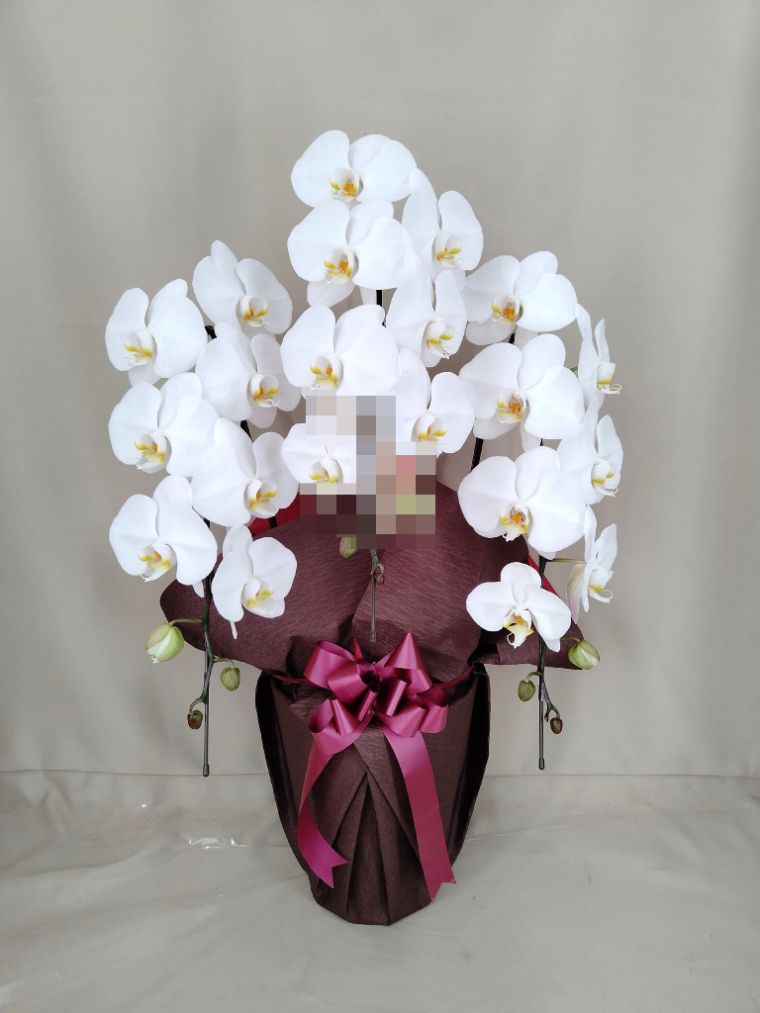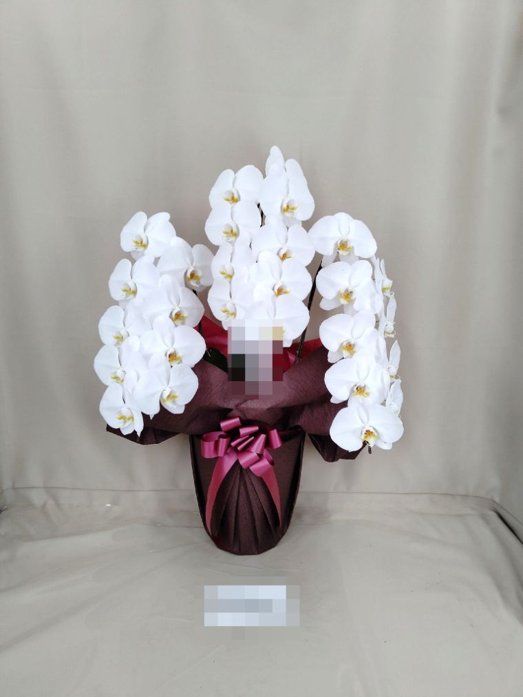 胡蝶蘭の実際にお届けした写真です。花秘書では発送前に写真をメールで送信致しますので安心して大切な顧客や取引様へのギフトにご利用頂けます。