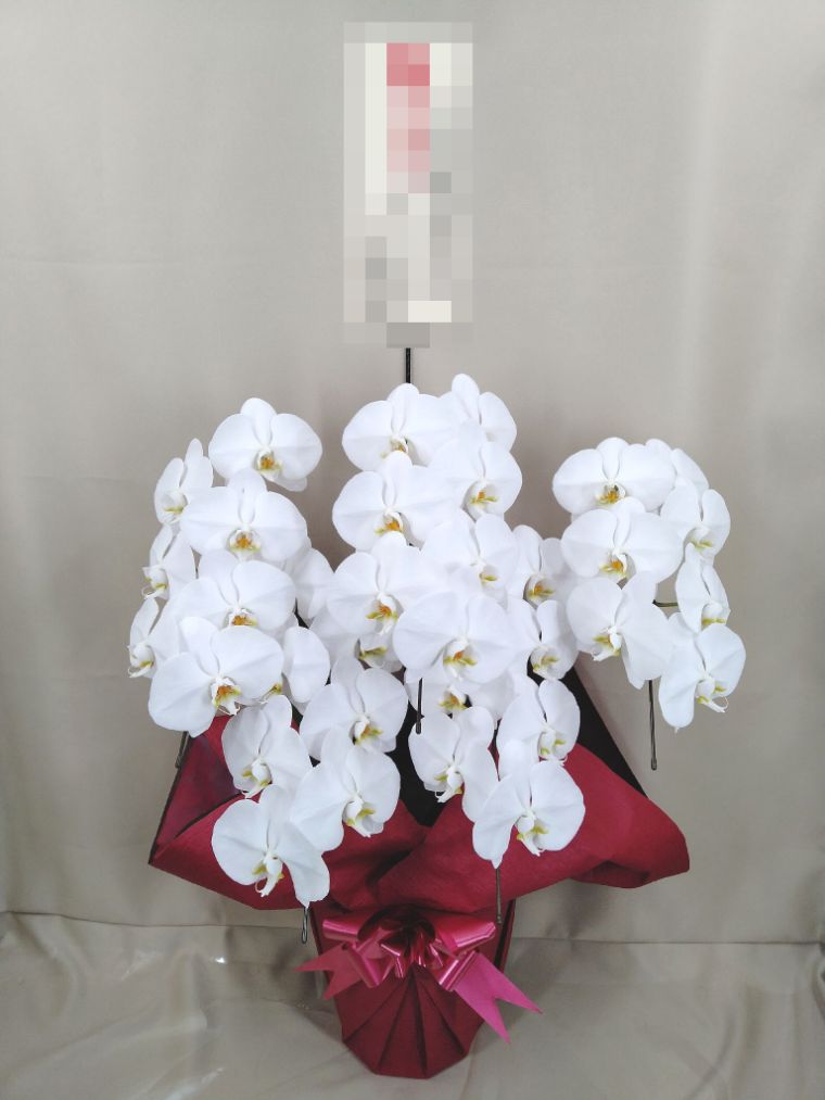胡蝶蘭の実際にお届けした写真です。花秘書では発送前に写真をメールで送信致しますので安心して大切な顧客や取引様へのギフトにご利用頂けます。