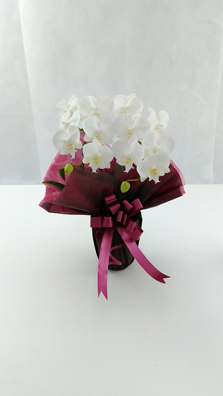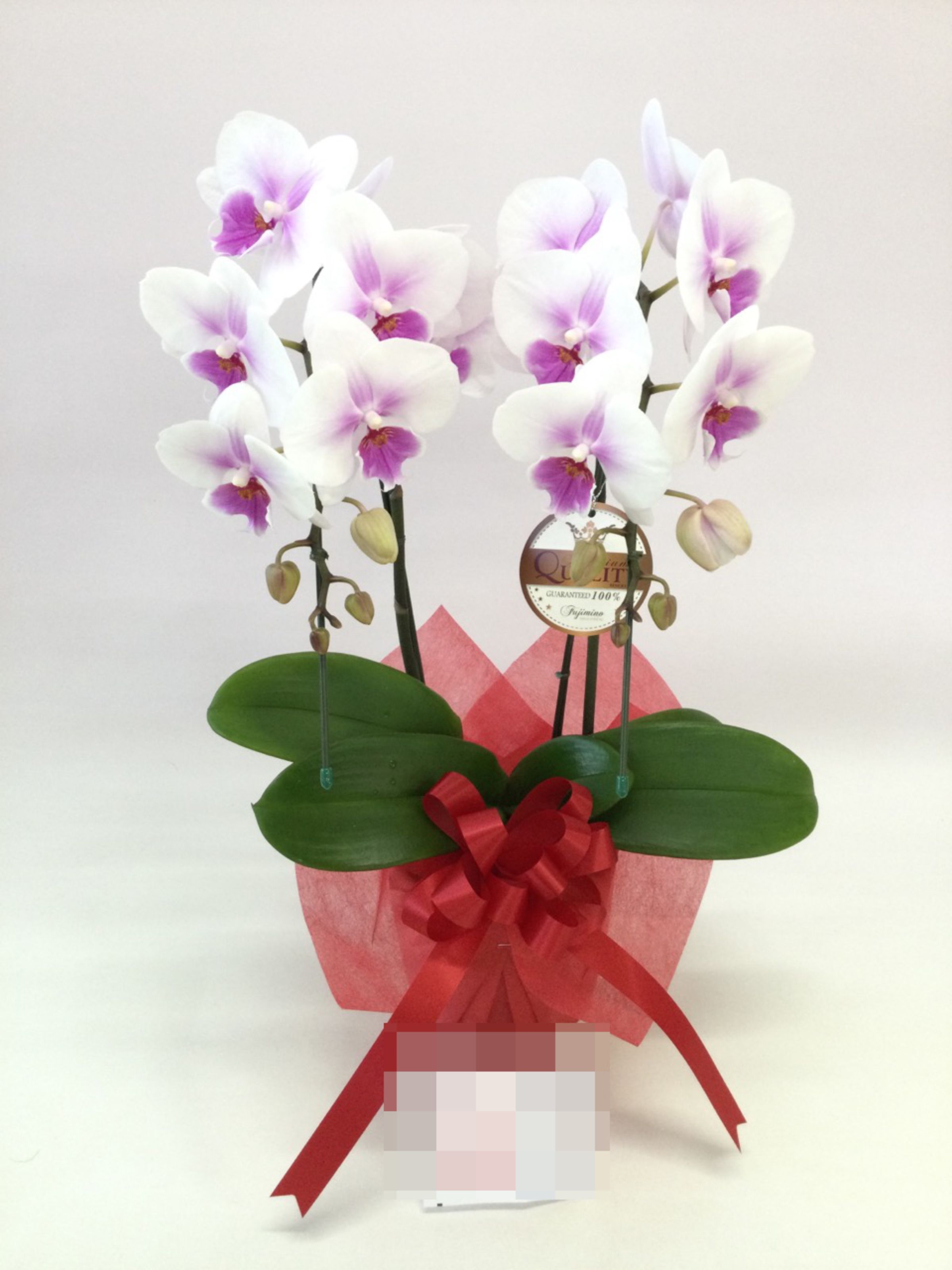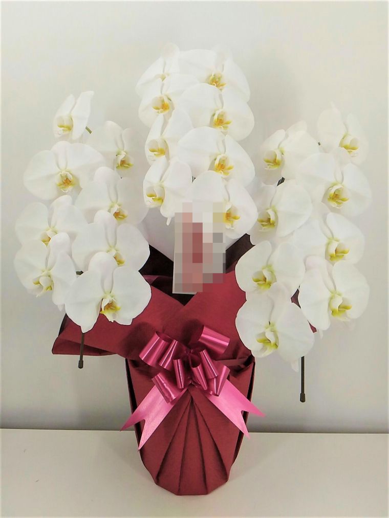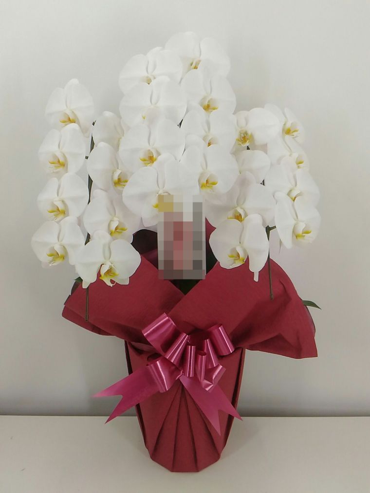 胡蝶蘭の実際にお届けした写真です。花秘書では発送前に写真をメールで送信致しますので安心して大切な顧客や取引様へのギフトにご利用頂けます。