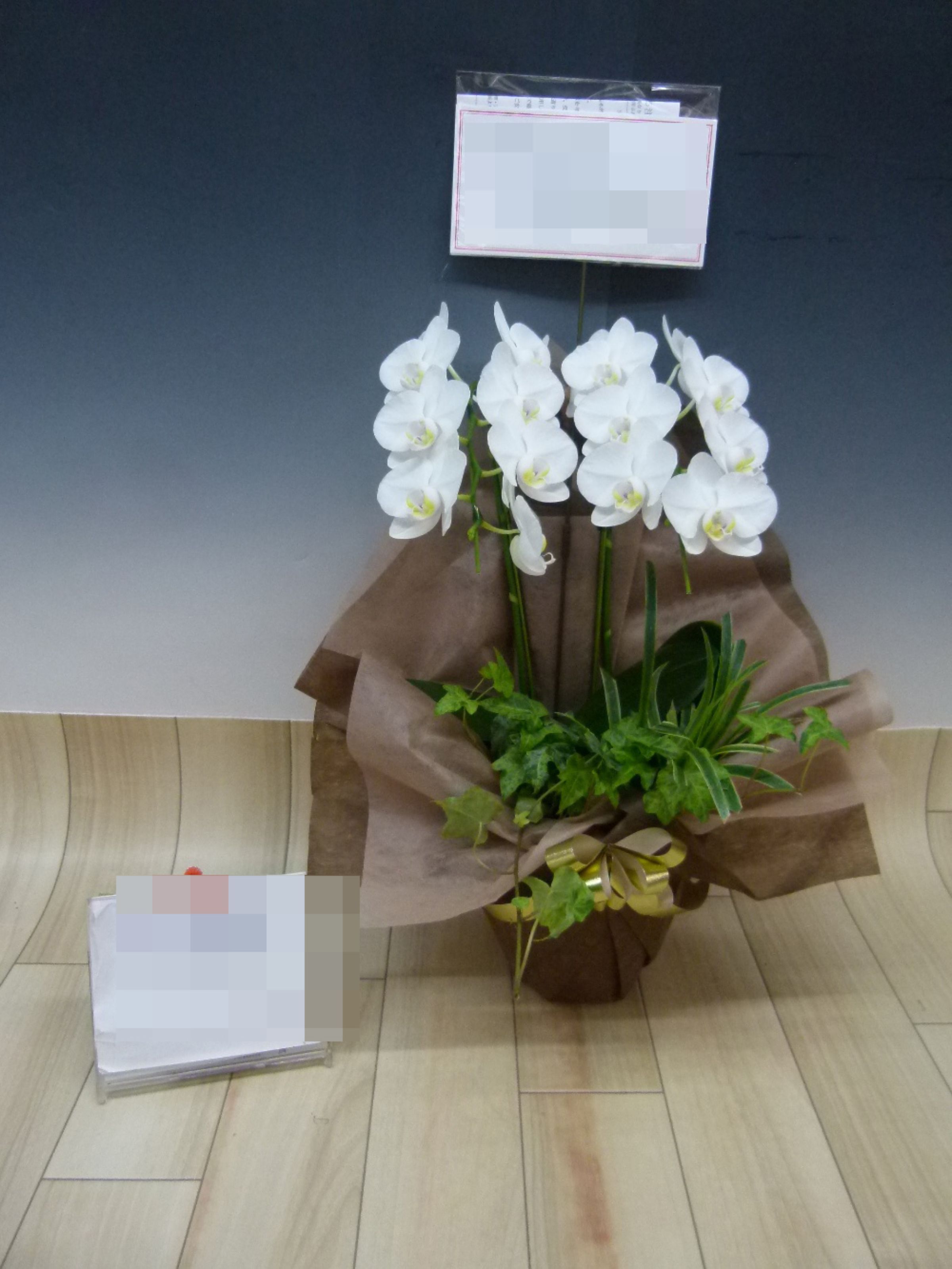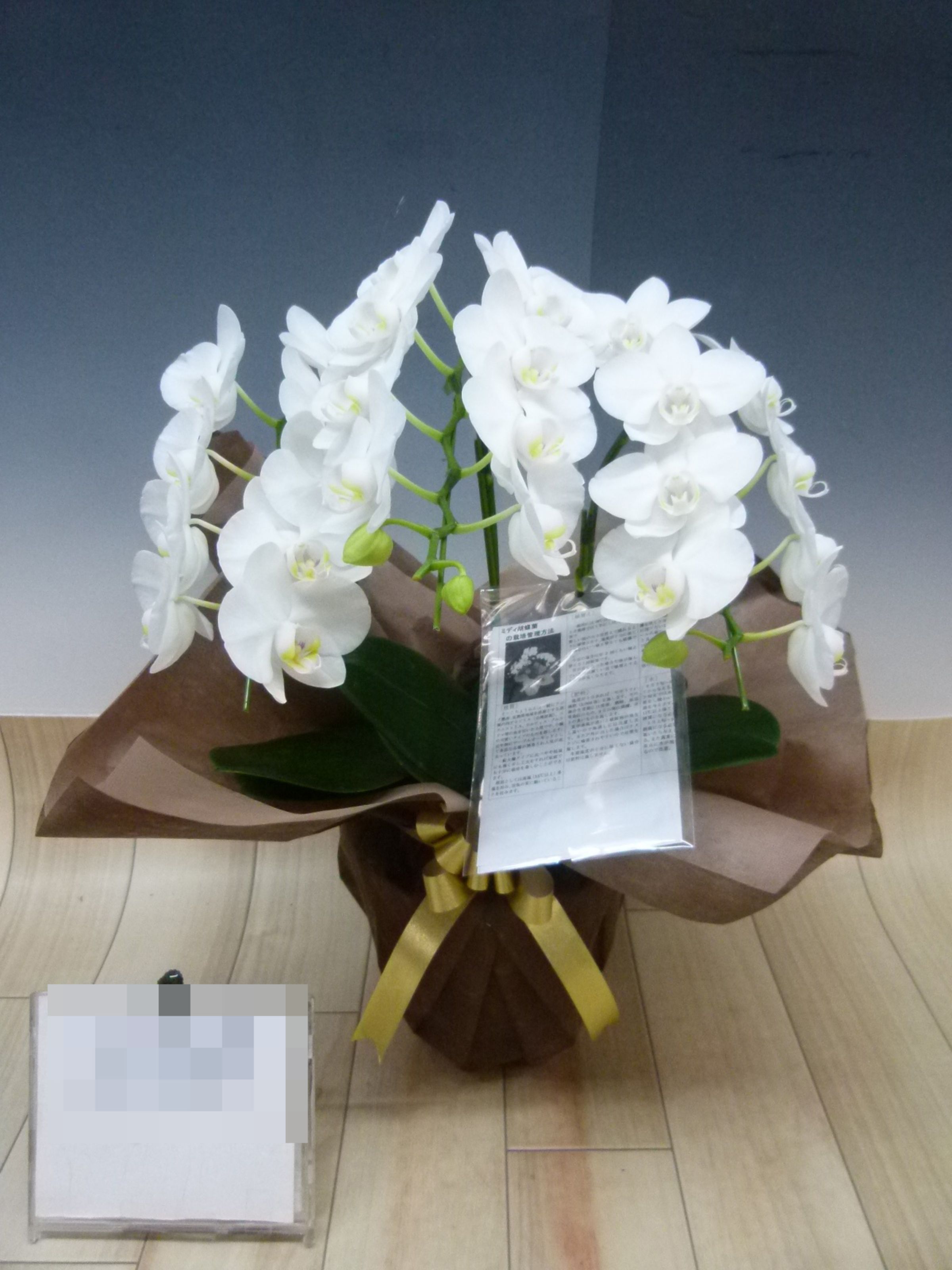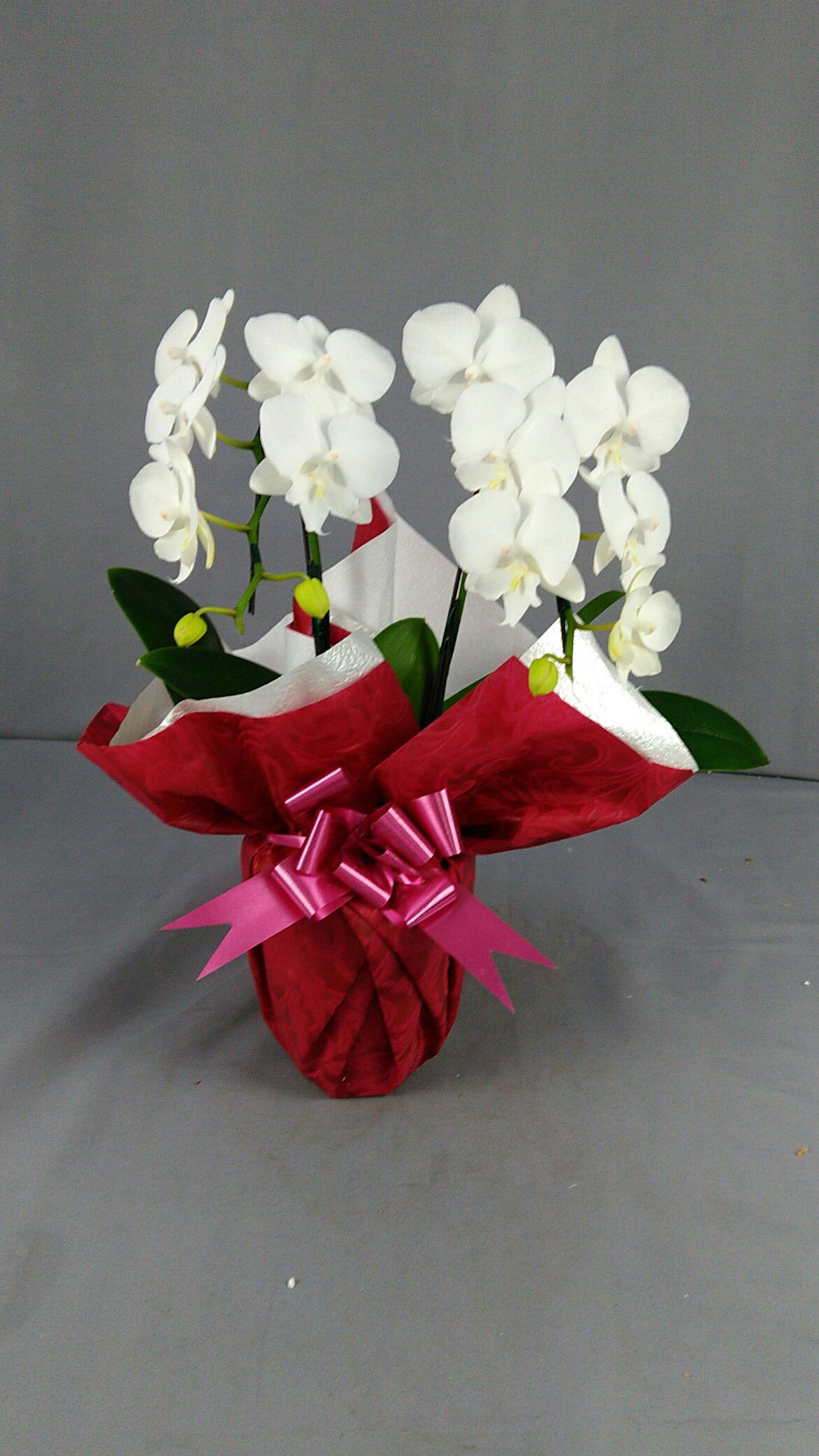 胡蝶蘭の実際にお届けした写真です。花秘書では発送前に写真をメールで送信致しますので安心して大切な顧客や取引様へのギフトにご利用頂けます。