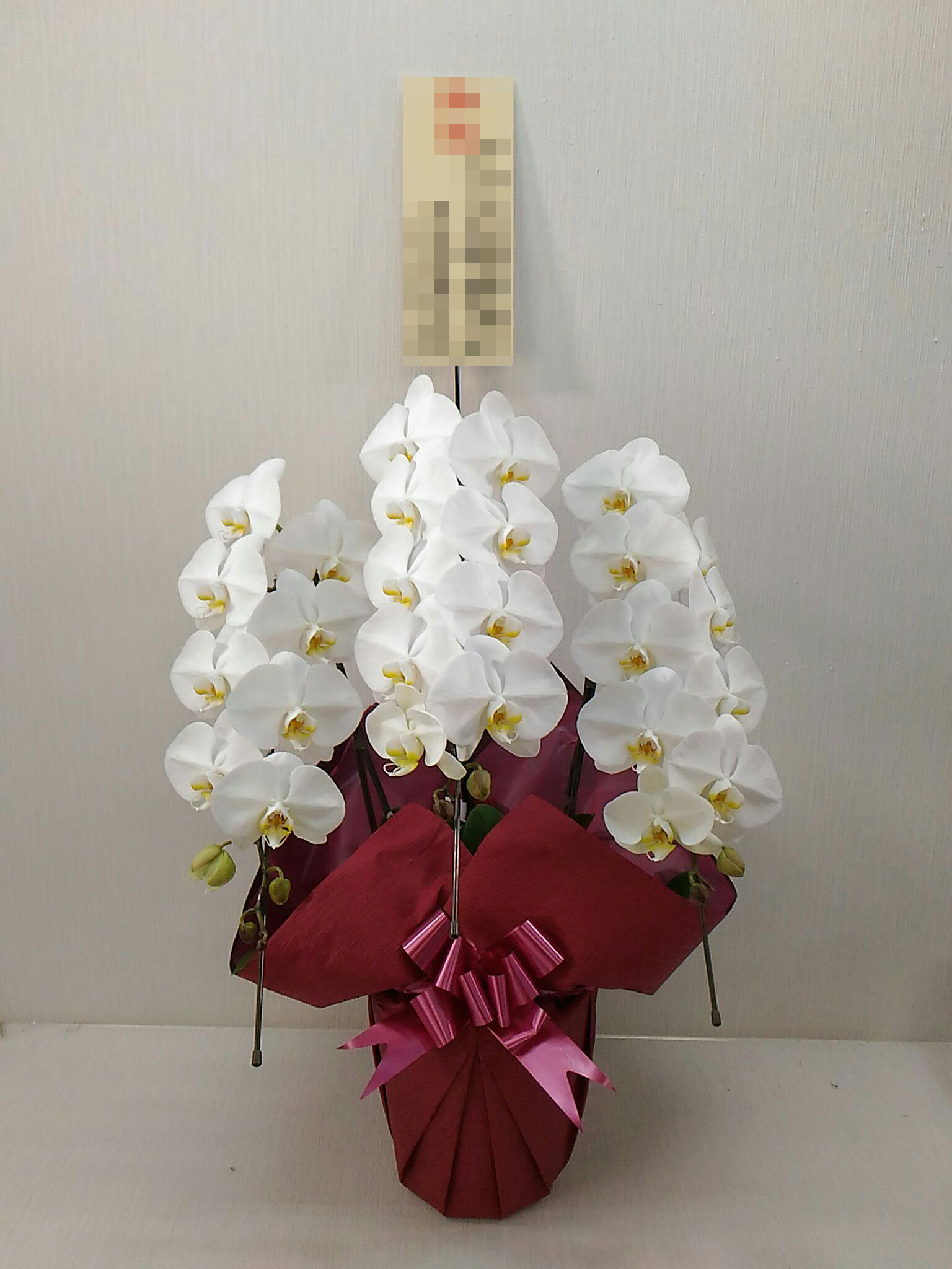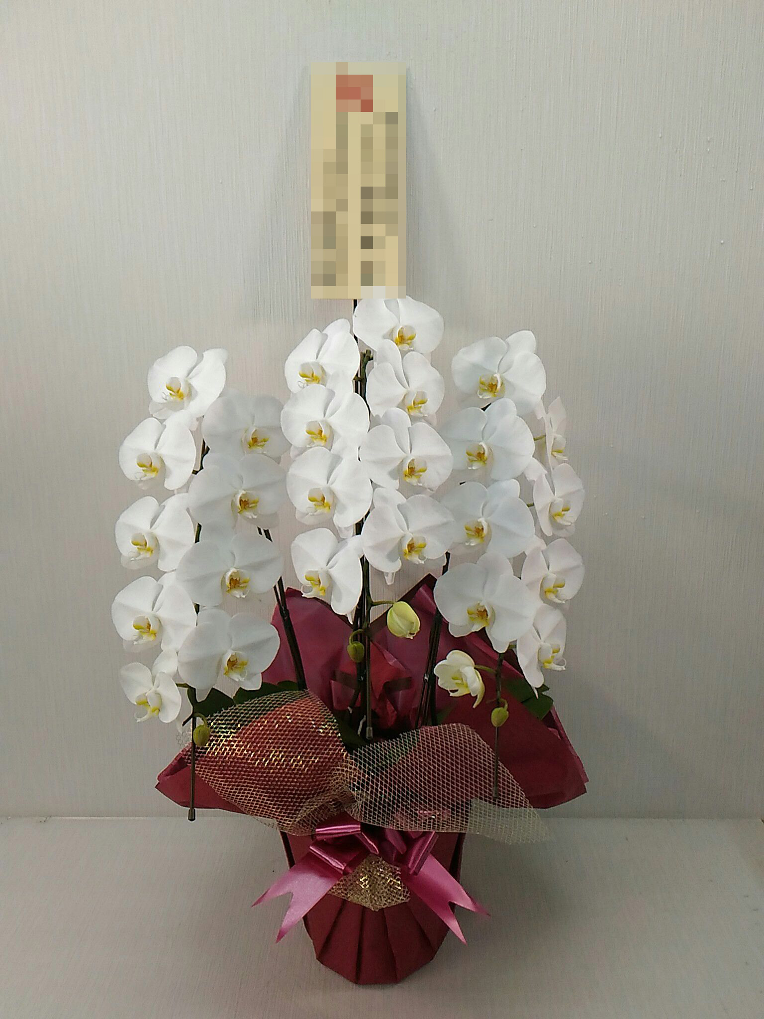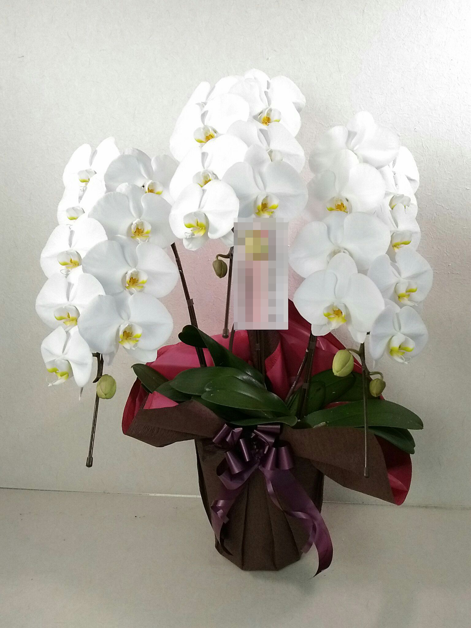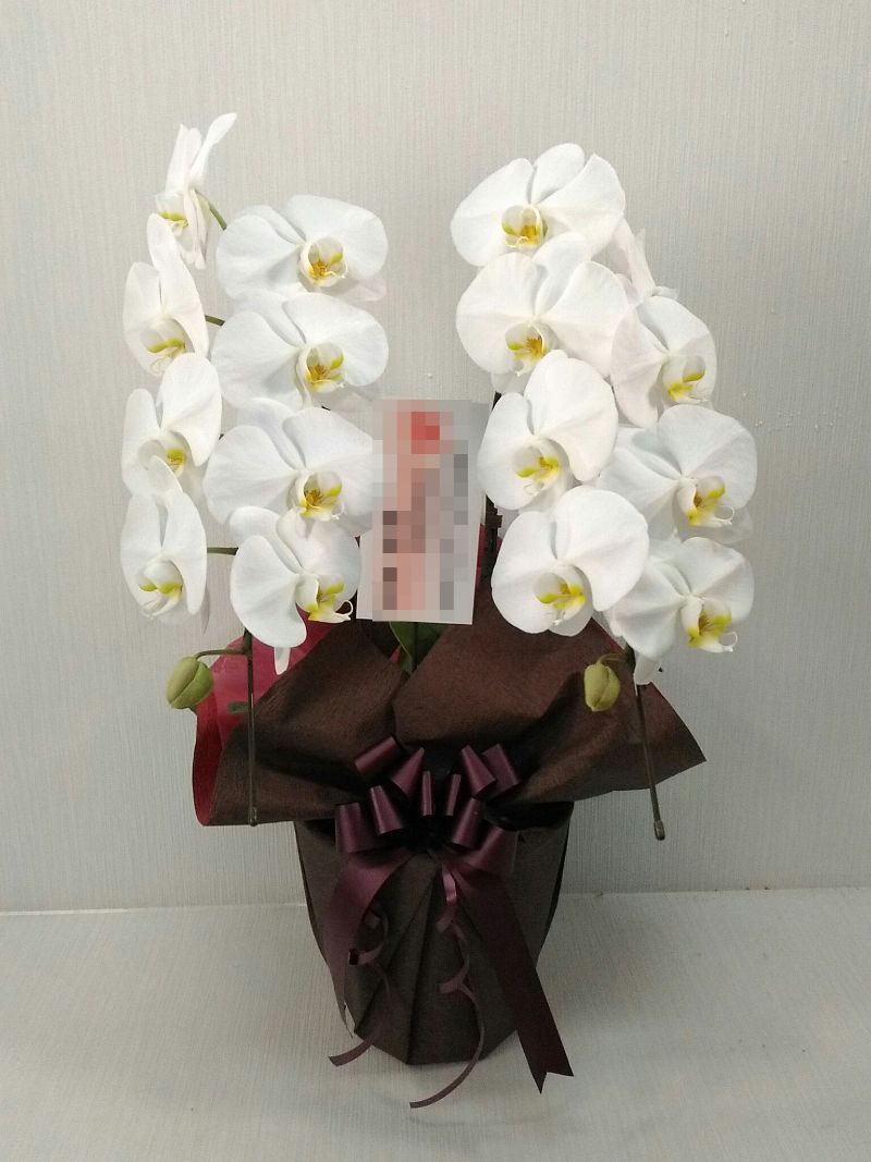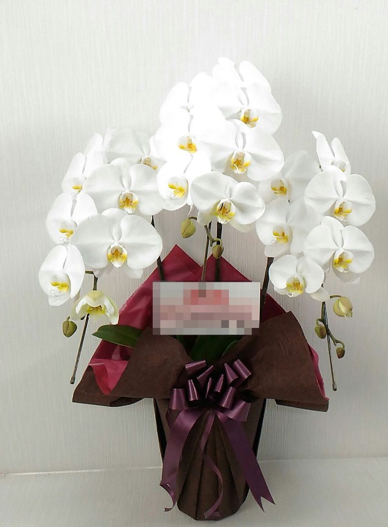 胡蝶蘭の実際にお届けした写真です。花秘書では発送前に写真をメールで送信致しますので安心して大切な顧客や取引様へのギフトにご利用頂けます。
