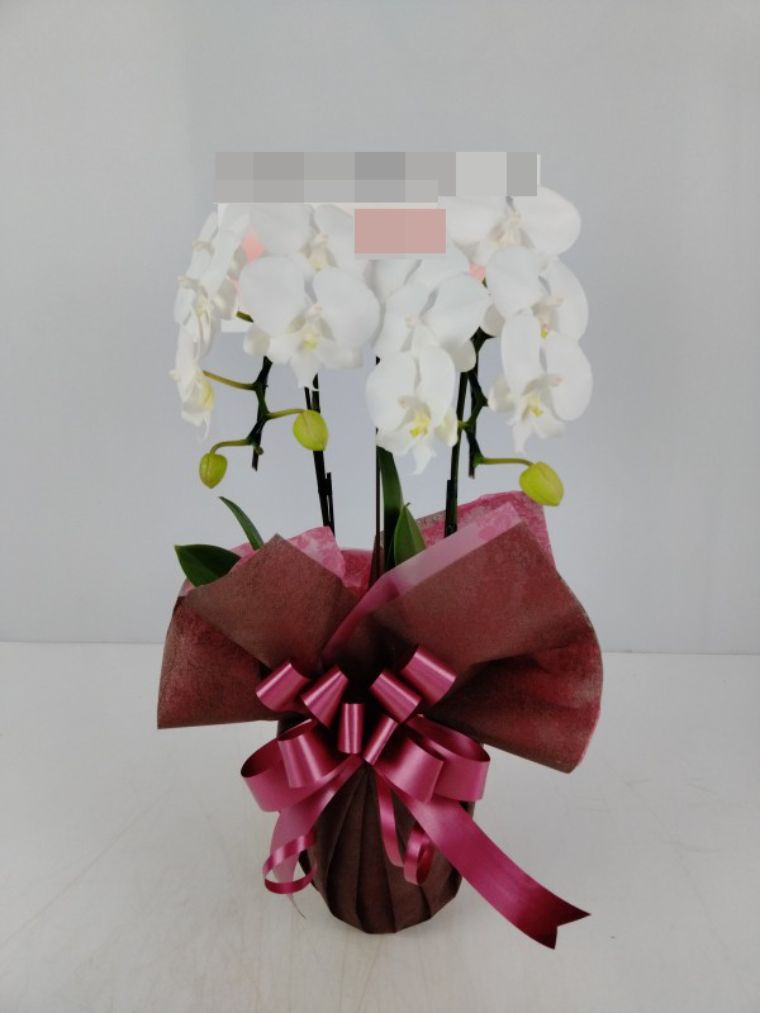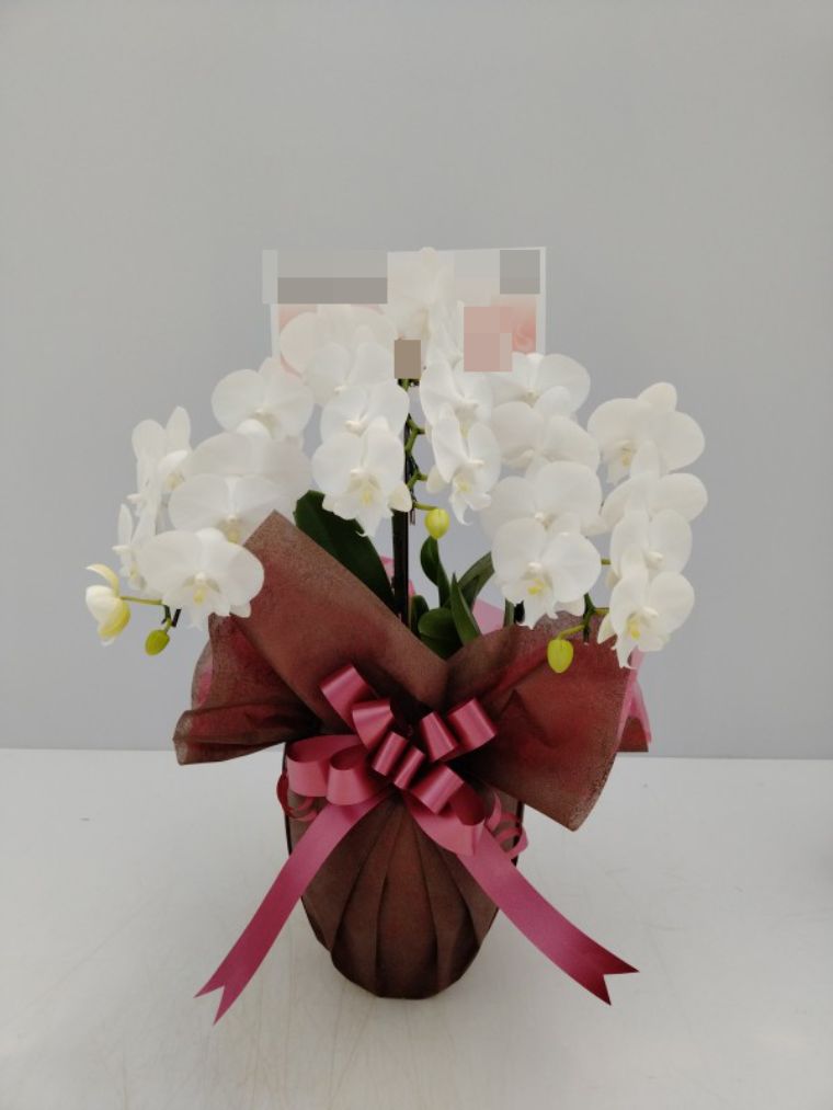 胡蝶蘭の実際にお届けした写真です。花秘書では発送前に写真をメールで送信致しますので安心して大切な顧客や取引様へのギフトにご利用頂けます。
