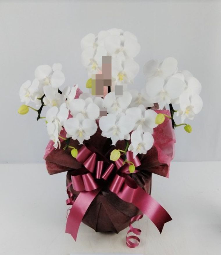 胡蝶蘭の実際にお届けした写真です。花秘書では発送前に写真をメールで送信致しますので安心して大切な顧客や取引様へのギフトにご利用頂けます。