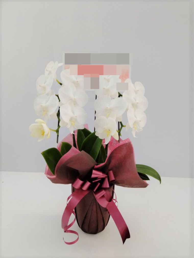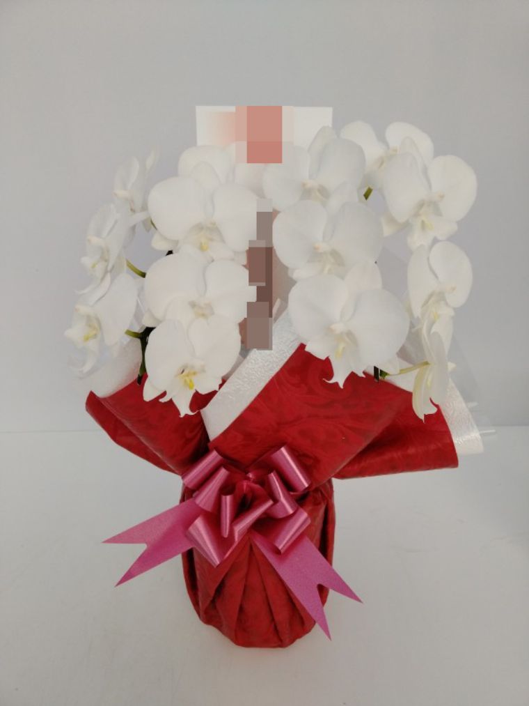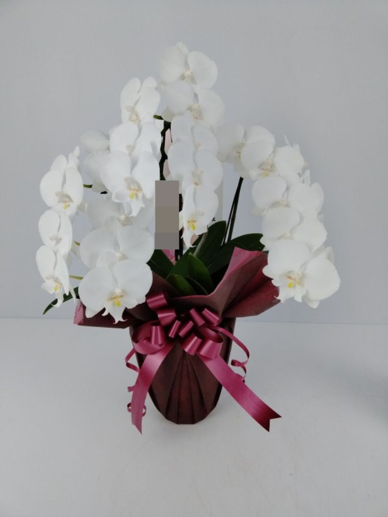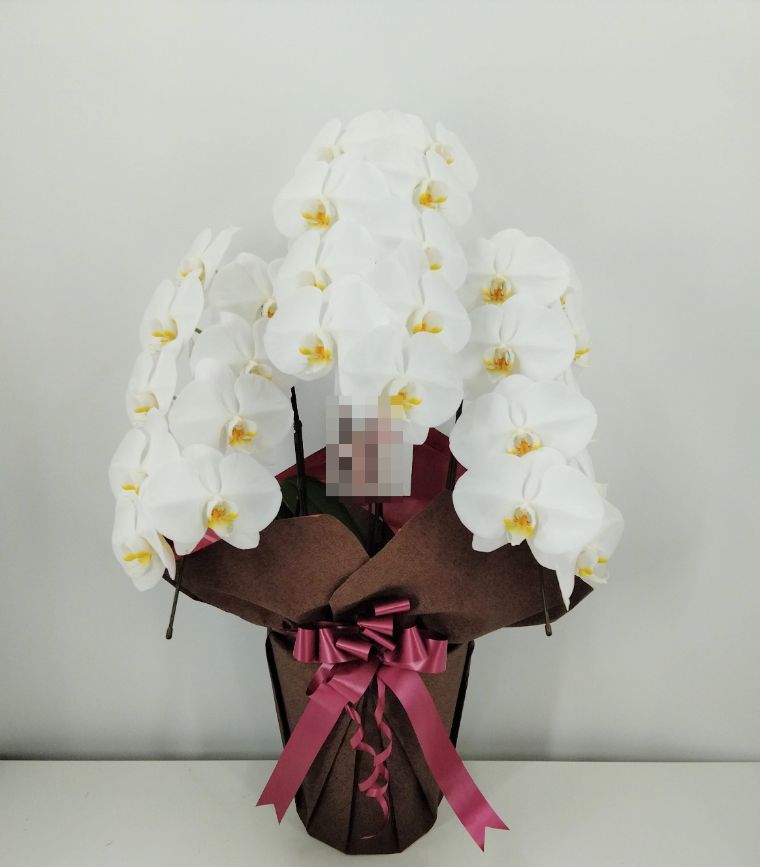 胡蝶蘭の実際にお届けした写真です。花秘書では発送前に写真をメールで送信致しますので安心して大切な顧客や取引様へのギフトにご利用頂けます。