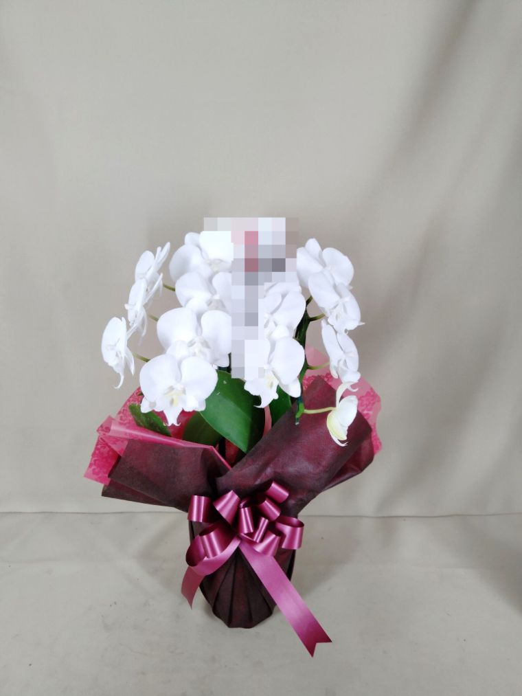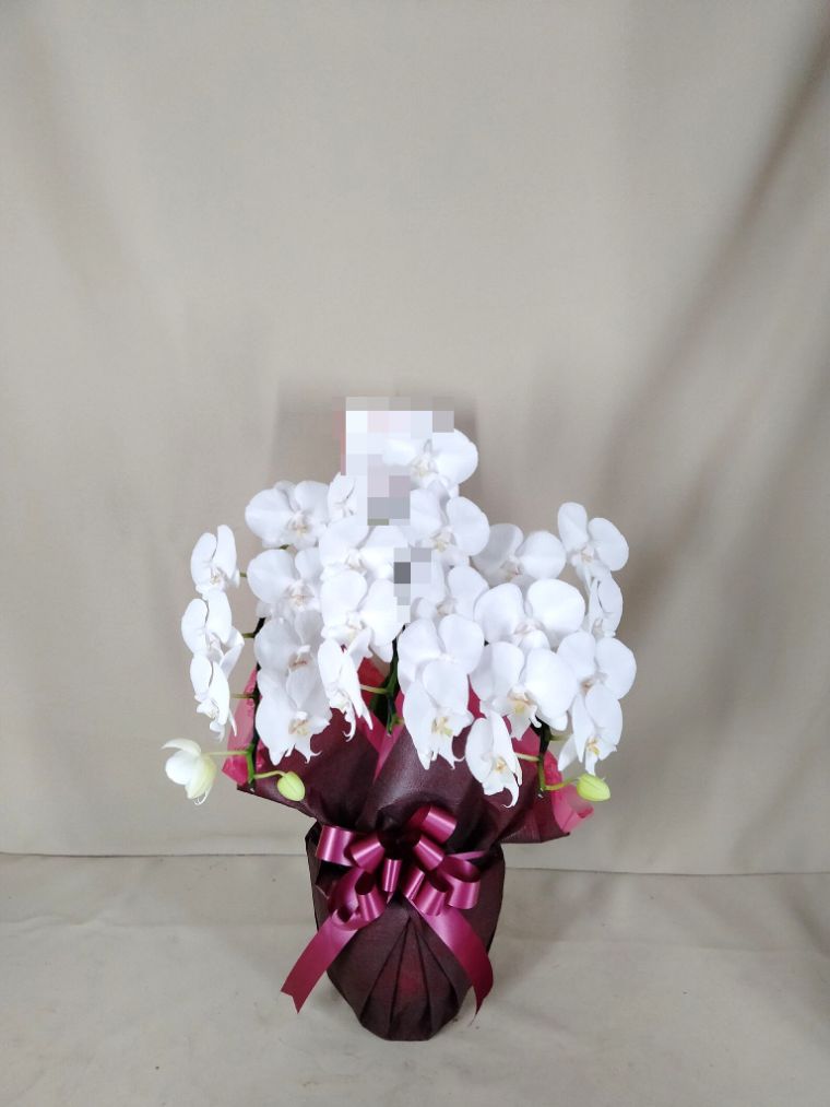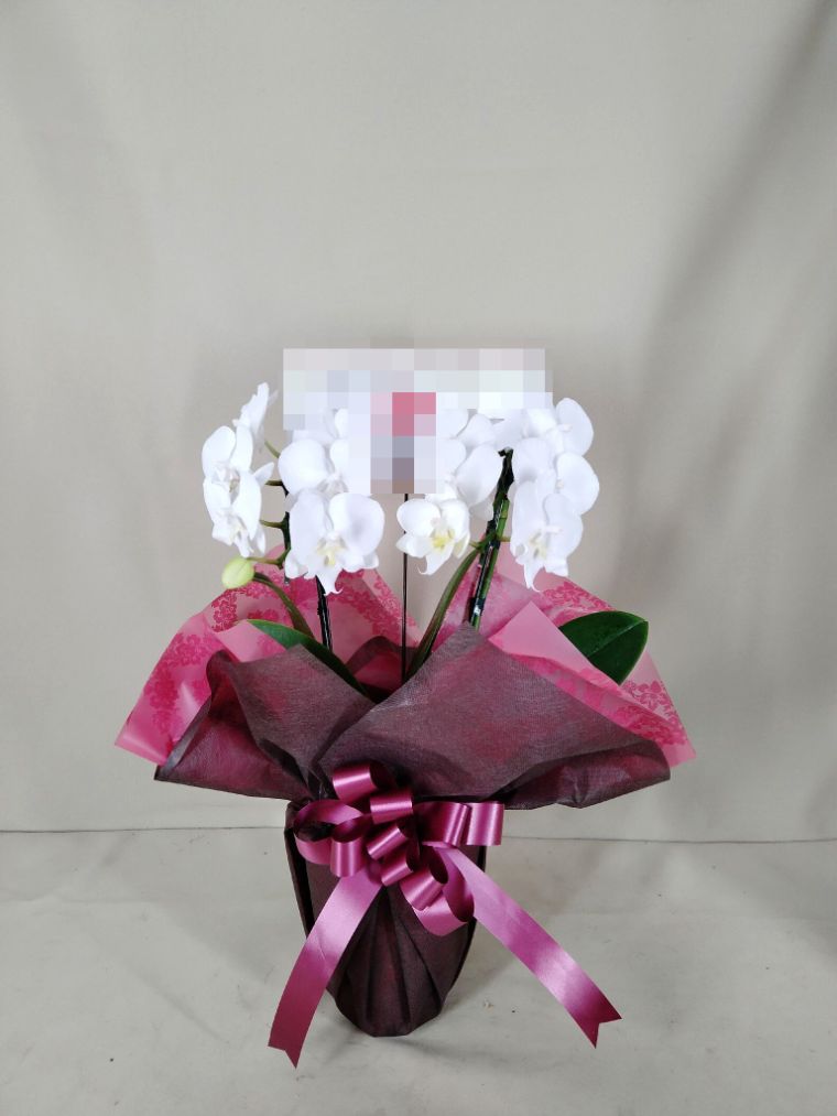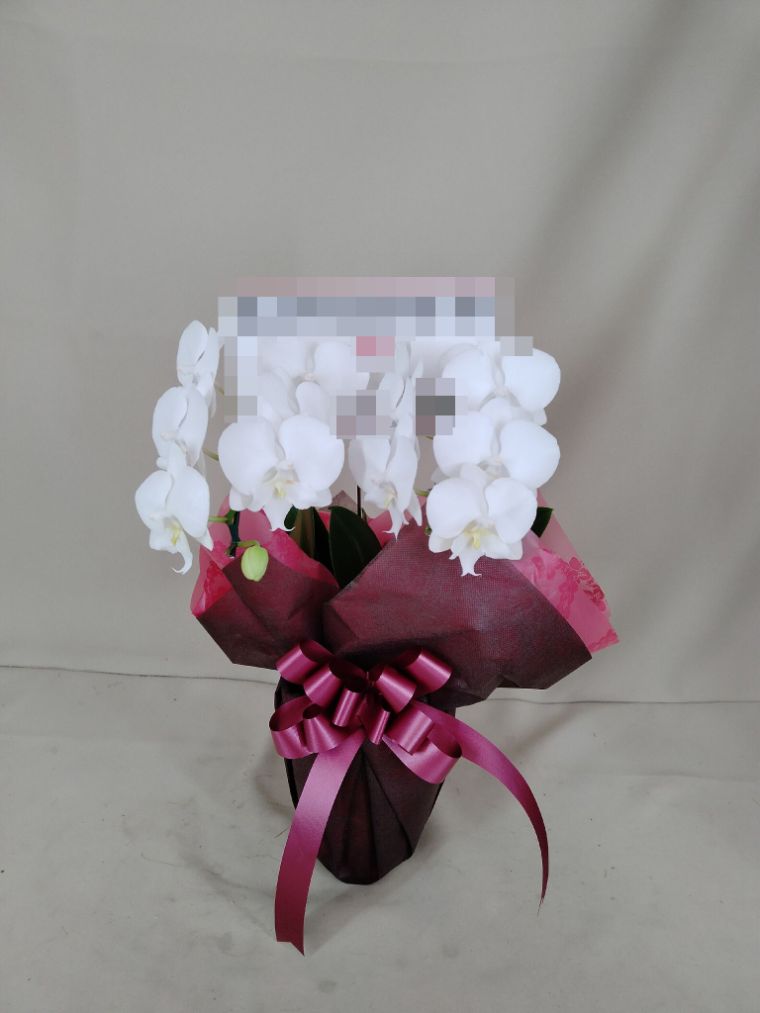 胡蝶蘭の実際にお届けした写真です。花秘書では発送前に写真をメールで送信致しますので安心して大切な顧客や取引様へのギフトにご利用頂けます。