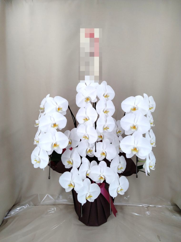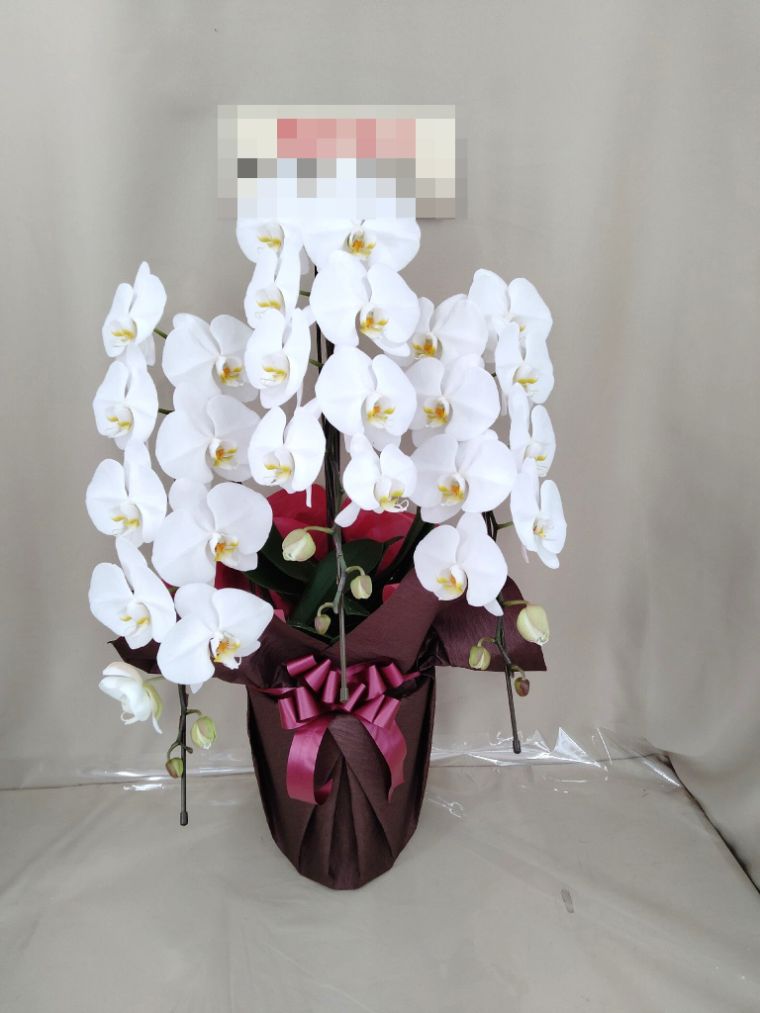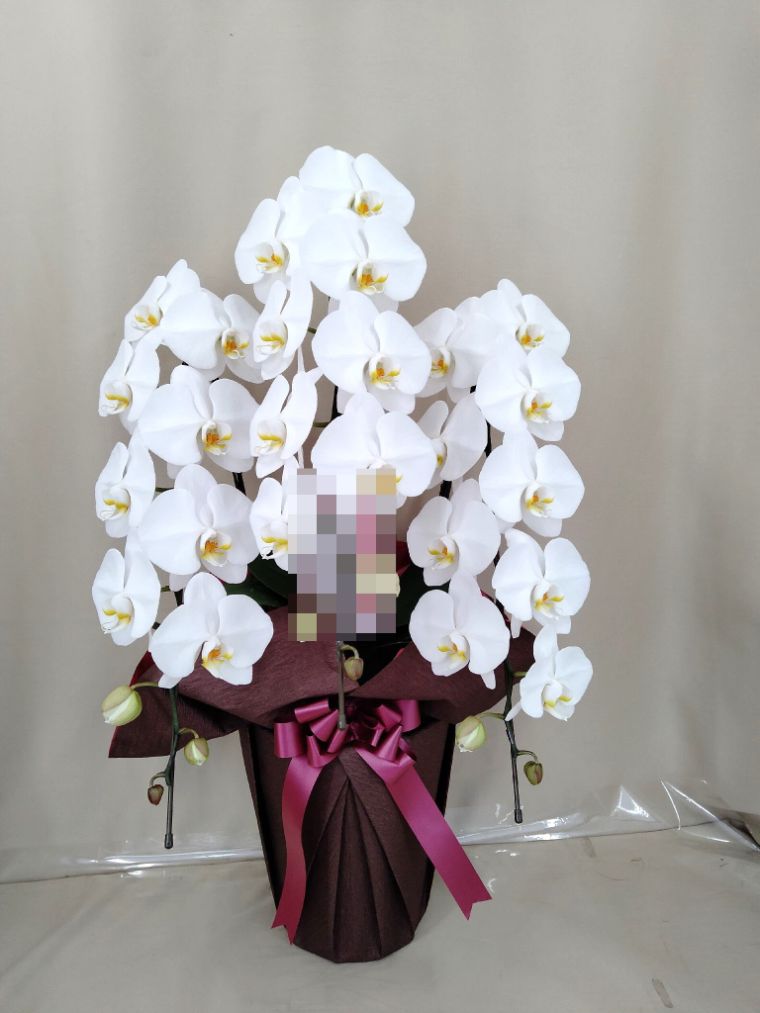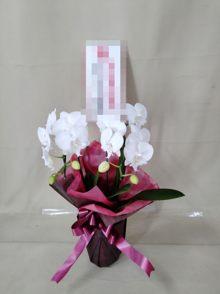 胡蝶蘭の実際にお届けした写真です。花秘書では発送前に写真をメールで送信致しますので安心して大切な顧客や取引様へのギフトにご利用頂けます。