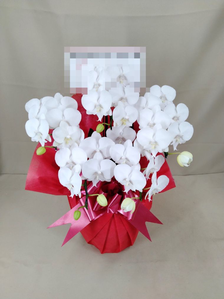 胡蝶蘭の実際にお届けした写真です。花秘書では発送前に写真をメールで送信致しますので安心して大切な顧客や取引様へのギフトにご利用頂けます。