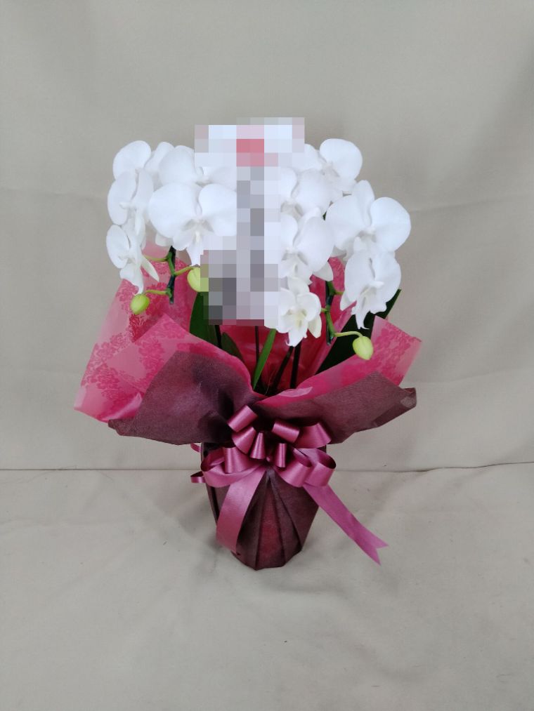 胡蝶蘭の実際にお届けした写真です。花秘書では発送前に写真をメールで送信致しますので安心して大切な顧客や取引様へのギフトにご利用頂けます。