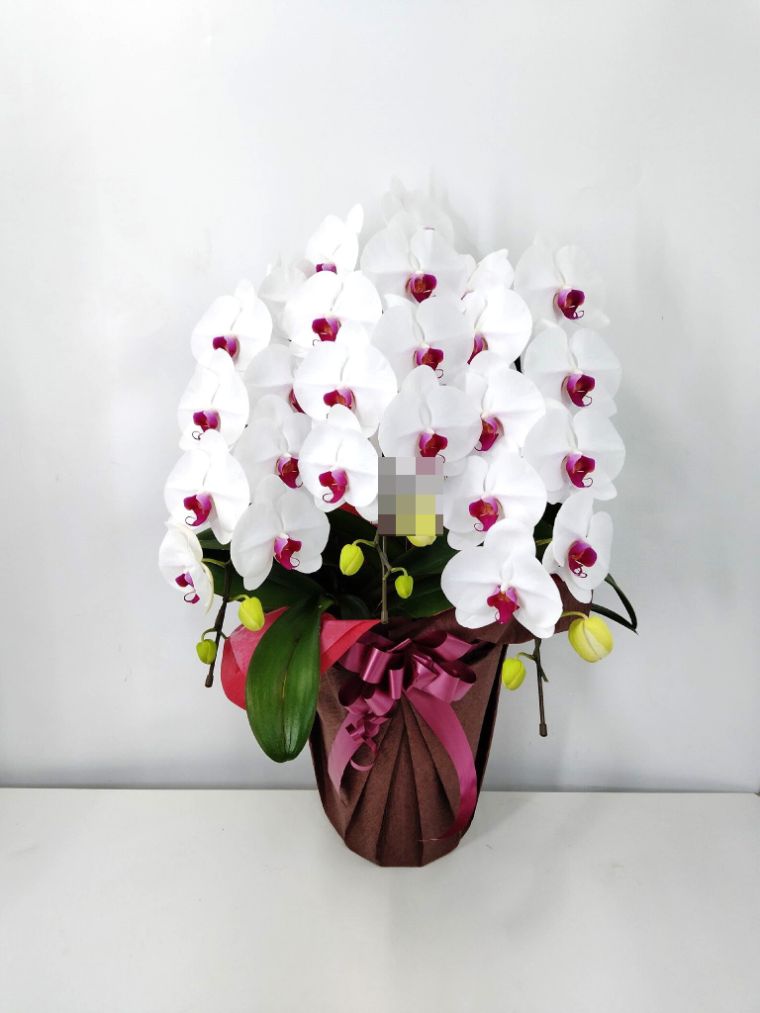 胡蝶蘭の実際にお届けした写真です。花秘書では発送前に写真をメールで送信致しますので安心して大切な顧客や取引様へのギフトにご利用頂けます。