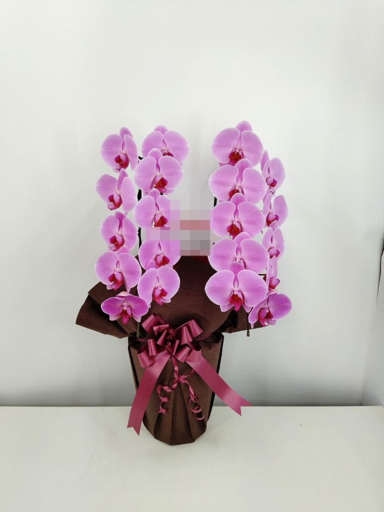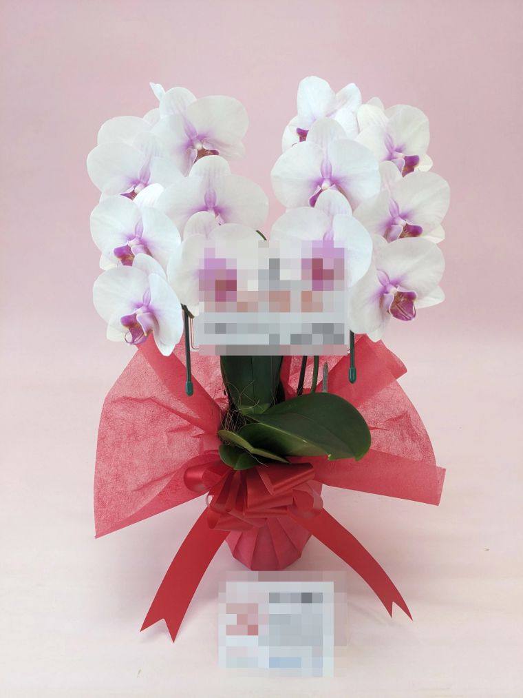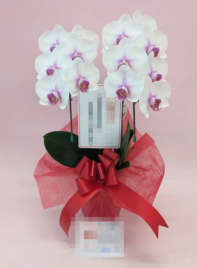 胡蝶蘭の実際にお届けした写真です。花秘書では発送前に写真をメールで送信致しますので安心して大切な顧客や取引様へのギフトにご利用頂けます。