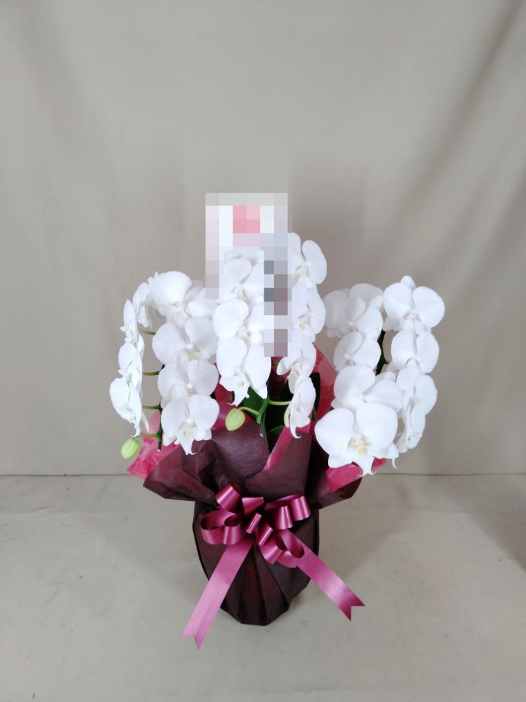 胡蝶蘭の実際にお届けした写真です。花秘書では発送前に写真をメールで送信致しますので安心して大切な顧客や取引様へのギフトにご利用頂けます。