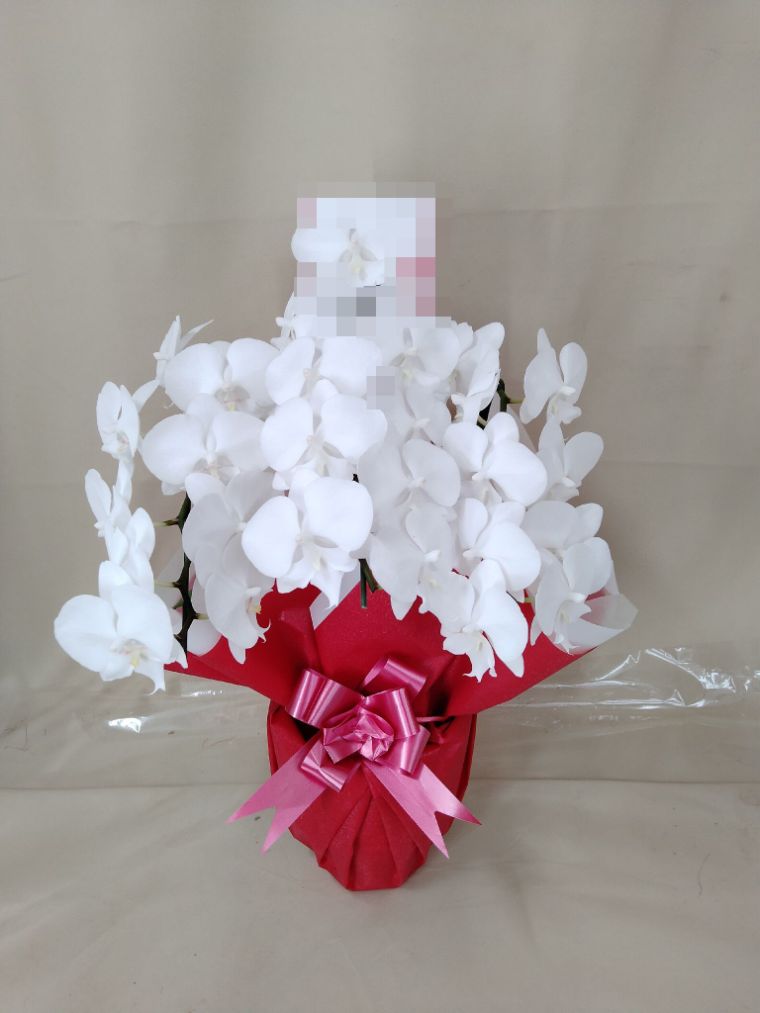 胡蝶蘭の実際にお届けした写真です。花秘書では発送前に写真をメールで送信致しますので安心して大切な顧客や取引様へのギフトにご利用頂けます。