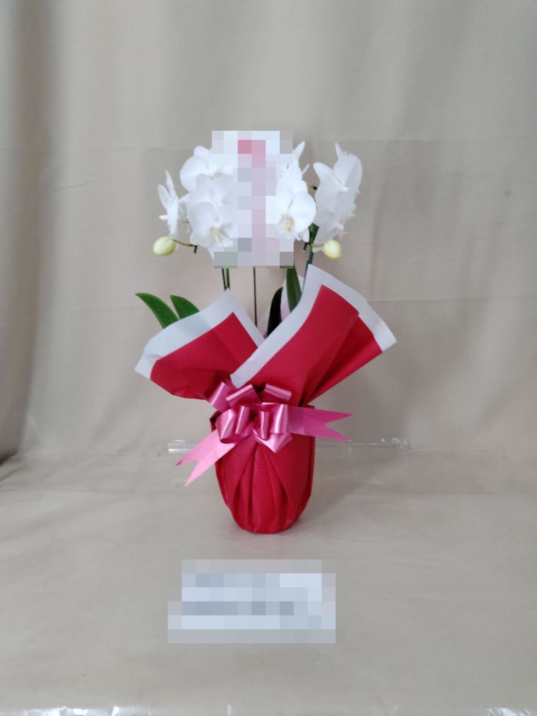 胡蝶蘭の実際にお届けした写真です。花秘書では発送前に写真をメールで送信致しますので安心して大切な顧客や取引様へのギフトにご利用頂けます。