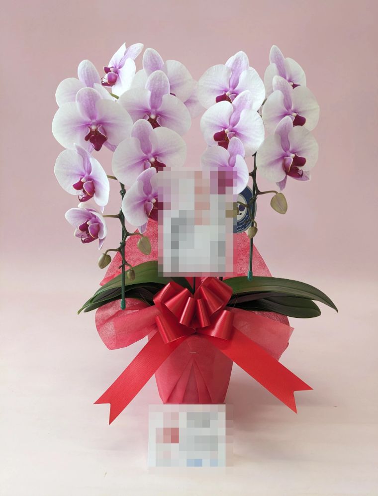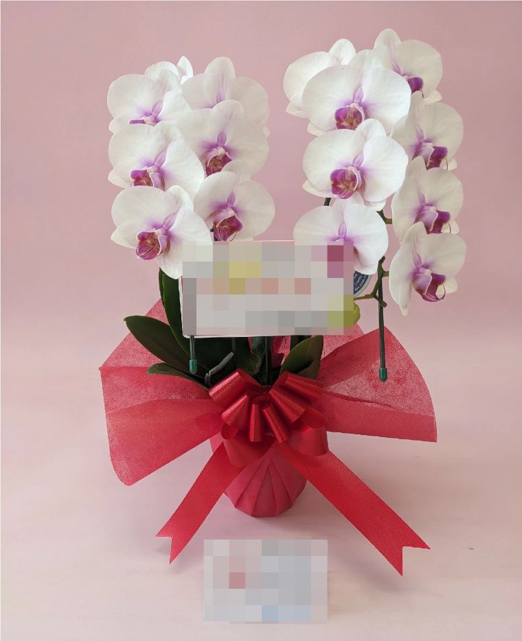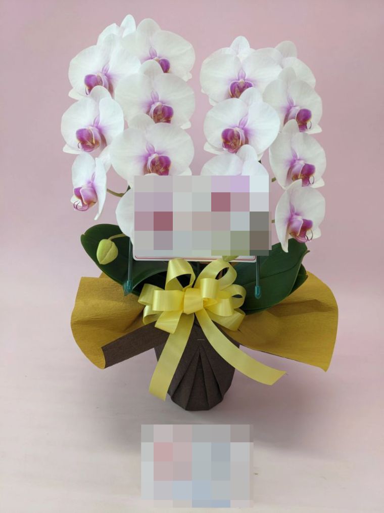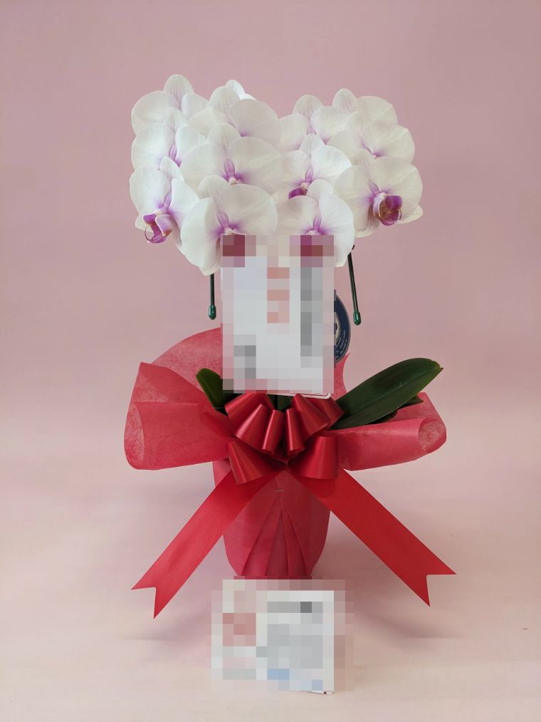 胡蝶蘭の実際にお届けした写真です。花秘書では発送前に写真をメールで送信致しますので安心して大切な顧客や取引様へのギフトにご利用頂けます。