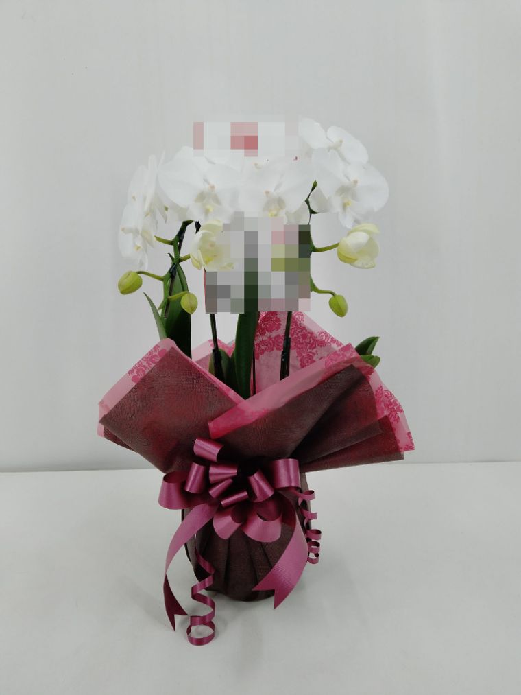 胡蝶蘭の実際にお届けした写真です。花秘書では発送前に写真をメールで送信致しますので安心して大切な顧客や取引様へのギフトにご利用頂けます。