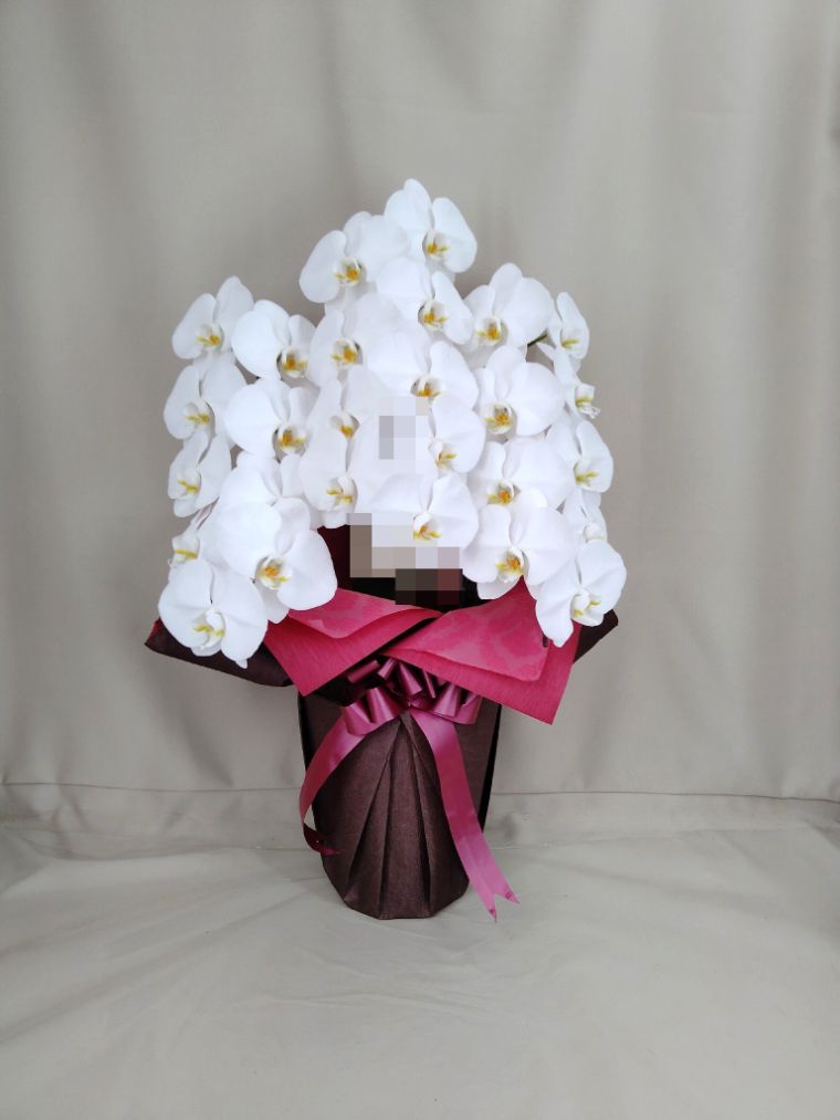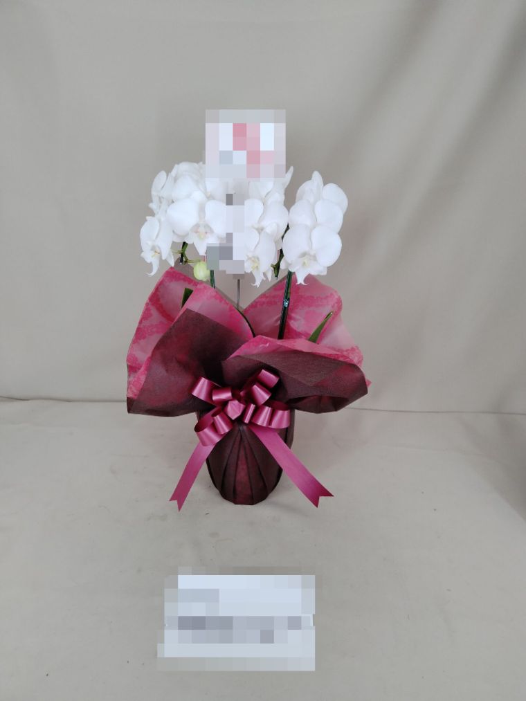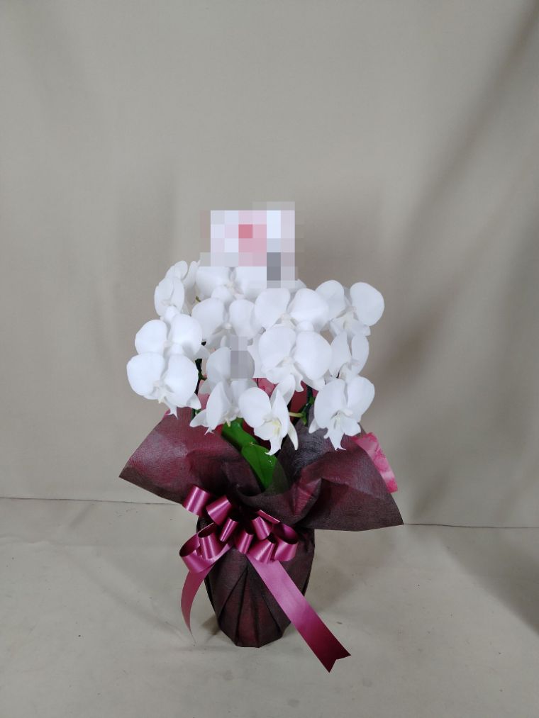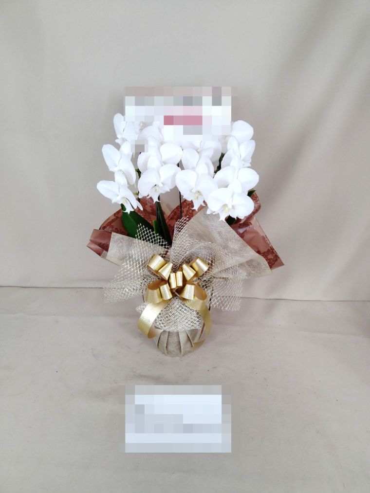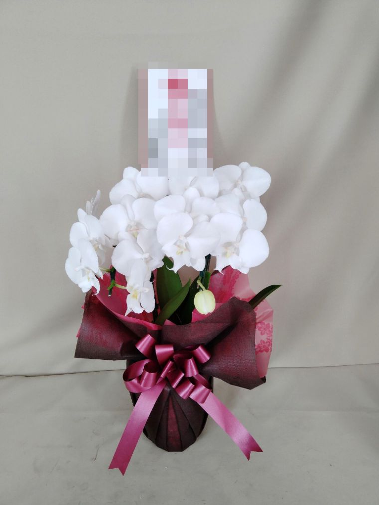 胡蝶蘭の実際にお届けした写真です。花秘書では発送前に写真をメールで送信致しますので安心して大切な顧客や取引様へのギフトにご利用頂けます。