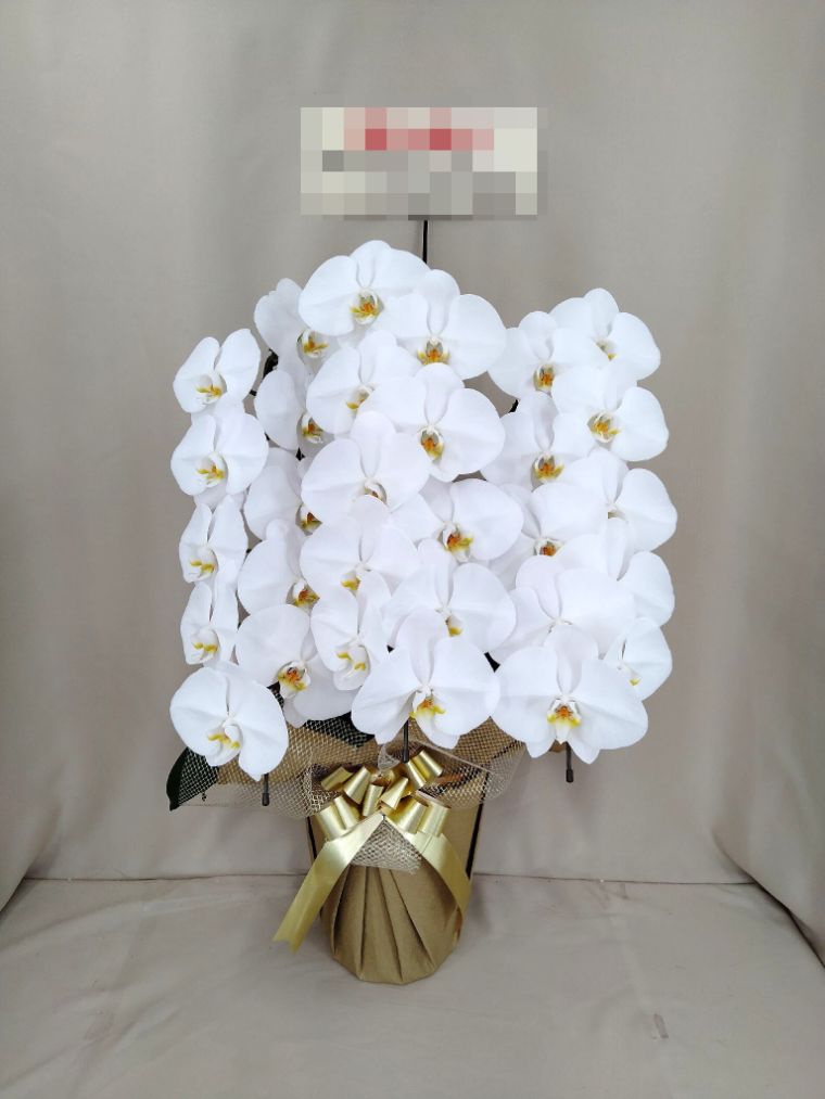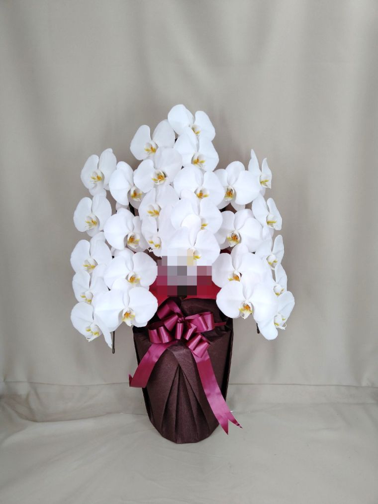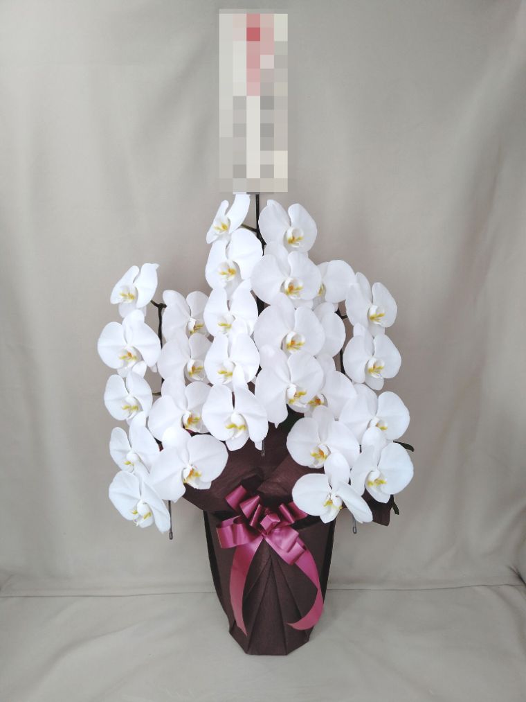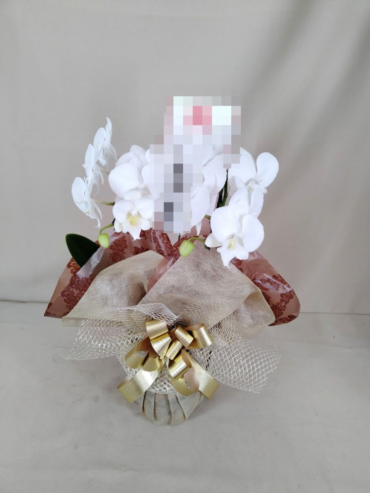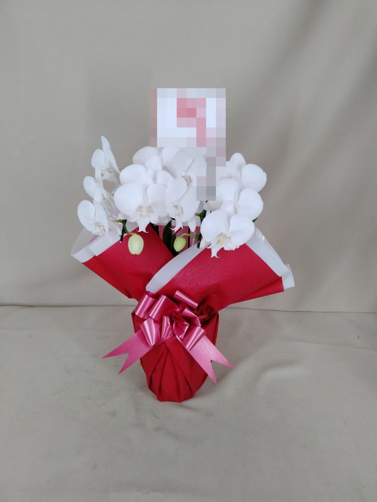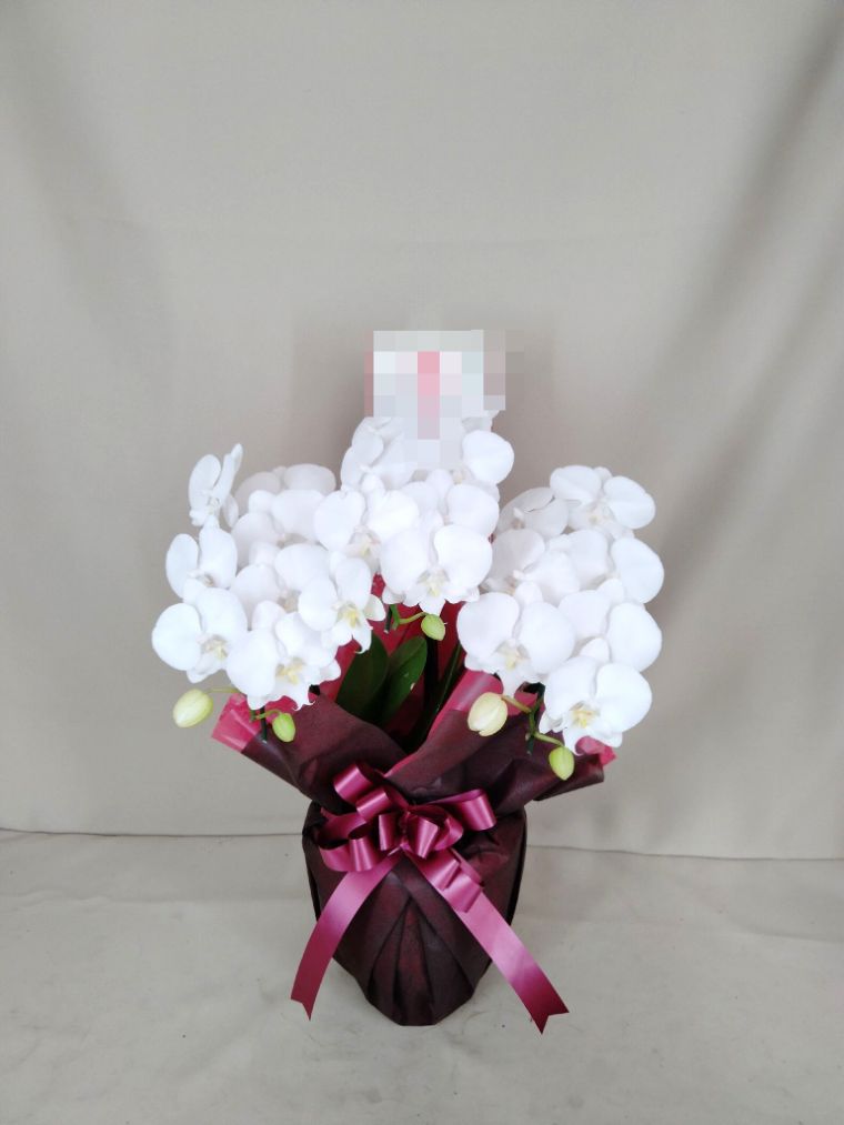 胡蝶蘭の実際にお届けした写真です。花秘書では発送前に写真をメールで送信致しますので安心して大切な顧客や取引様へのギフトにご利用頂けます。