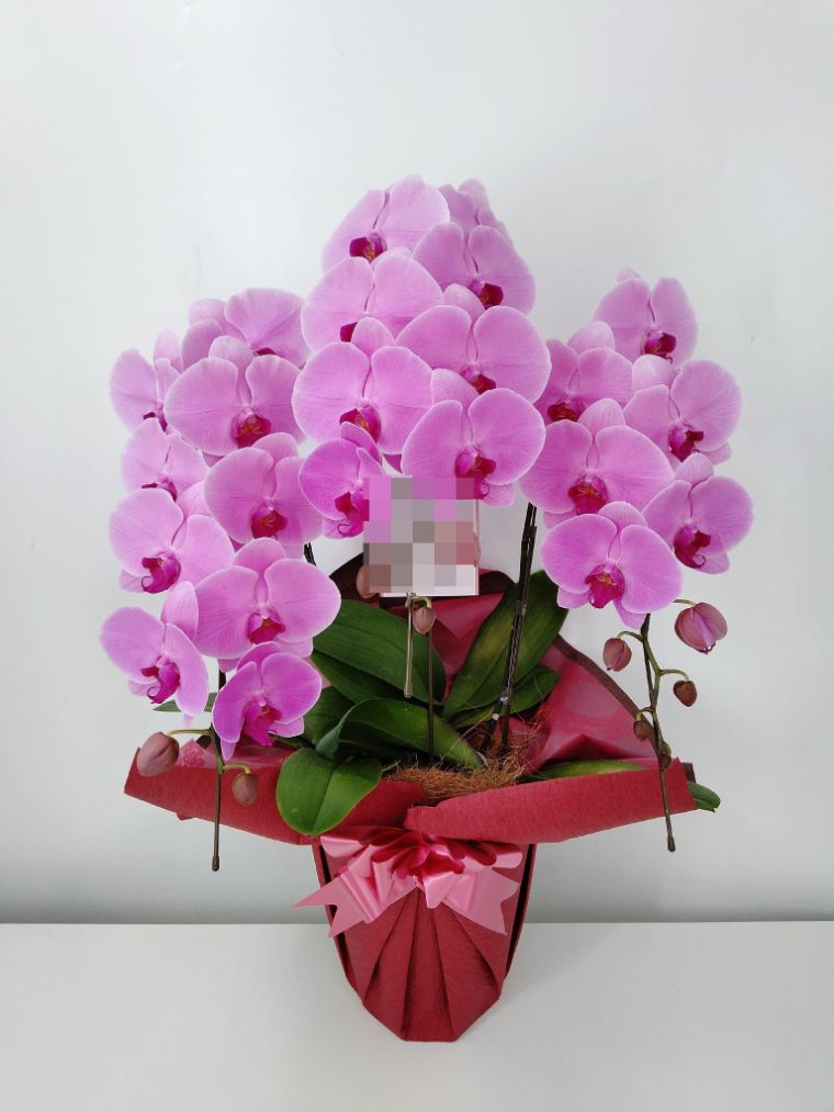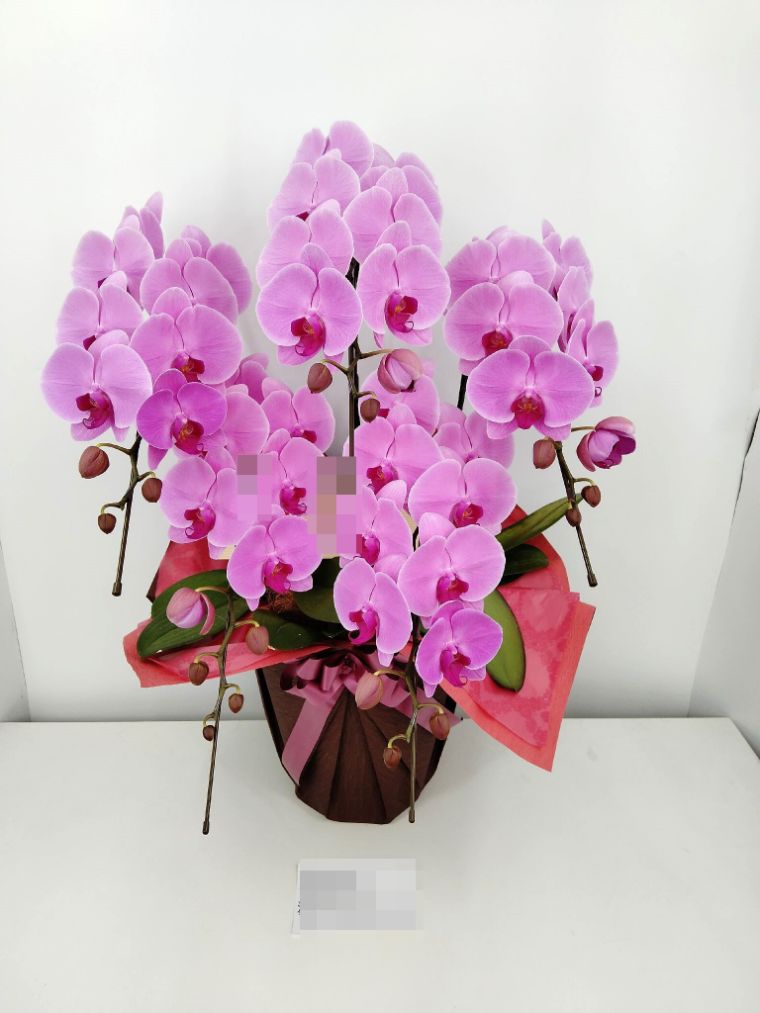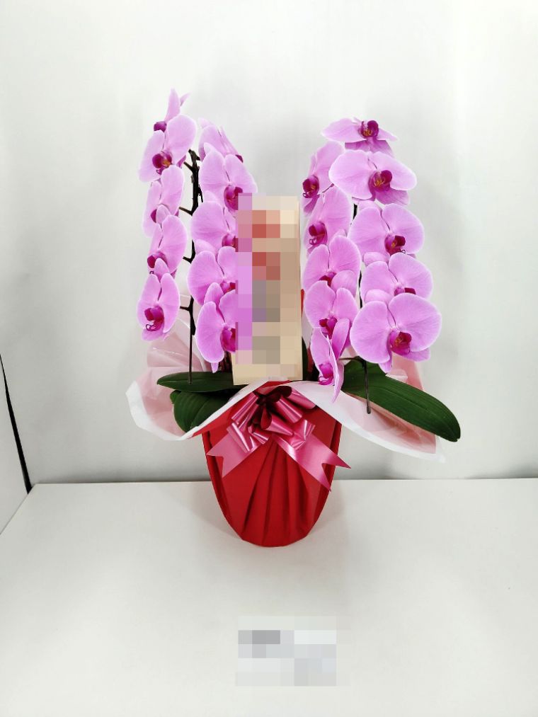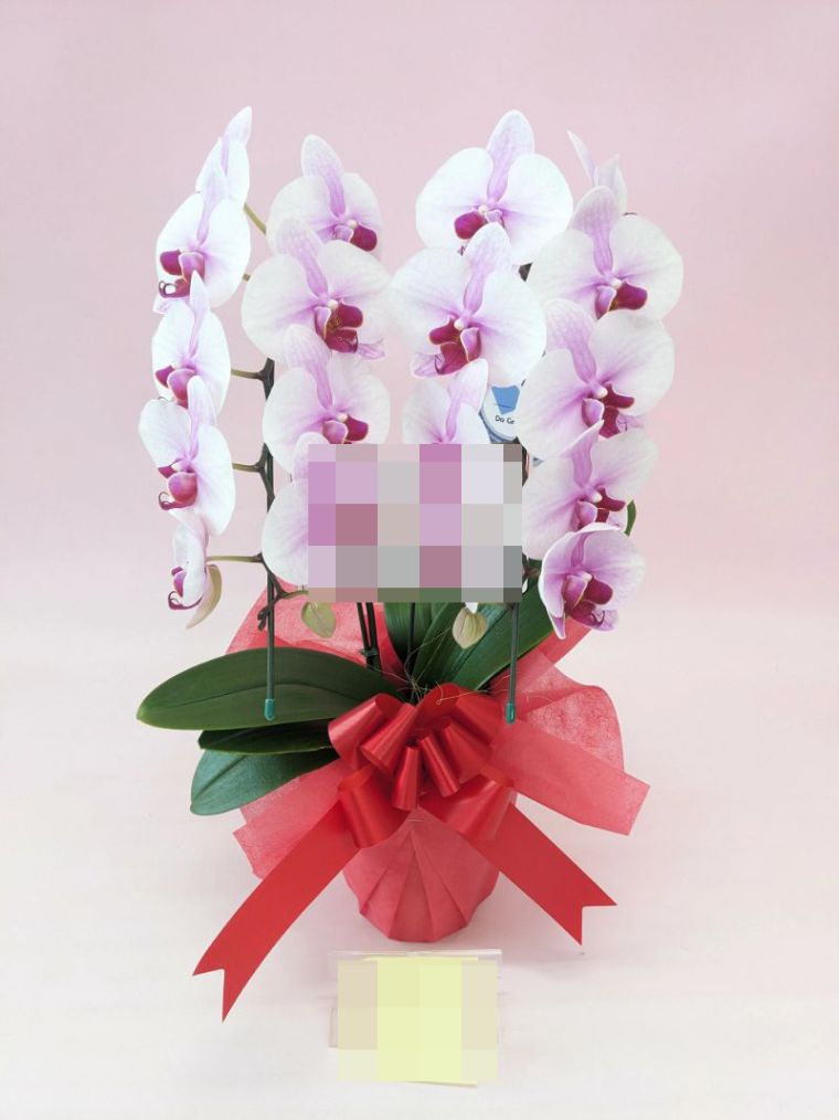 胡蝶蘭の実際にお届けした写真です。花秘書では発送前に写真をメールで送信致しますので安心して大切な顧客や取引様へのギフトにご利用頂けます。