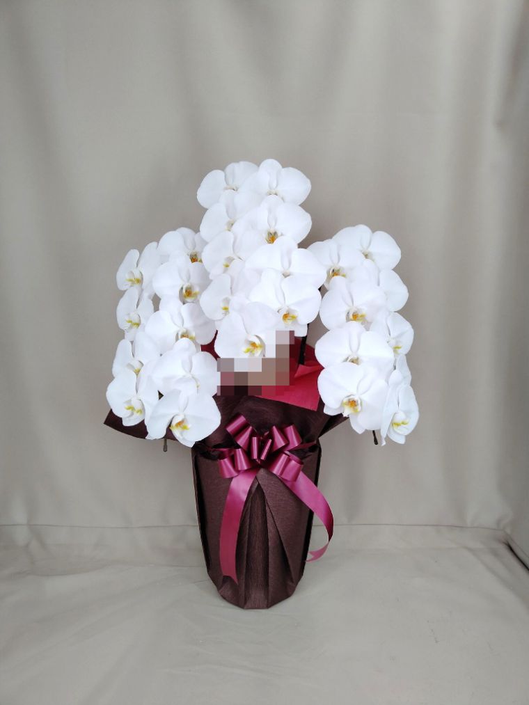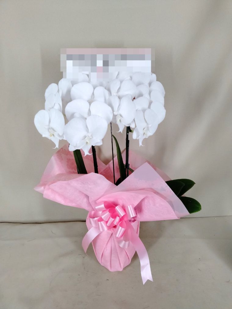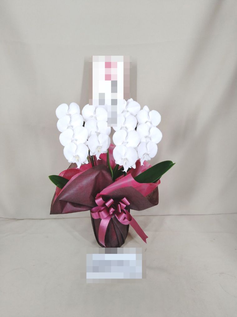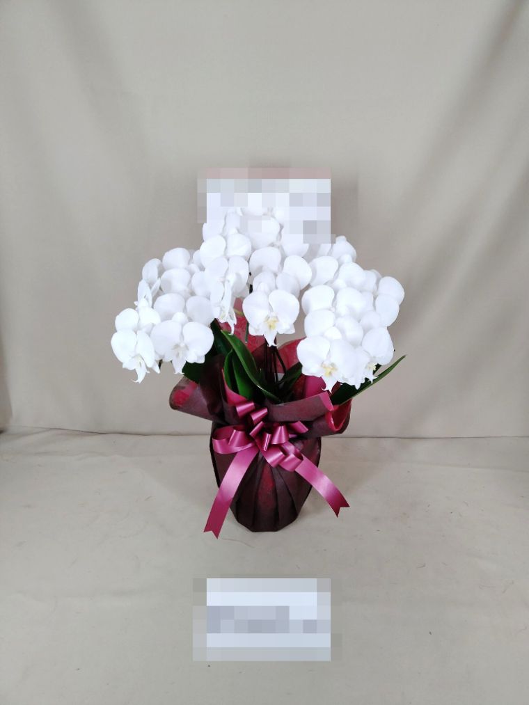 胡蝶蘭の実際にお届けした写真です。花秘書では発送前に写真をメールで送信致しますので安心して大切な顧客や取引様へのギフトにご利用頂けます。
