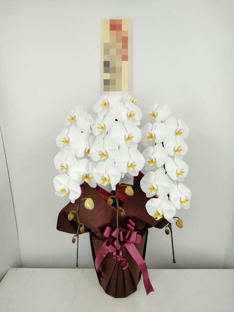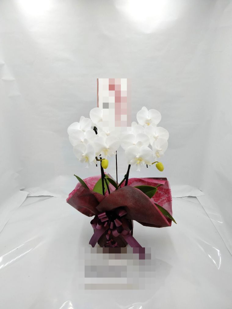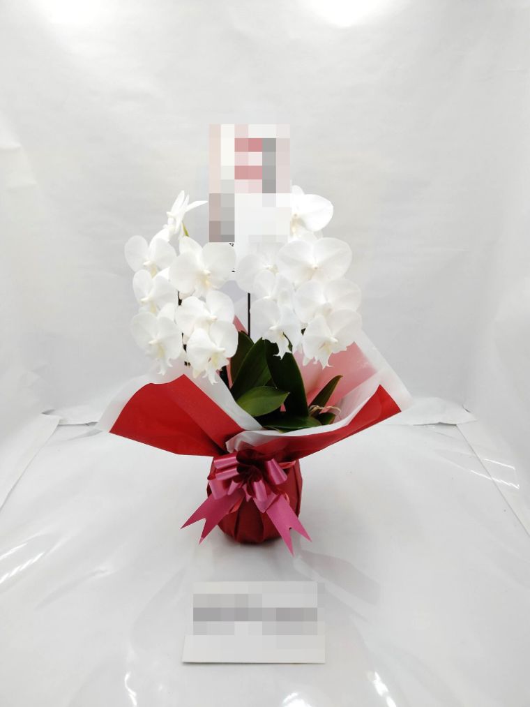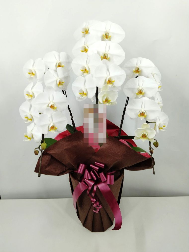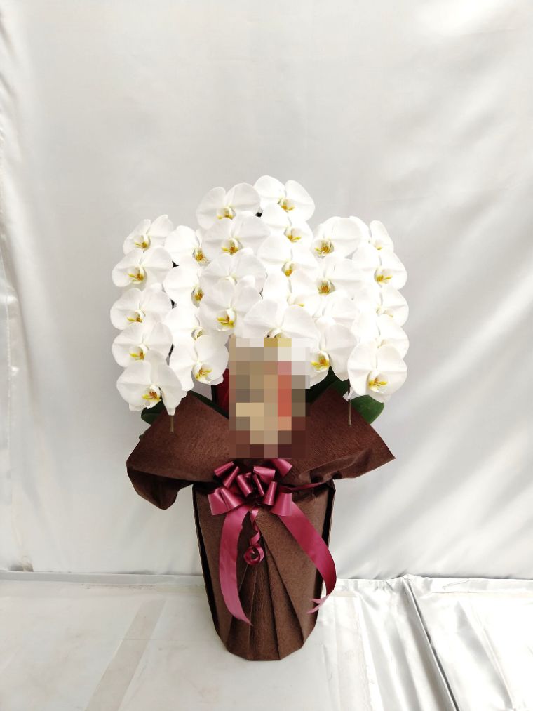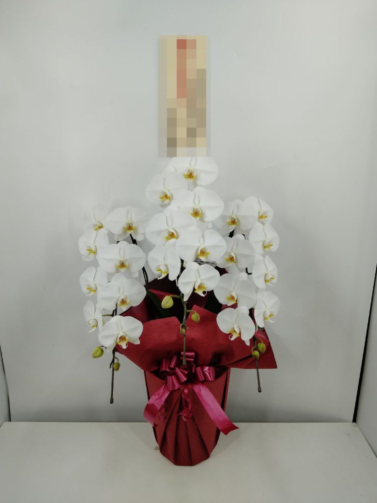 胡蝶蘭の実際にお届けした写真です。花秘書では発送前に写真をメールで送信致しますので安心して大切な顧客や取引様へのギフトにご利用頂けます。