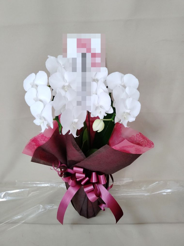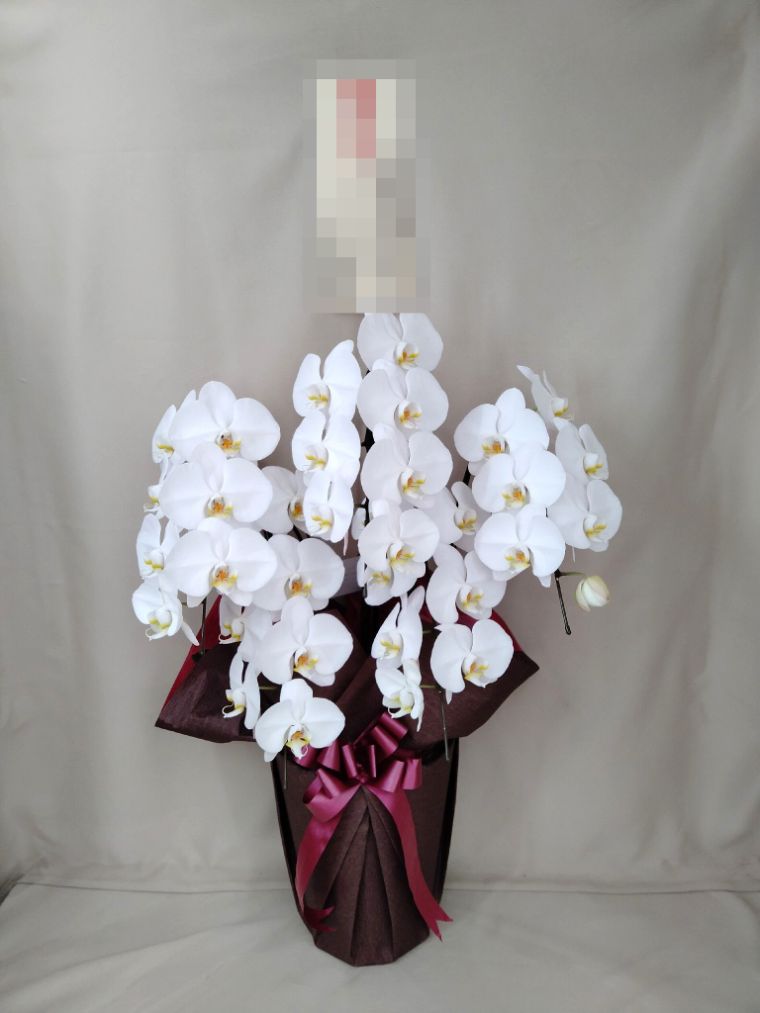 胡蝶蘭の実際にお届けした写真です。花秘書では発送前に写真をメールで送信致しますので安心して大切な顧客や取引様へのギフトにご利用頂けます。
