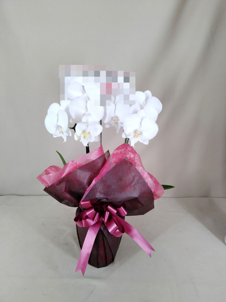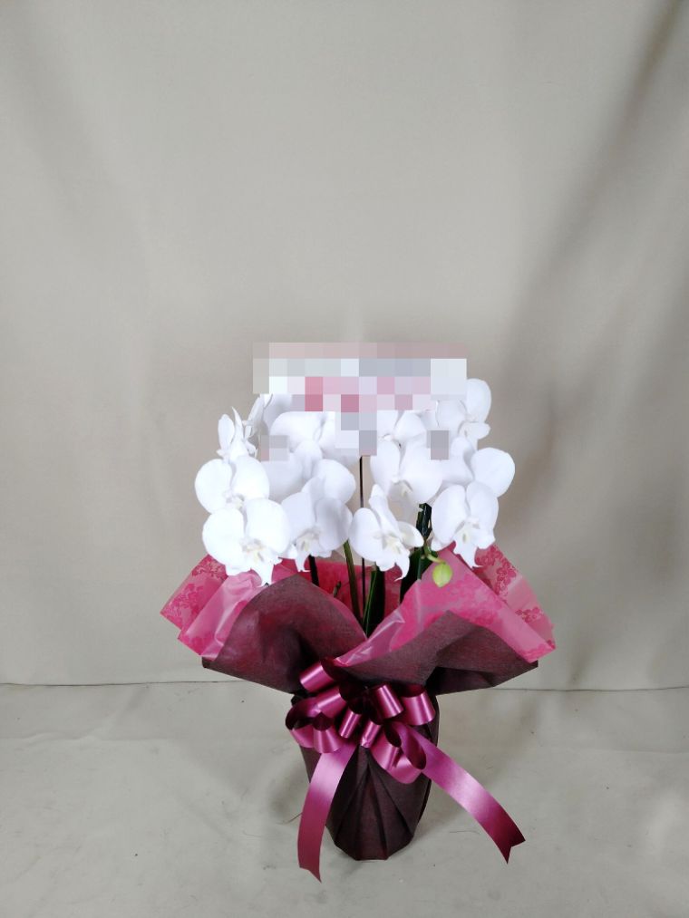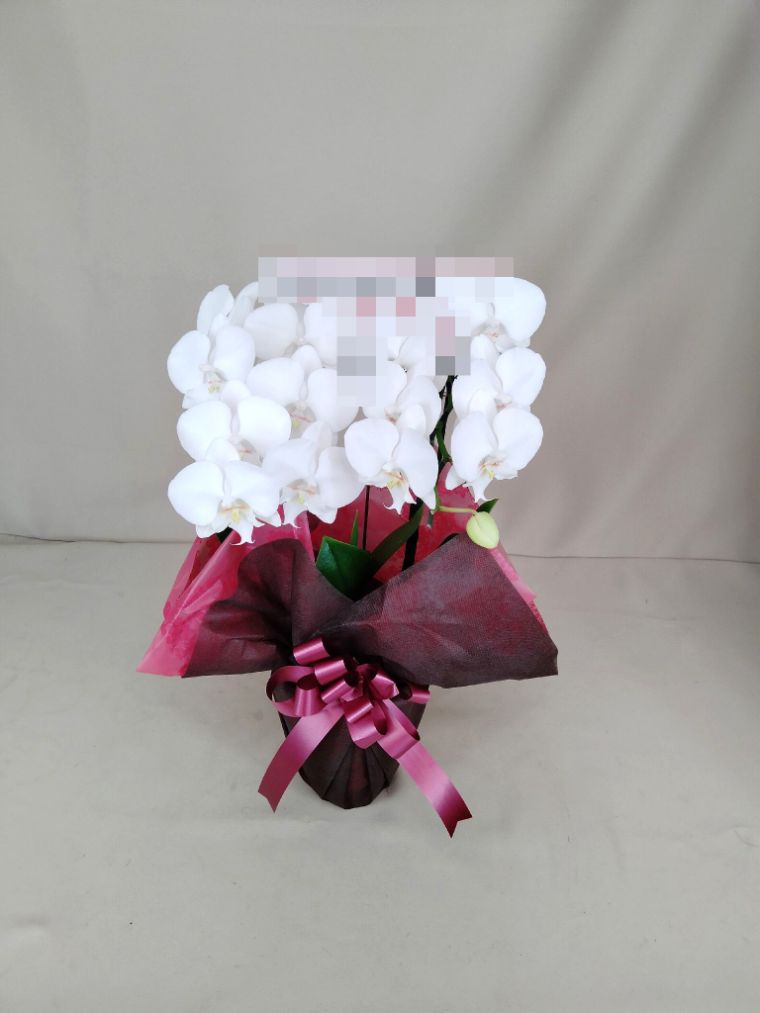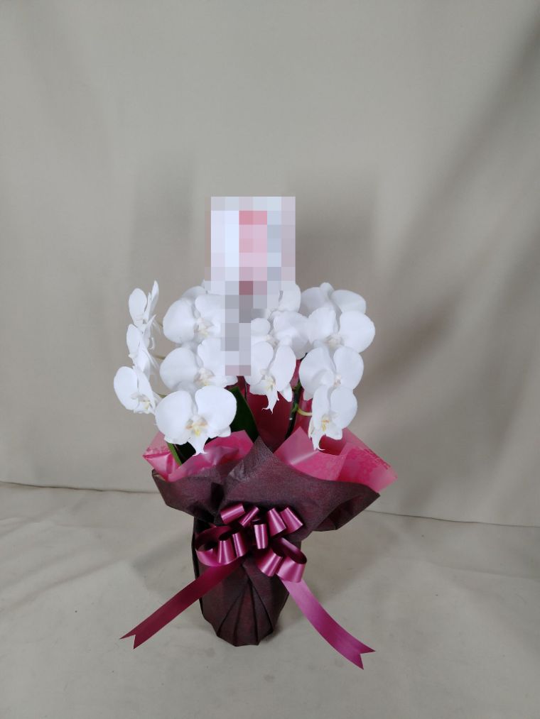 胡蝶蘭の実際にお届けした写真です。花秘書では発送前に写真をメールで送信致しますので安心して大切な顧客や取引様へのギフトにご利用頂けます。