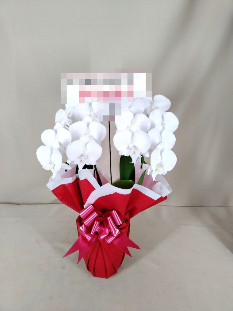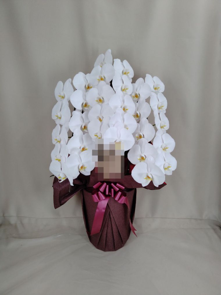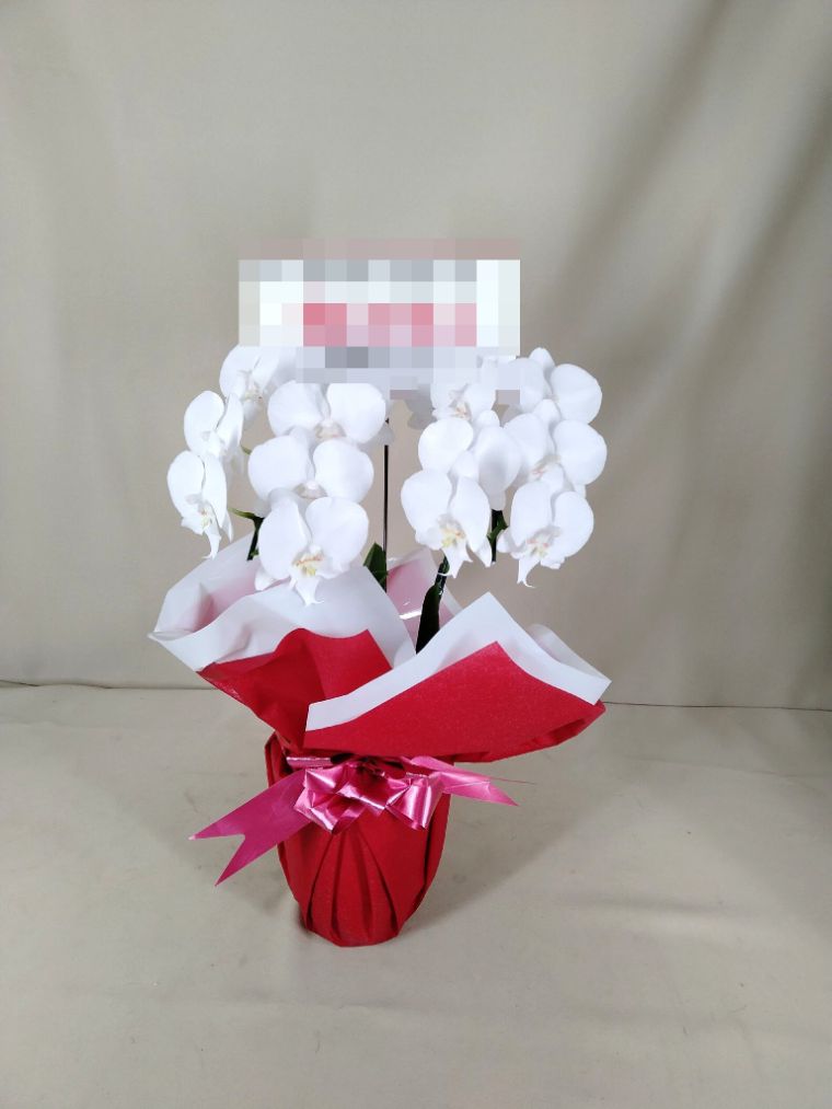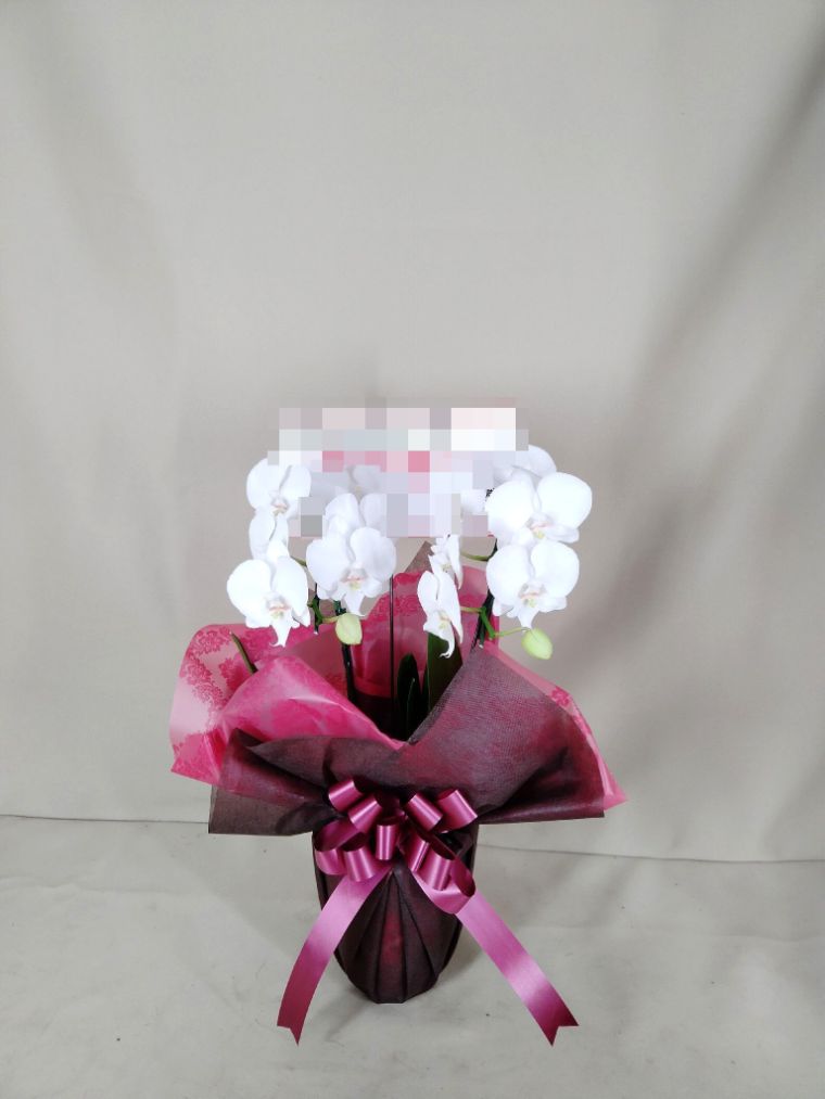 胡蝶蘭の実際にお届けした写真です。花秘書では発送前に写真をメールで送信致しますので安心して大切な顧客や取引様へのギフトにご利用頂けます。