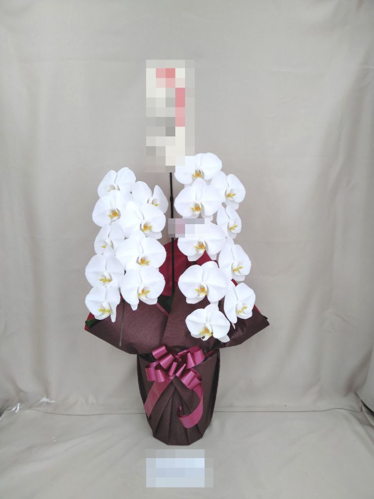 胡蝶蘭の実際にお届けした写真です。花秘書では発送前に写真をメールで送信致しますので安心して大切な顧客や取引様へのギフトにご利用頂けます。